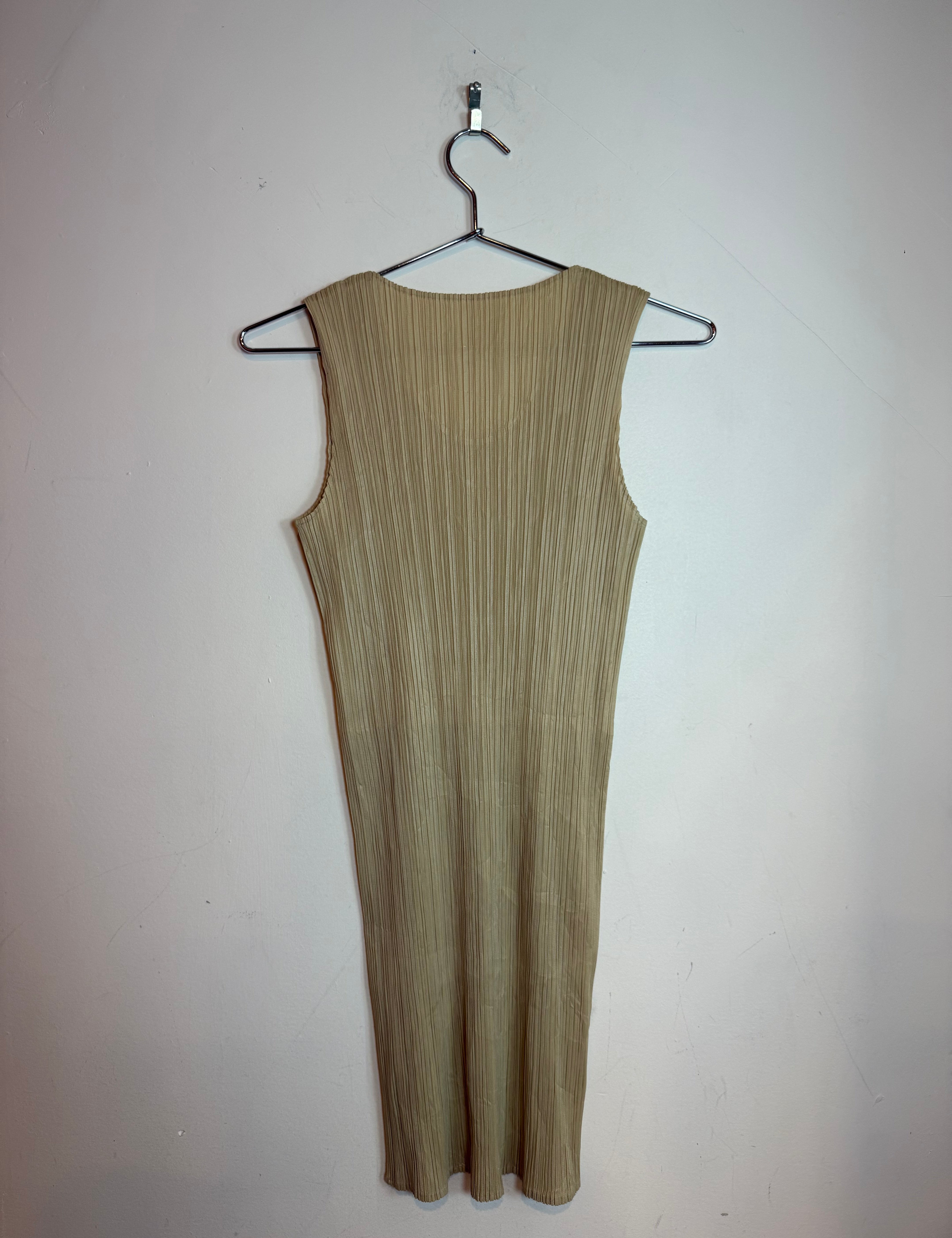Vintage Pleats Please Issey Miyake Sleeveless Blouse Dress Beige Size 3
