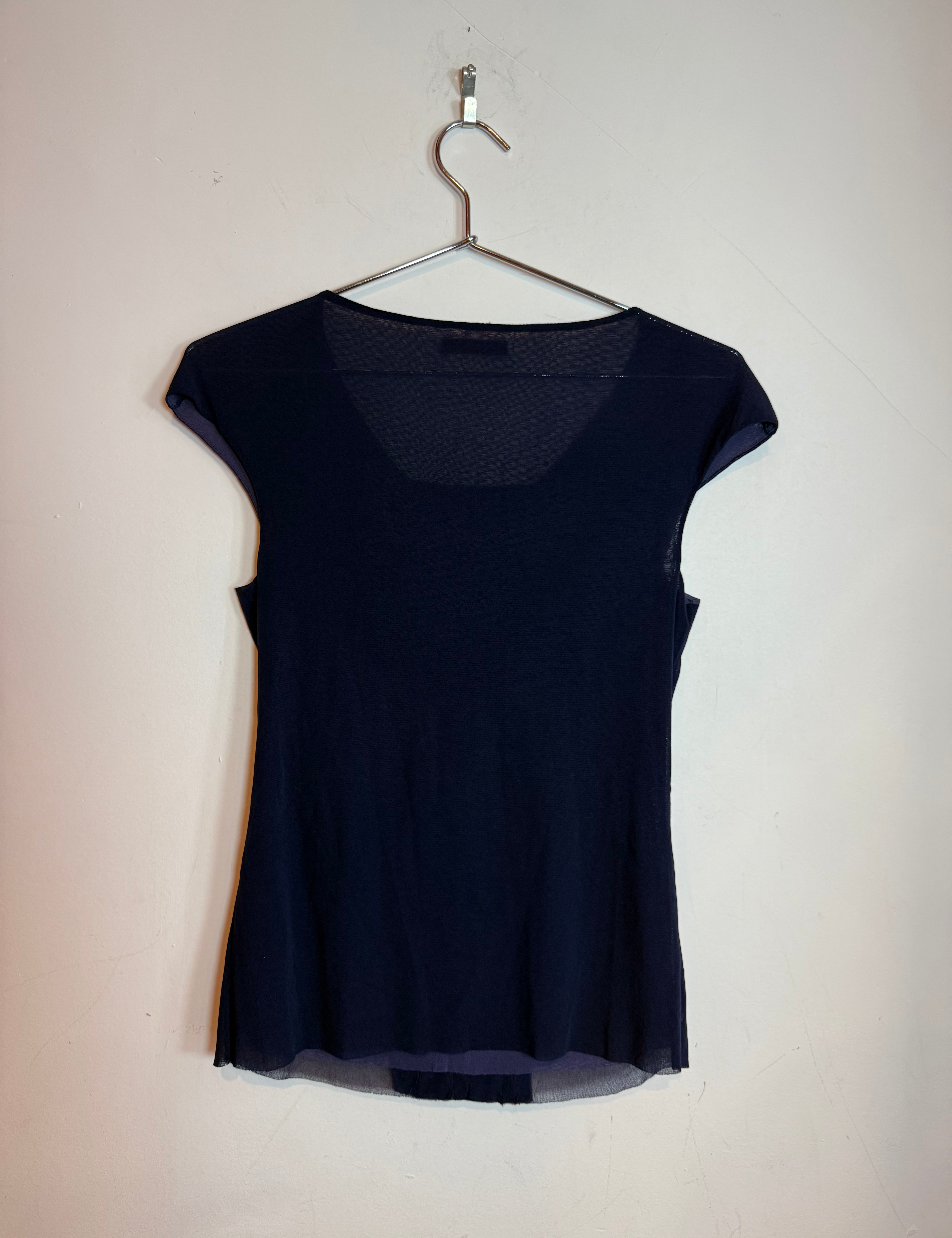 Vintage Vivienne Tam Dark Blue Ruffle V-Neck Sleeveless Top Blouse