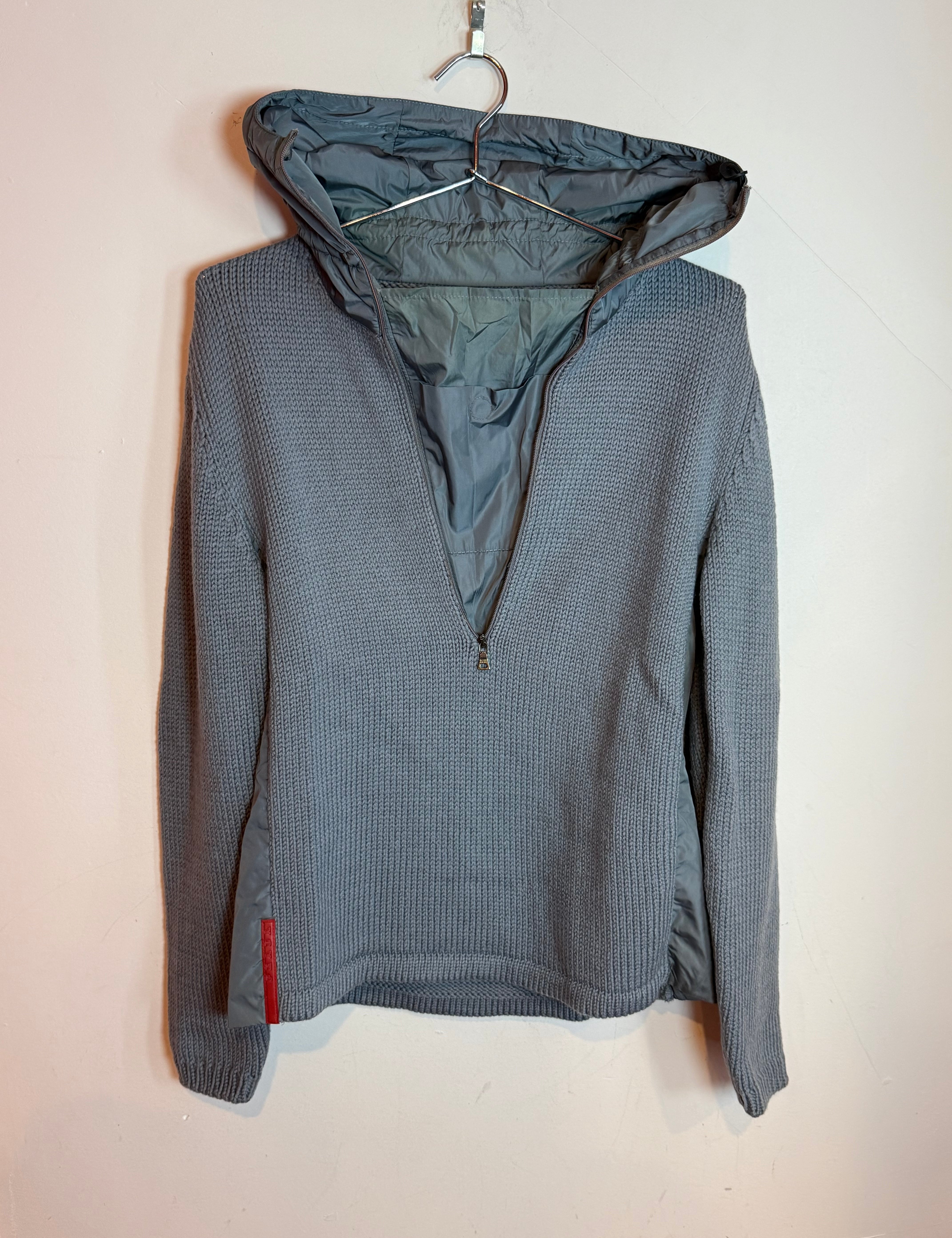 Vintage Prada Sport Half Zip Knit Wool Nylon Trim Hoodie Gray Size 46