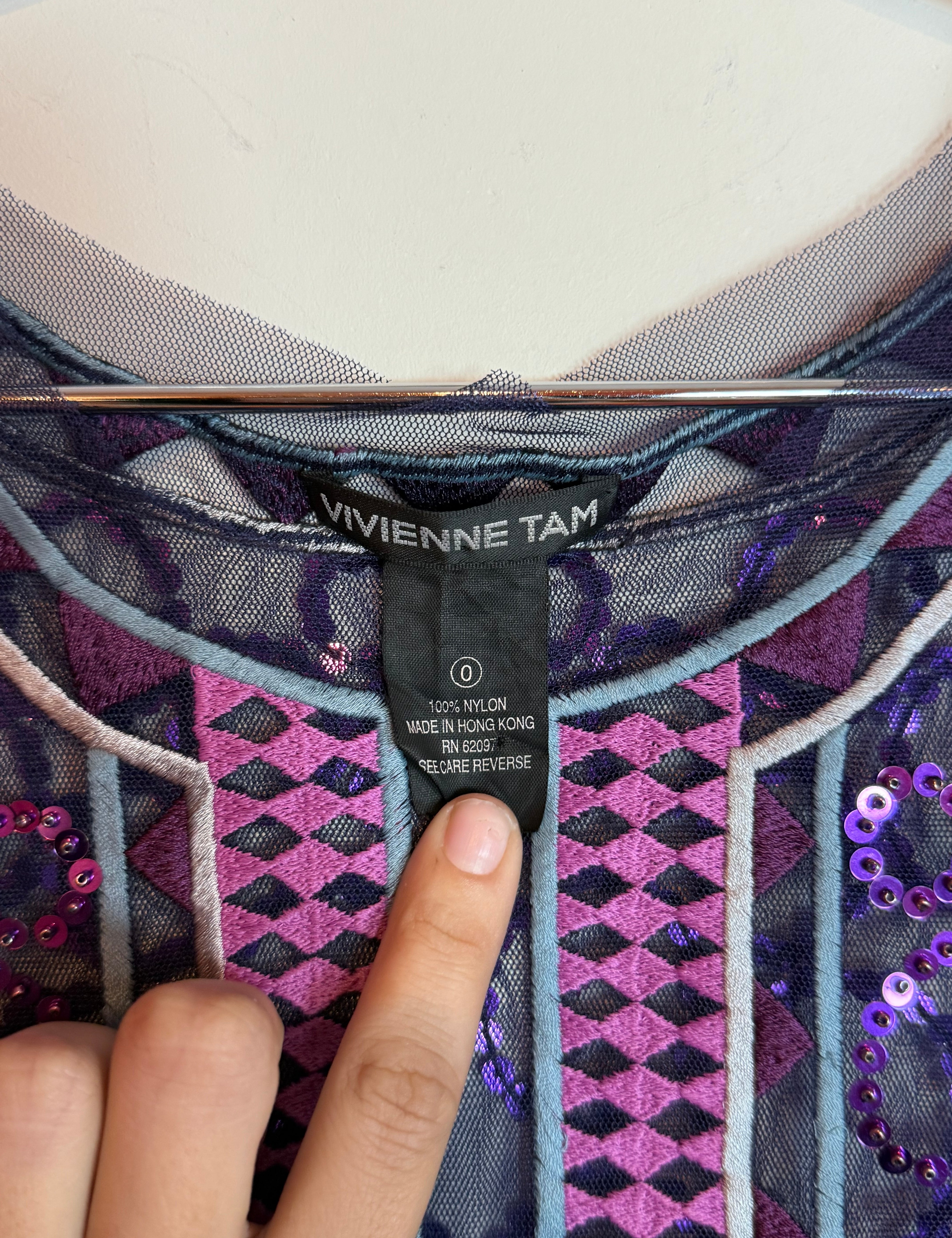 Vintage Vivienne Tam Mesh Beaded & Sequin Top Dress