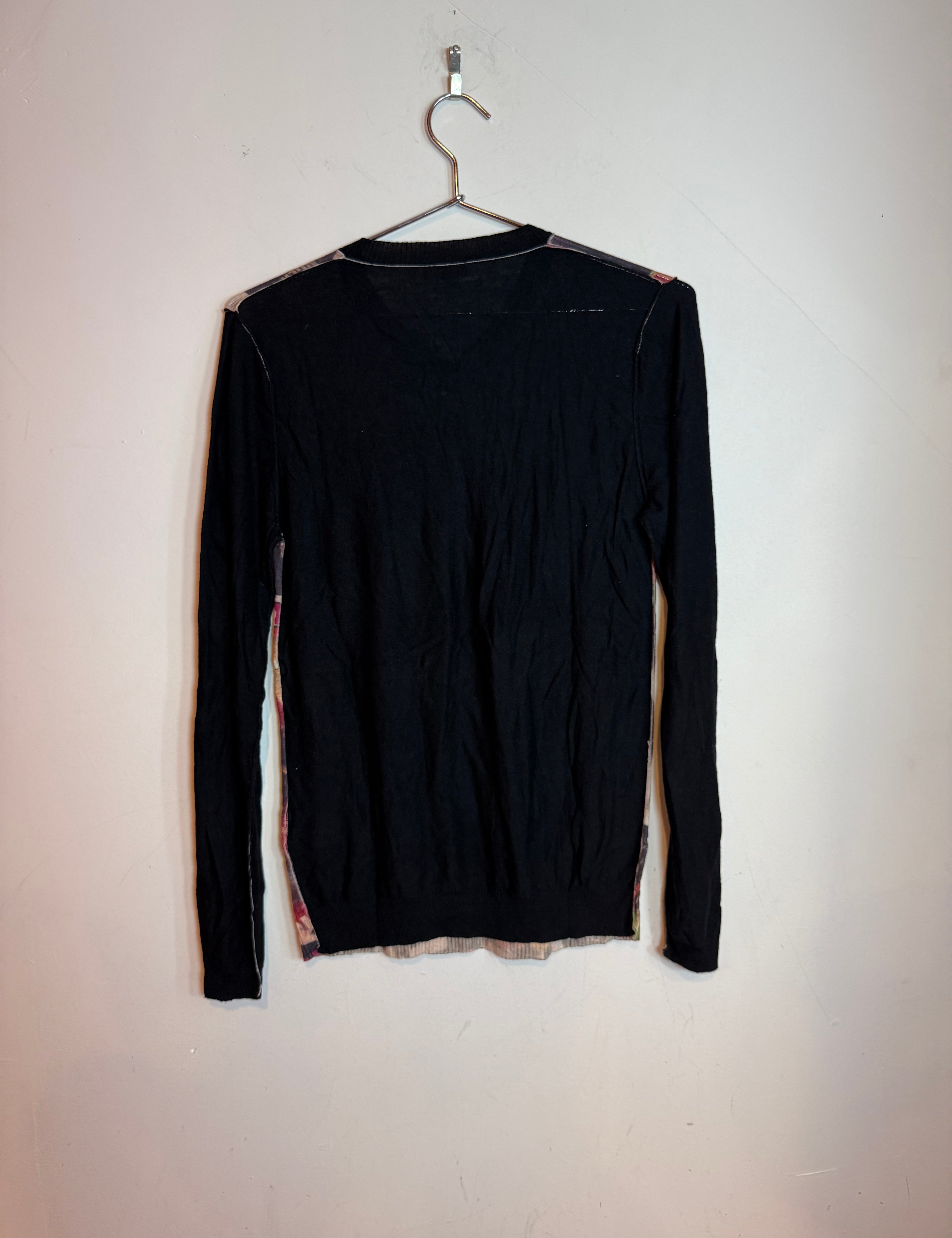 Vintage John Galliano Newspaper Collage Graphic Print Long Sleeve V-Neck Sweater