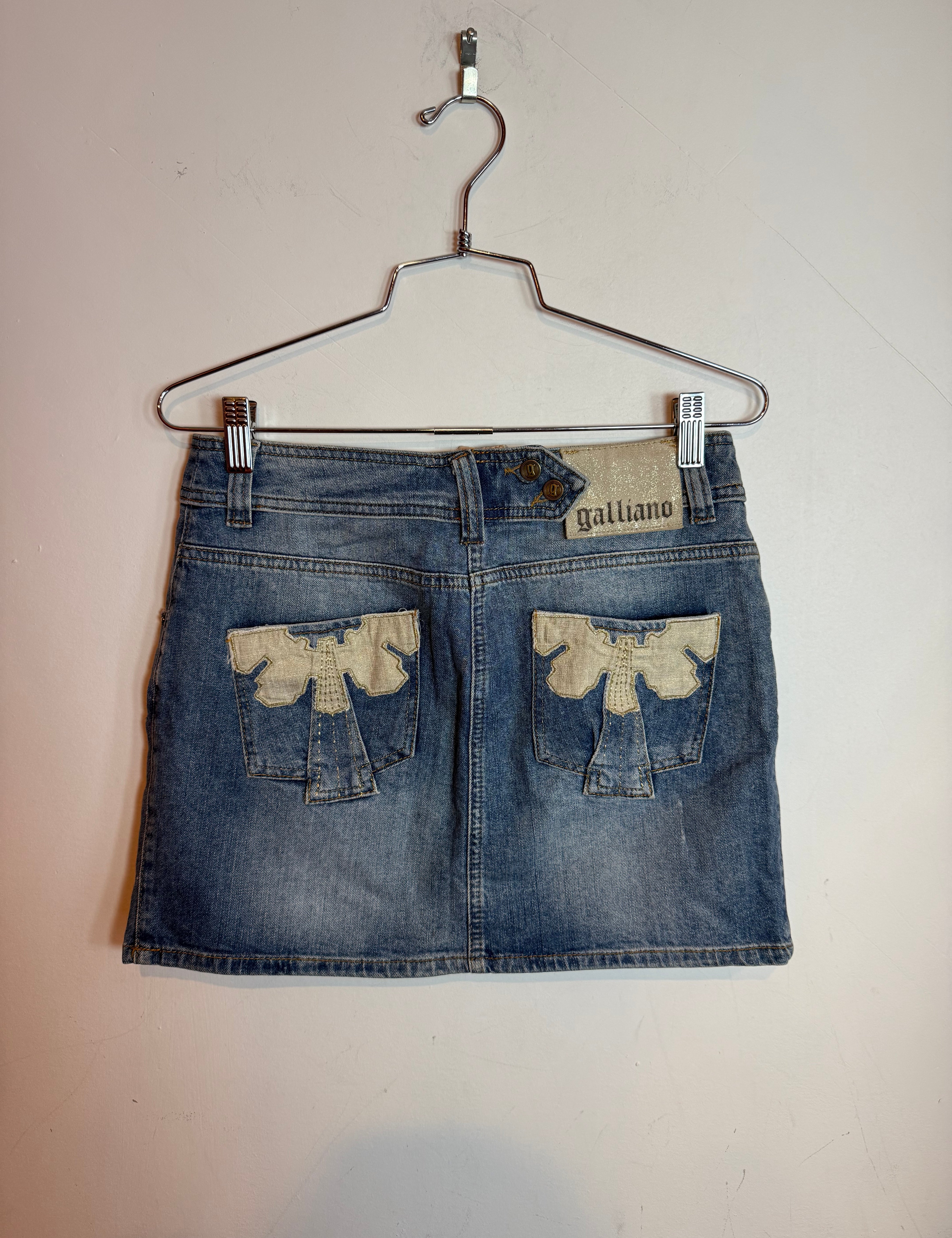 Vintage John Galliano Denim Mini Skirt with Back Pocket Embroidery