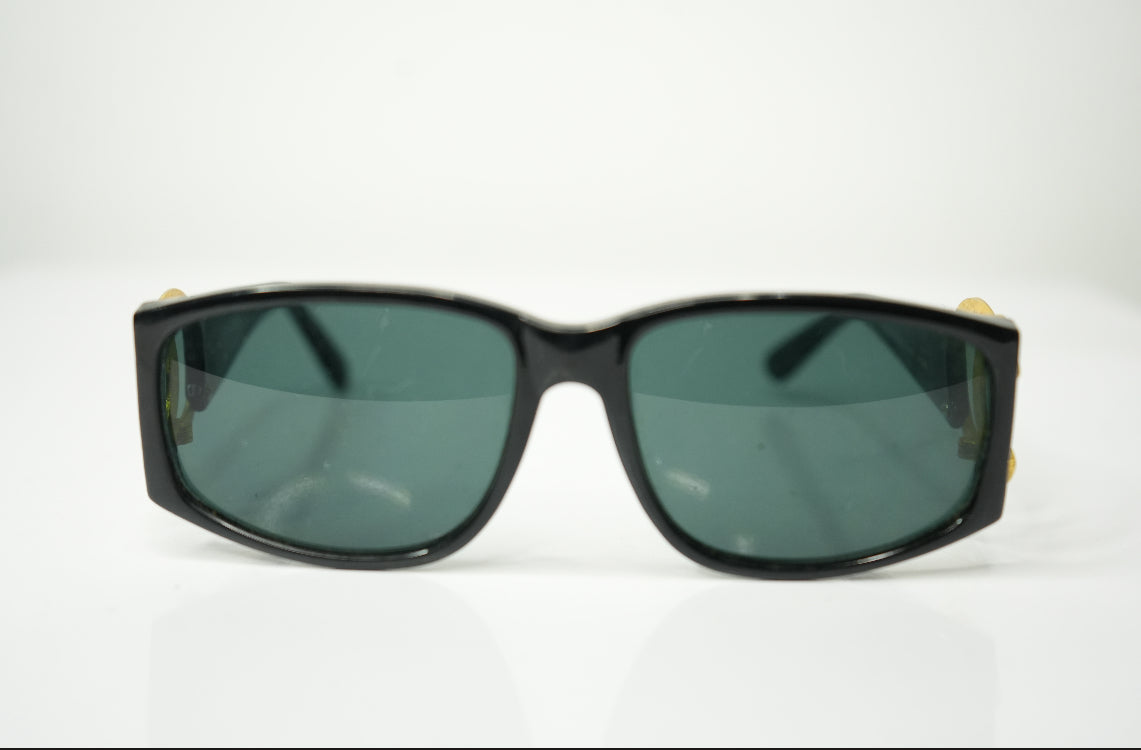 Vintage Chanel Gold Tone Interlocking CC Sunglasses Black