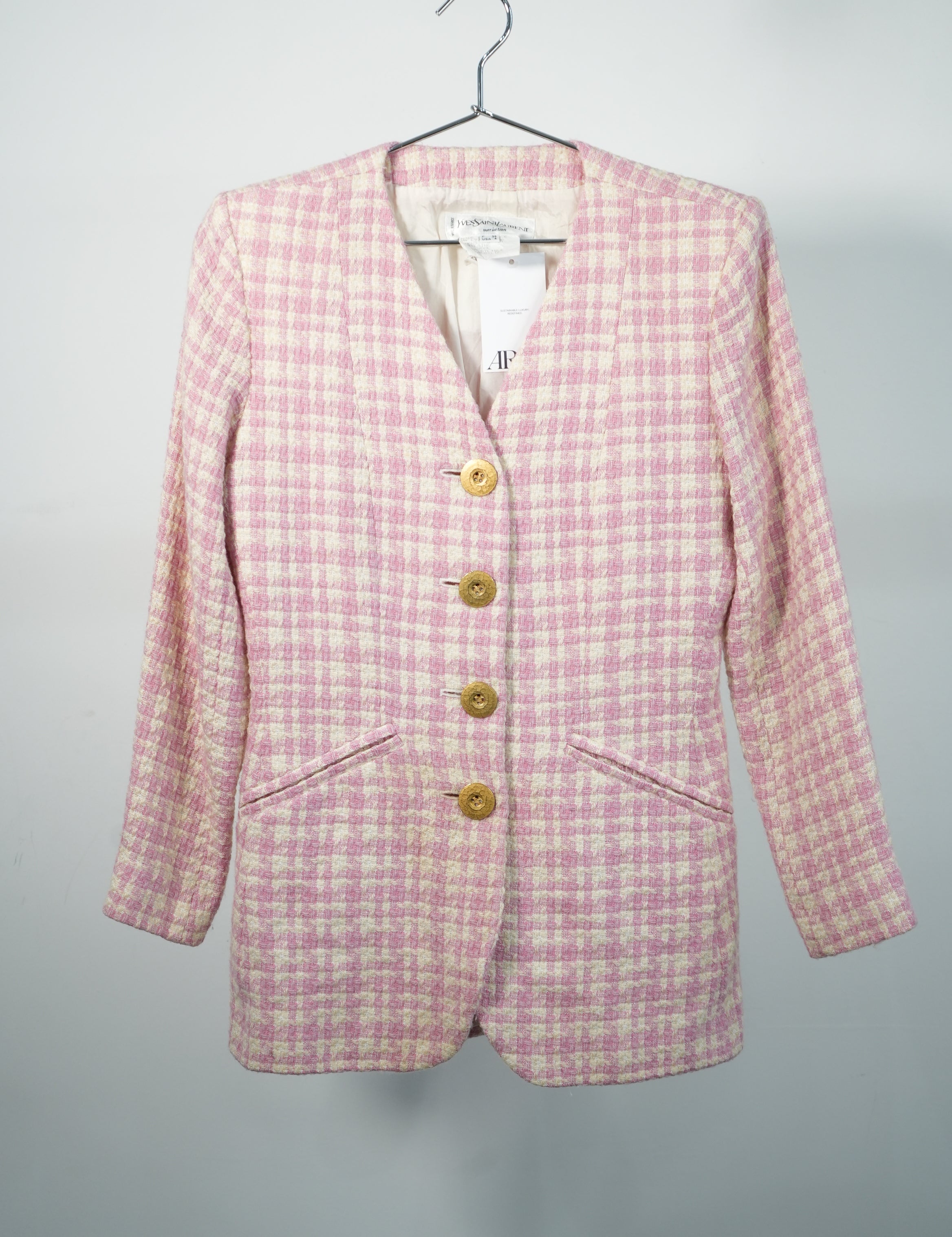Vintage Yves Saint Laurent Button Front Tweed Jacket Pink