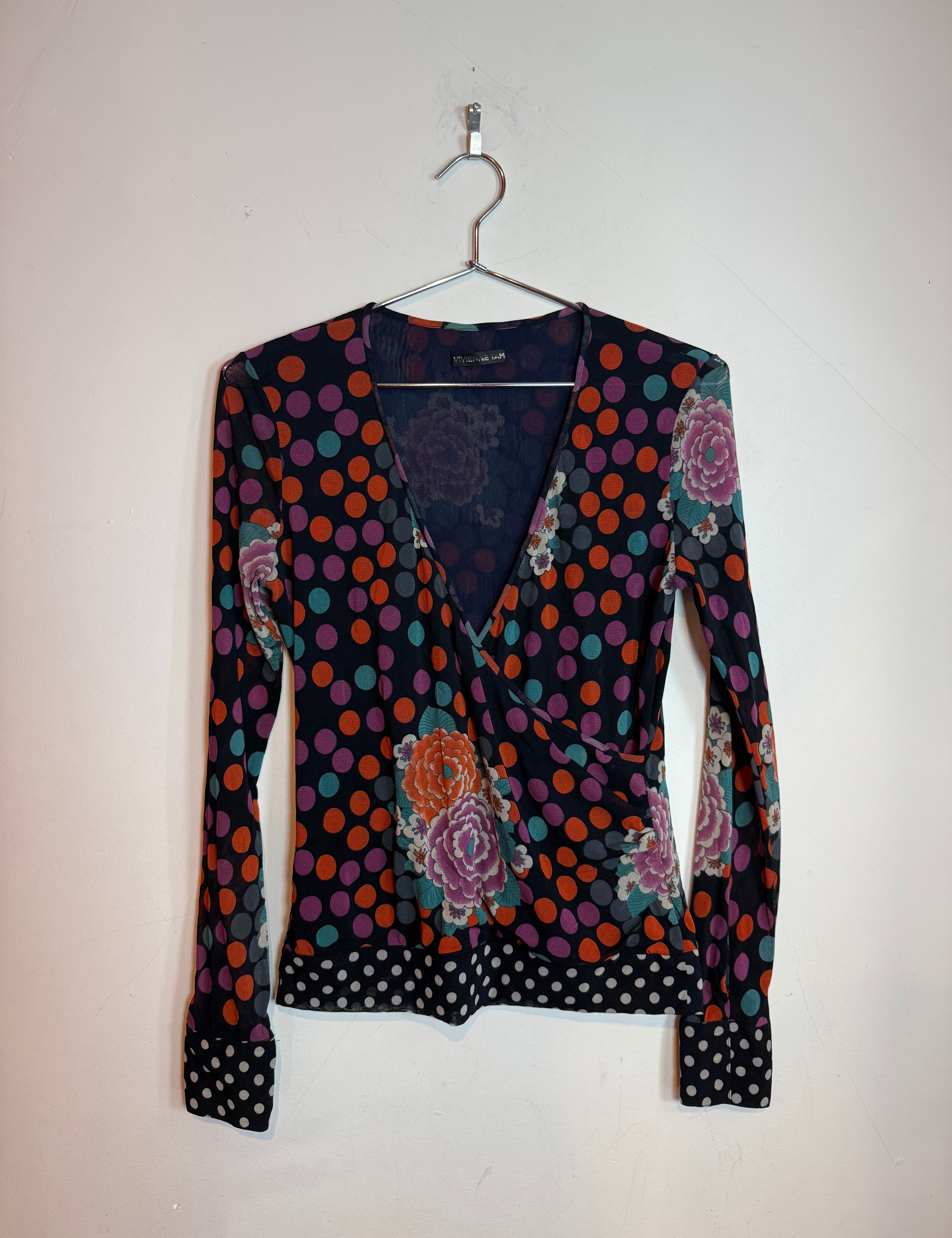 Vintage Vivienne Tam Polka Dot - Floral Pattern Long Sleeve Blouse