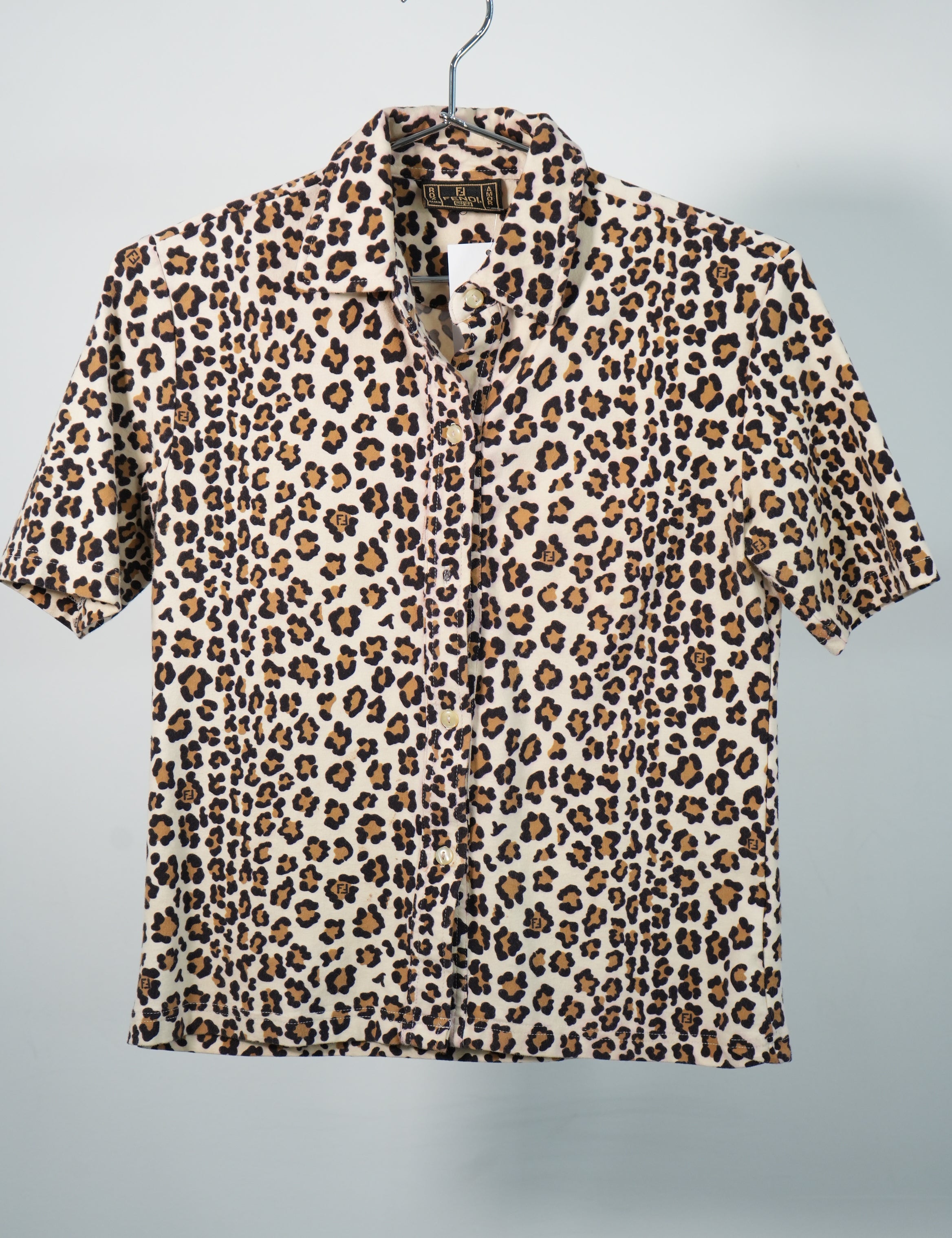 Fendi Leopard Print Button Down Short Sleeve Shirt Made in Italy
