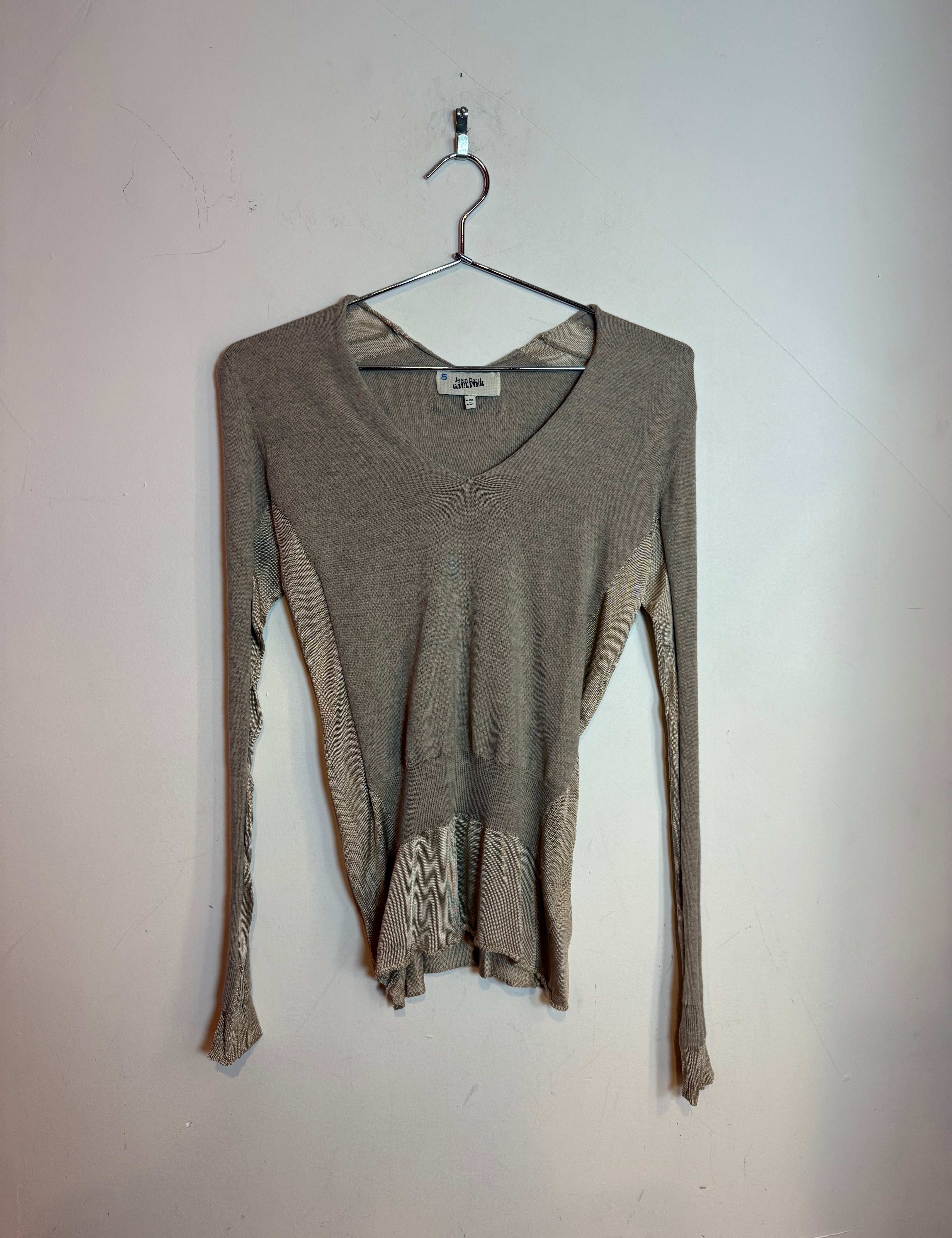 Issey Miyake Open Collar Pleated Shirt Blouse Beige Size 2