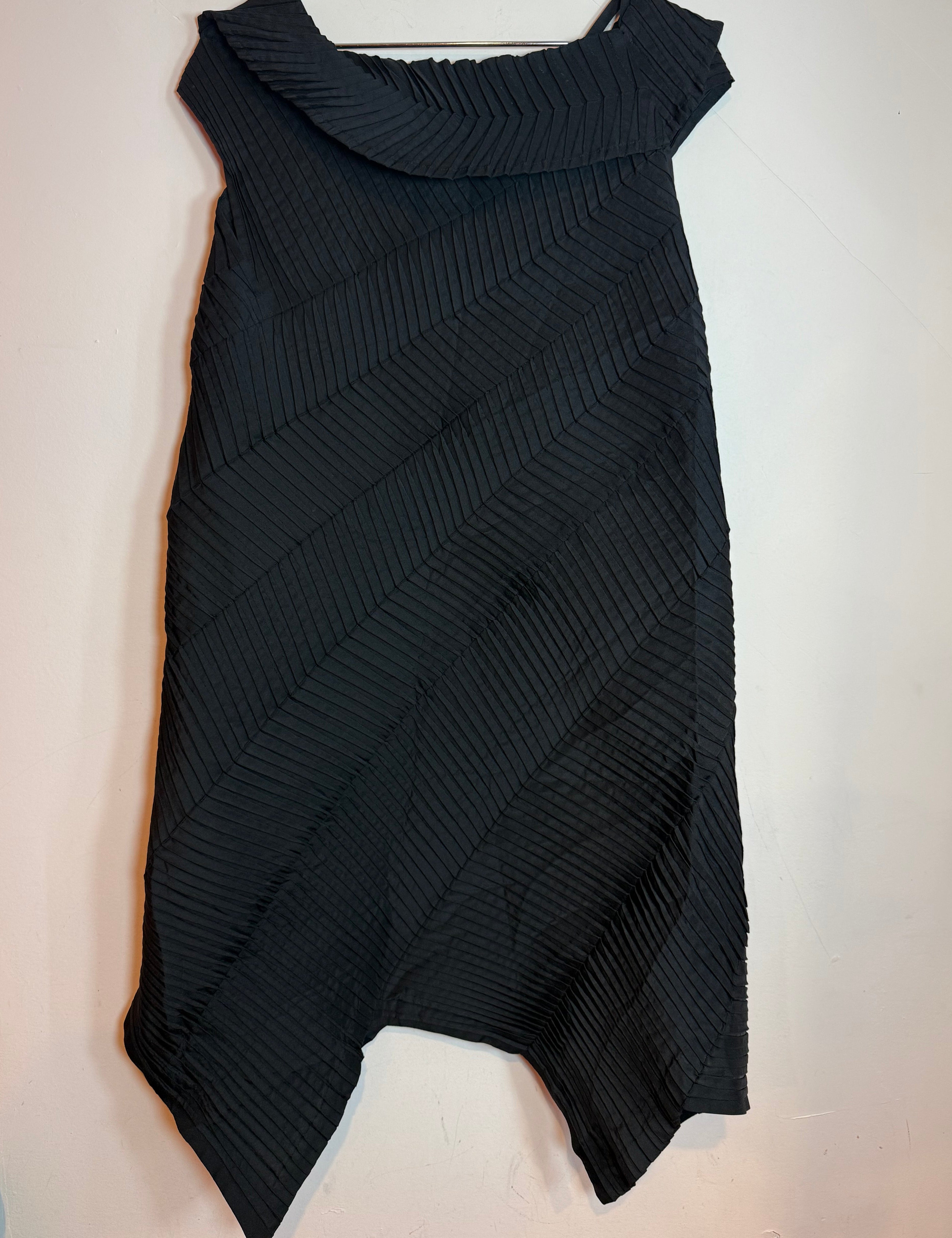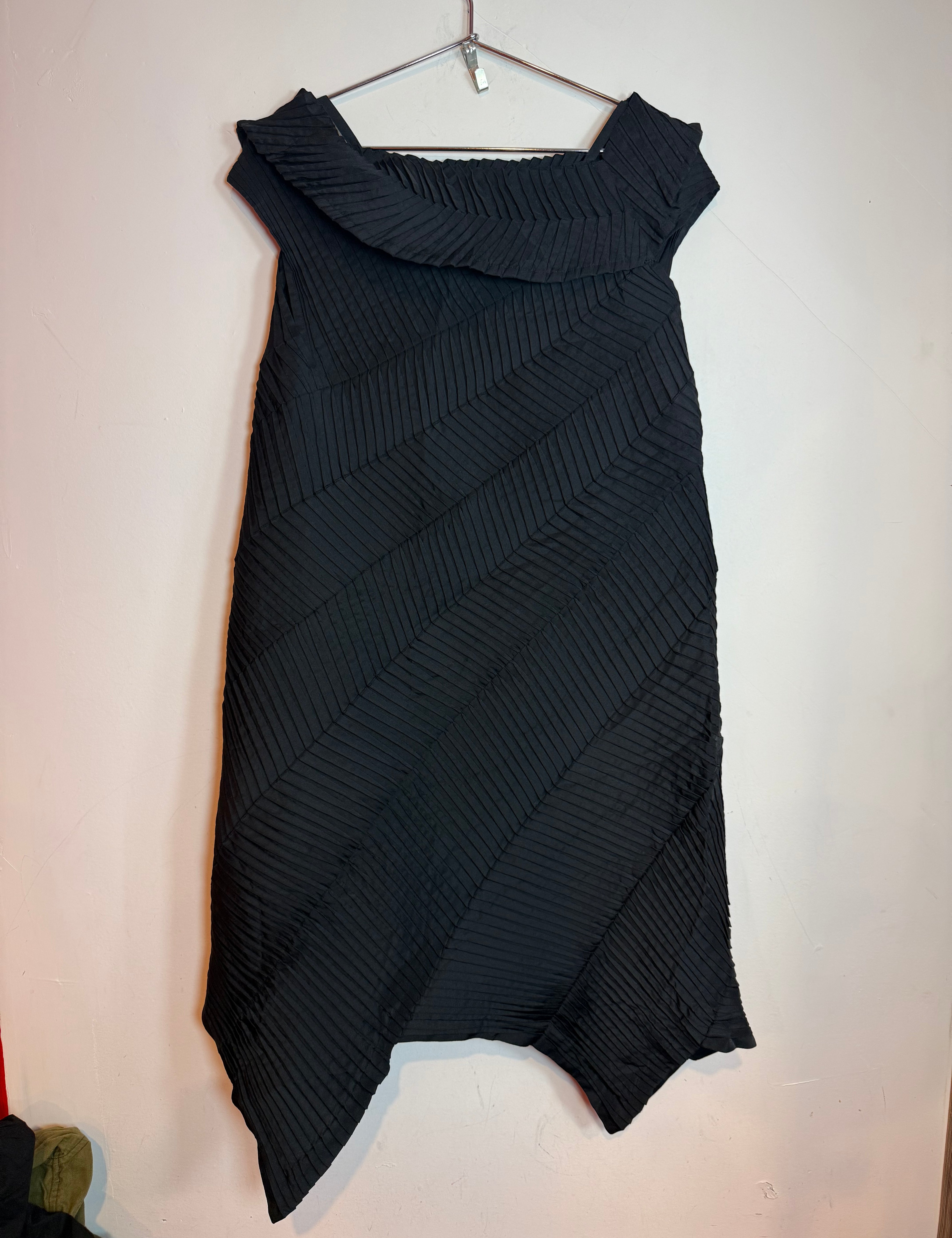 Issey Miyake Black Pleated Asymmetrical Sleeveless Dress Sample