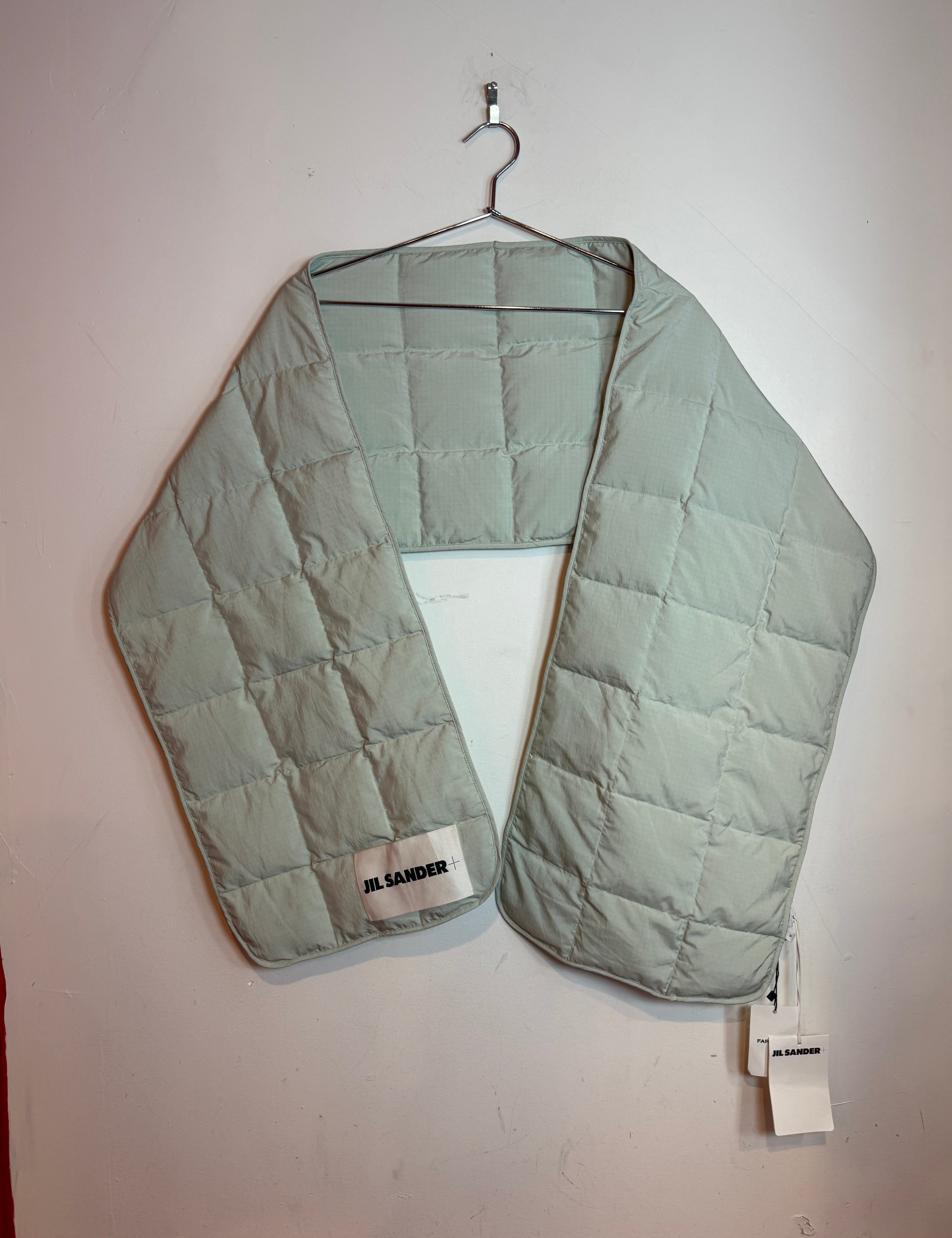 Jil Sander Pale Green Quilted Down Puffer Scarf with Logo Patch NWT