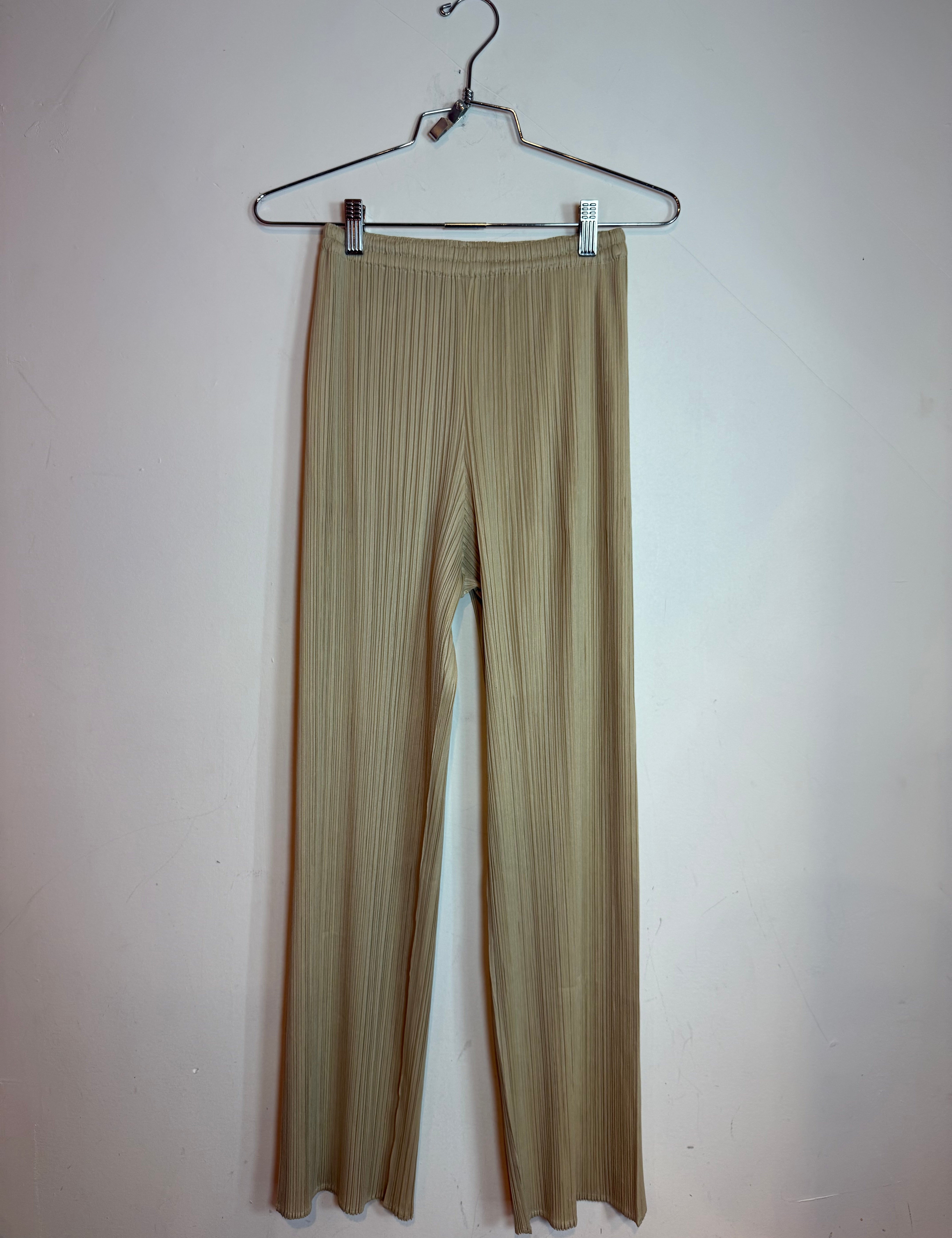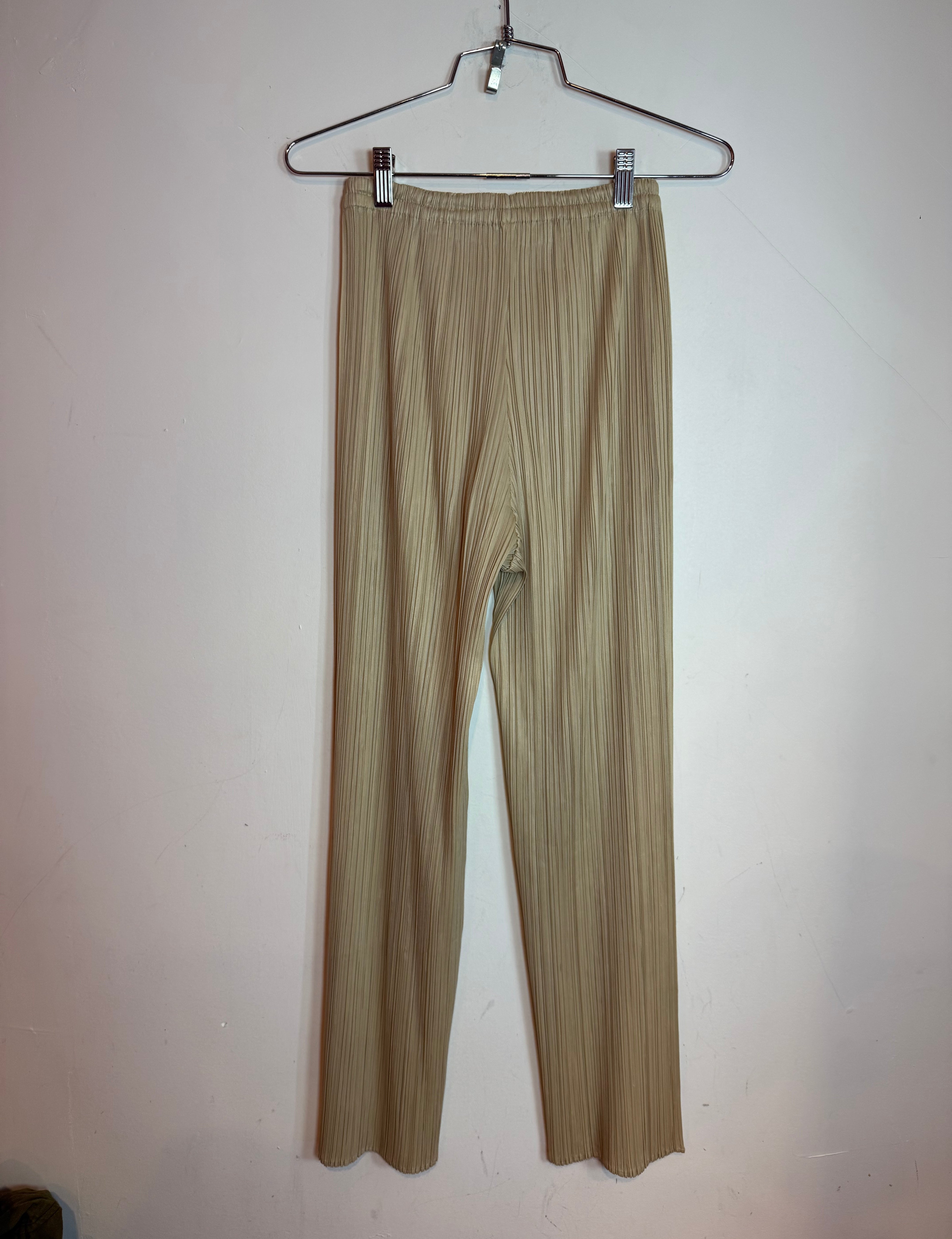 Pleats Please Issey Miyake Pleated Straight Leg Trousers Pants Beige Women's