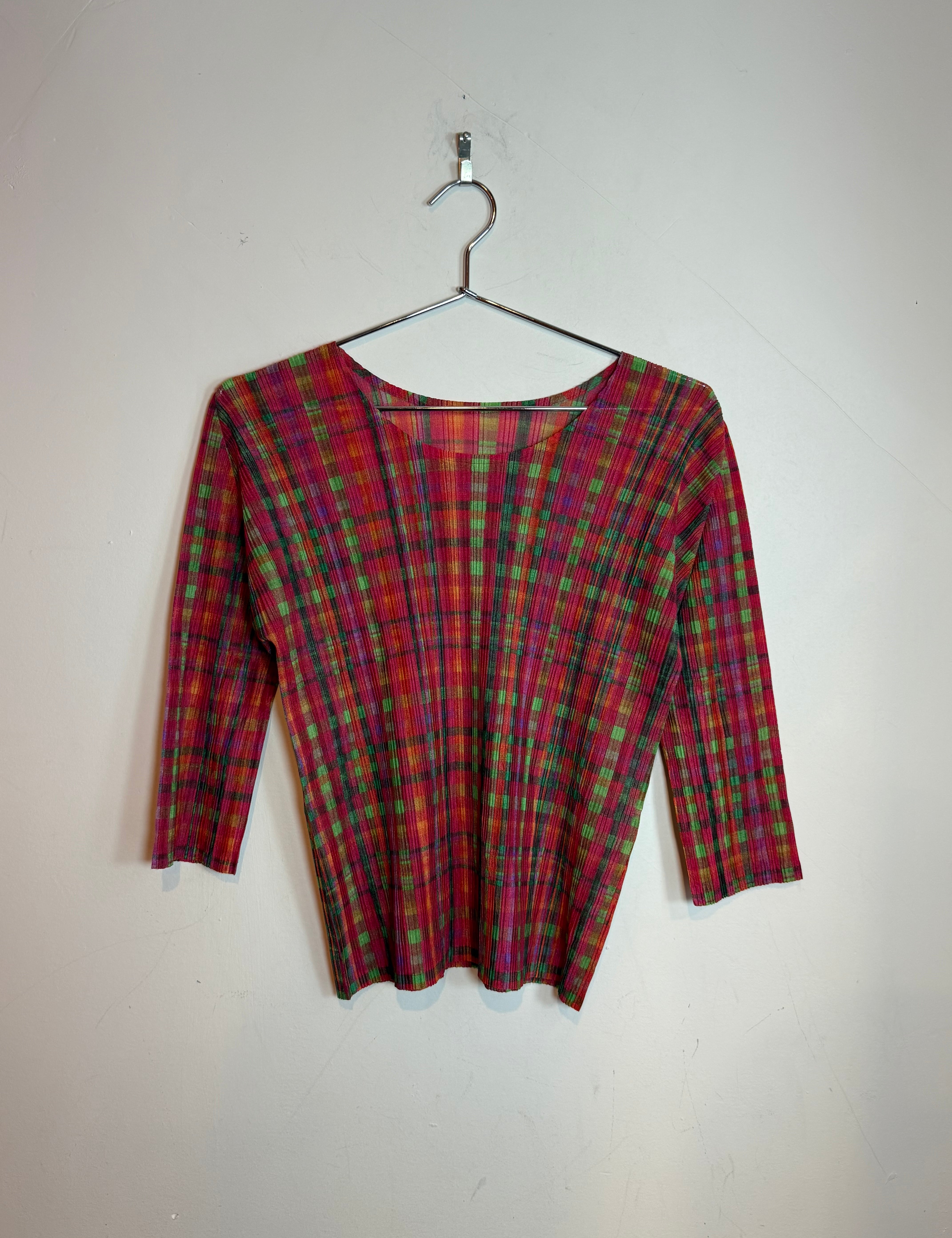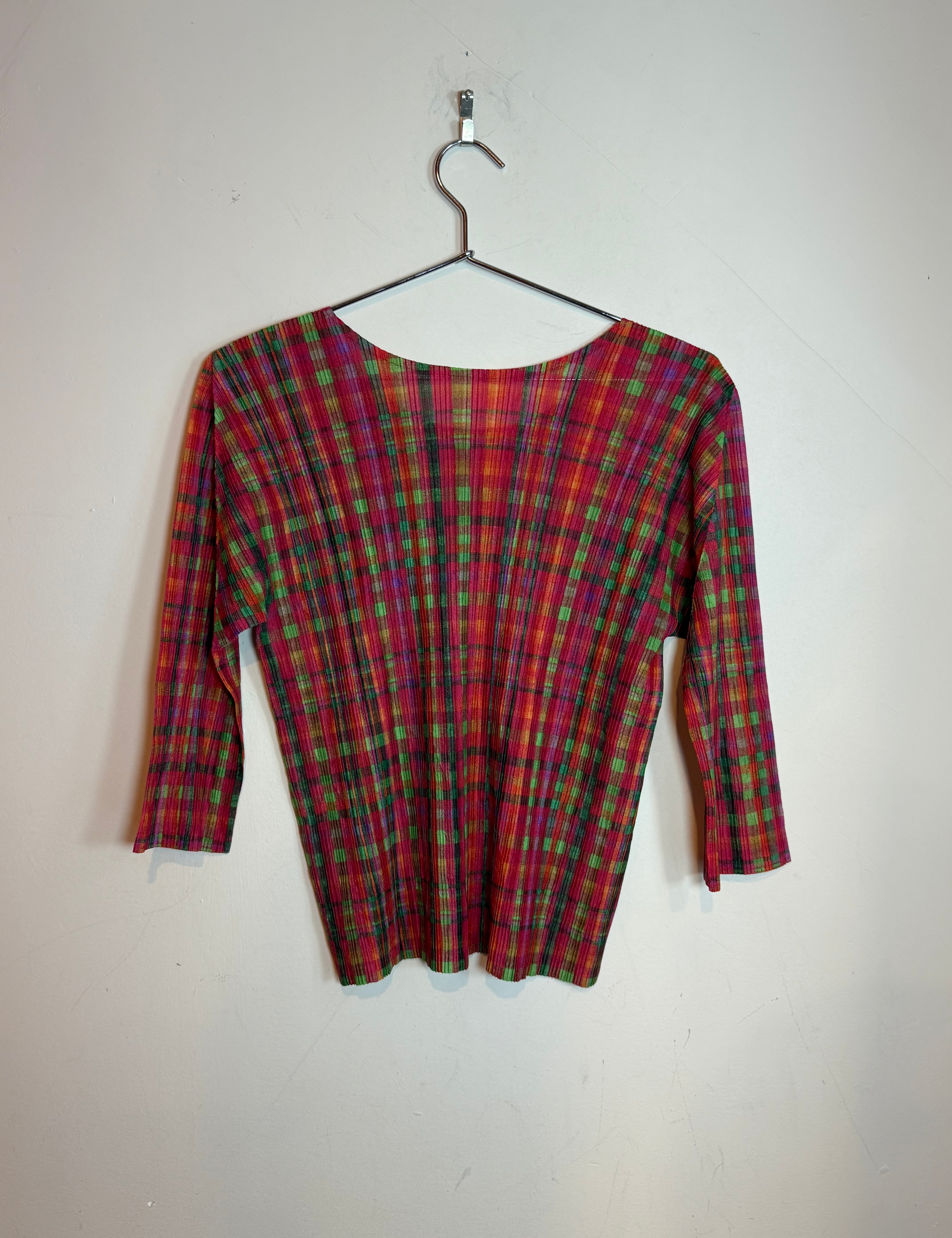 Pleats Please Issey Miyake Multicolor Plaid Long Sleeve Top Size 3