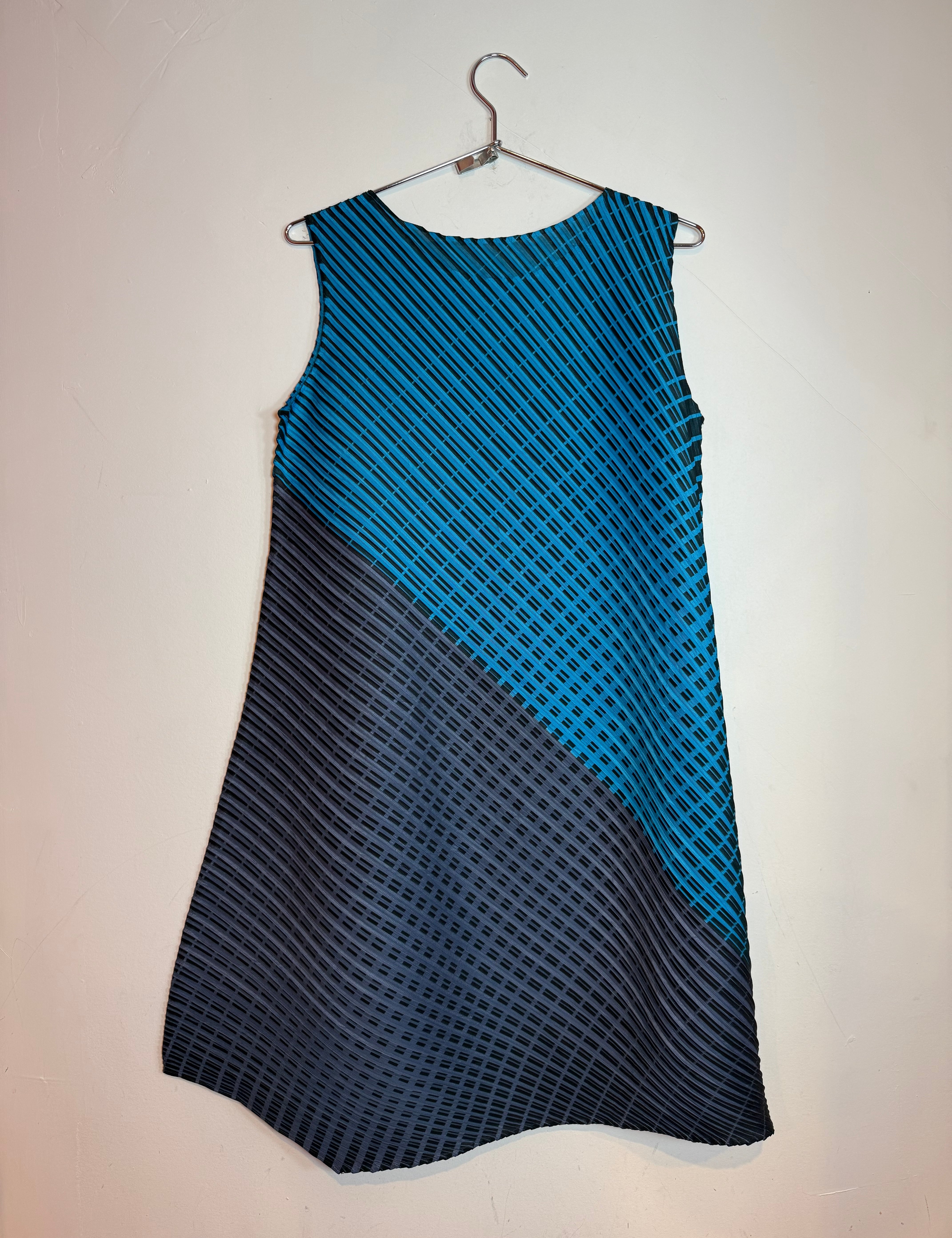 Pleats Please Issey Miyake Diagonal Colorblock Pleated Sleeveless Dress Size 3