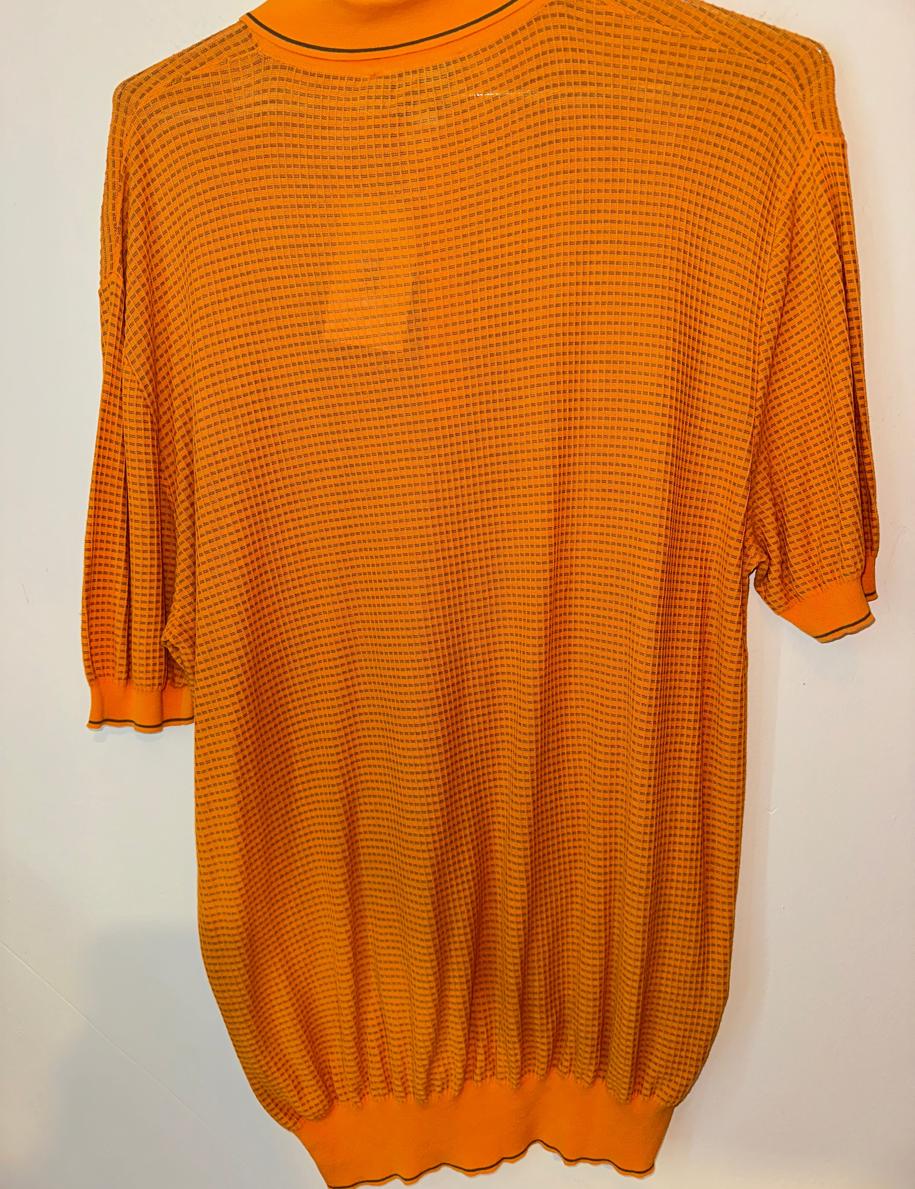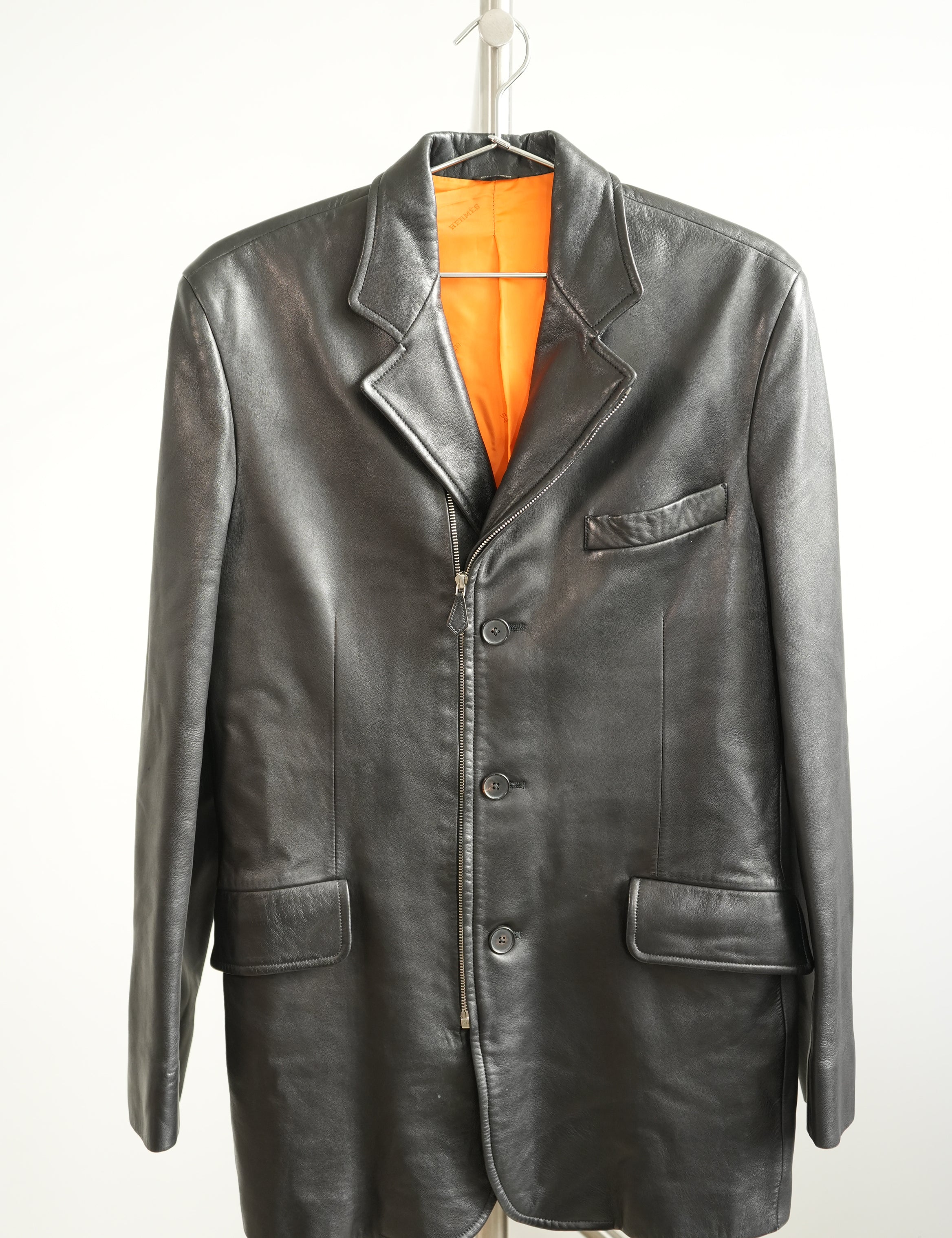Hermes Black Leather 3-Button Blazer Jacket Orange Lining