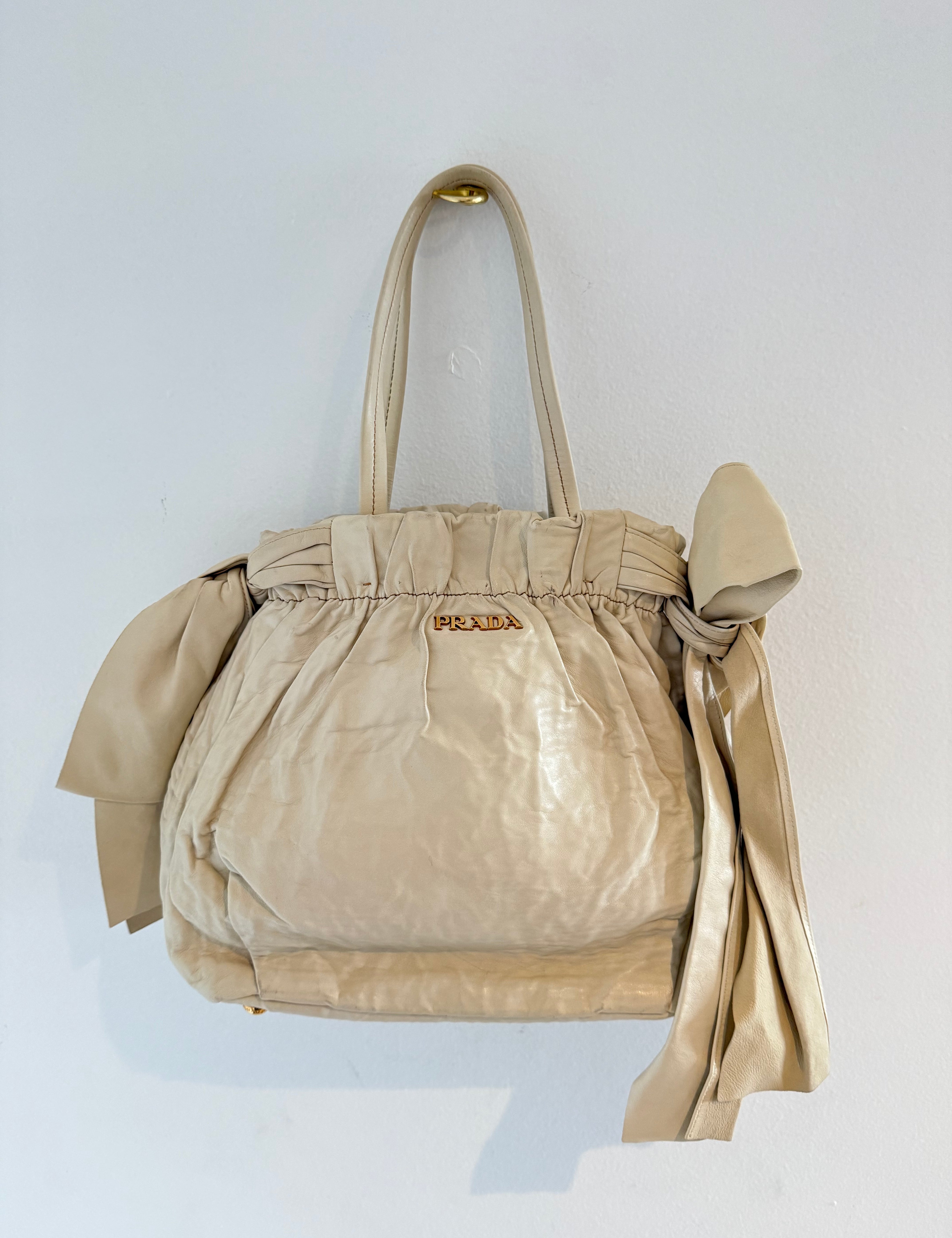 Prada Tan Tote Bag W/ Circular Metal Accessories