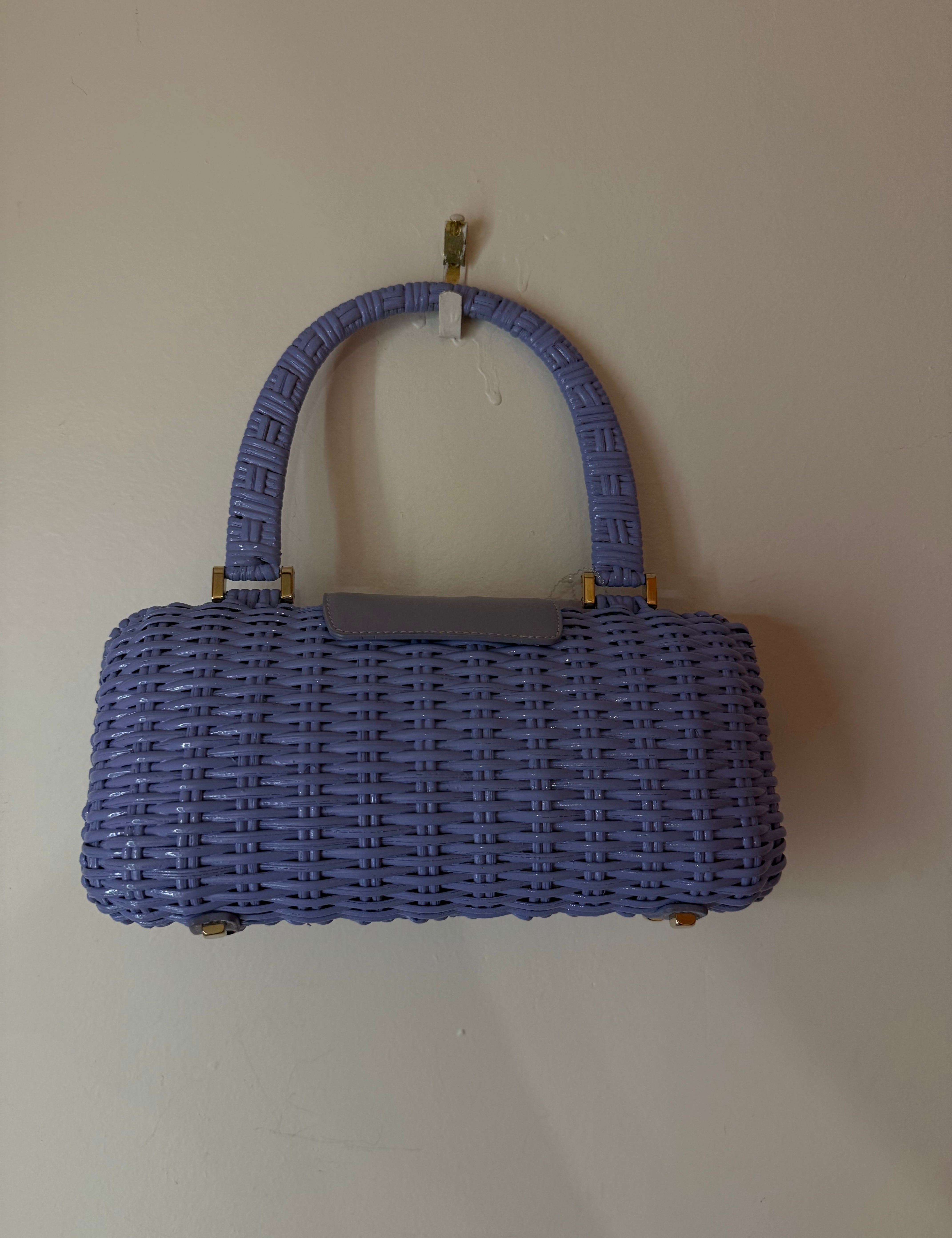 Celine Red/Cream Square Wicker Handbag W/ Rose Keychain