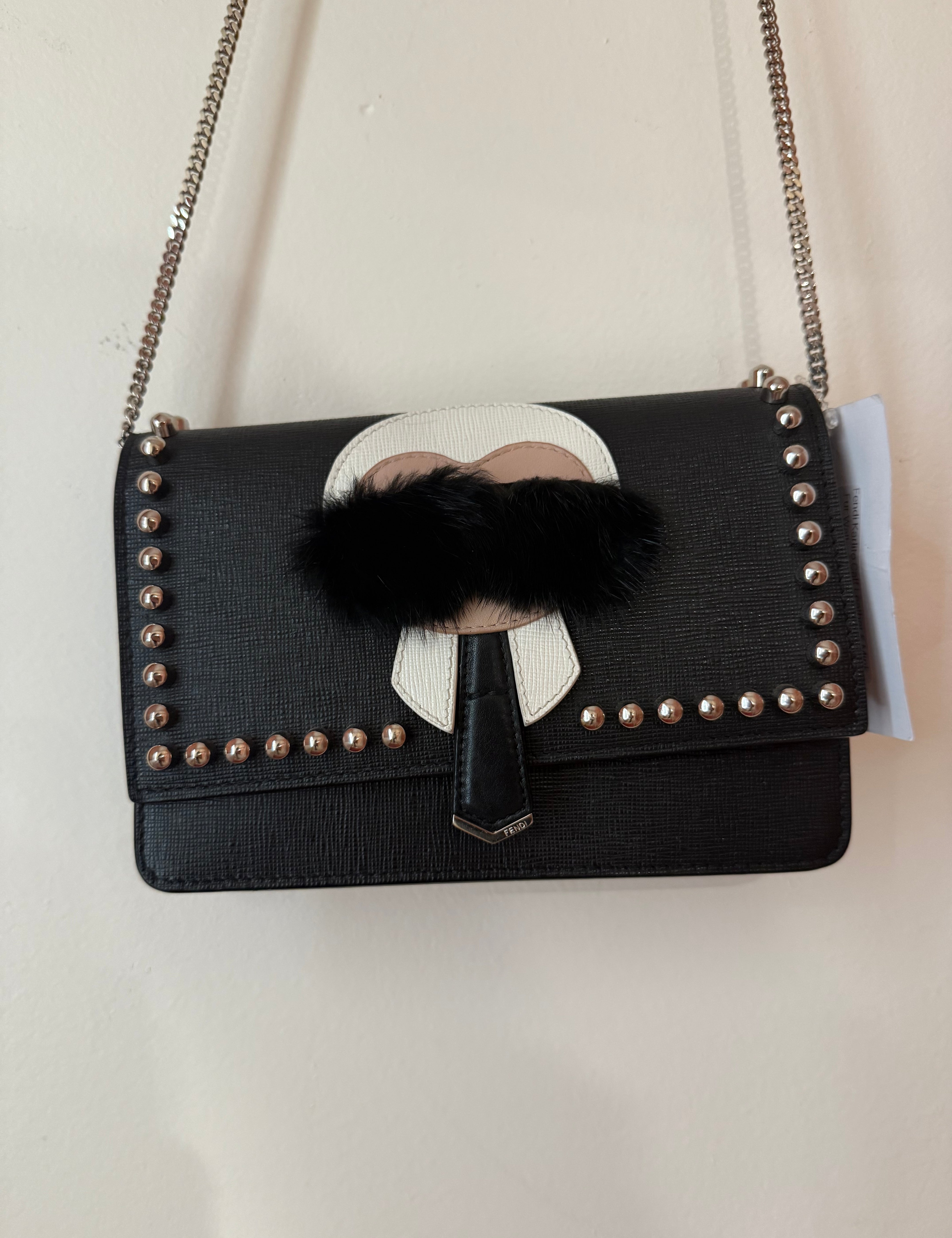 Fendi Karlito Calf Leather & Mink W/ Chain