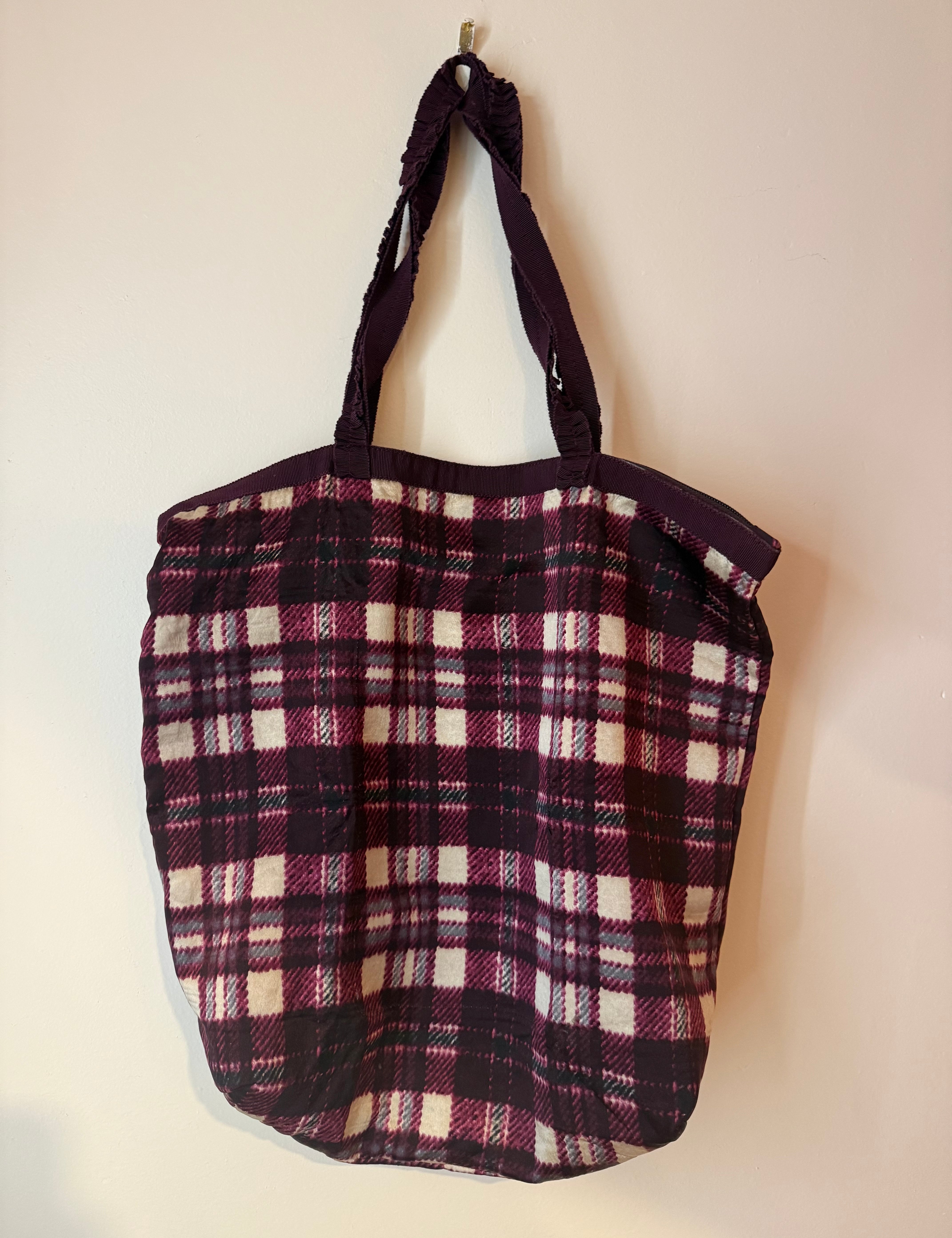Miu Miu Pink/Mauve Plaid Tote Bag W/ Ruffle