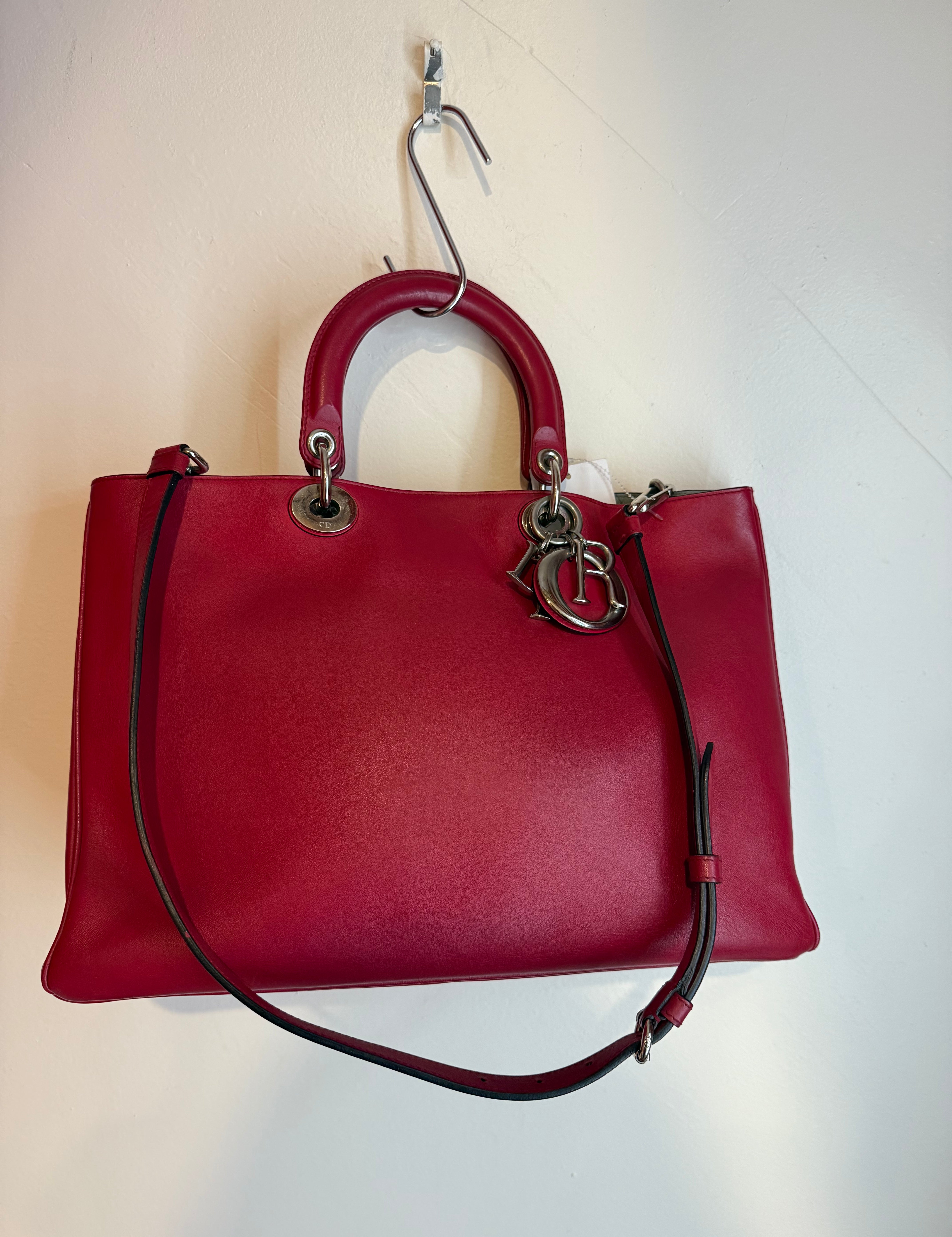 Lady Dior Handbag W/ Dior Keychain Red 2 Way Bag