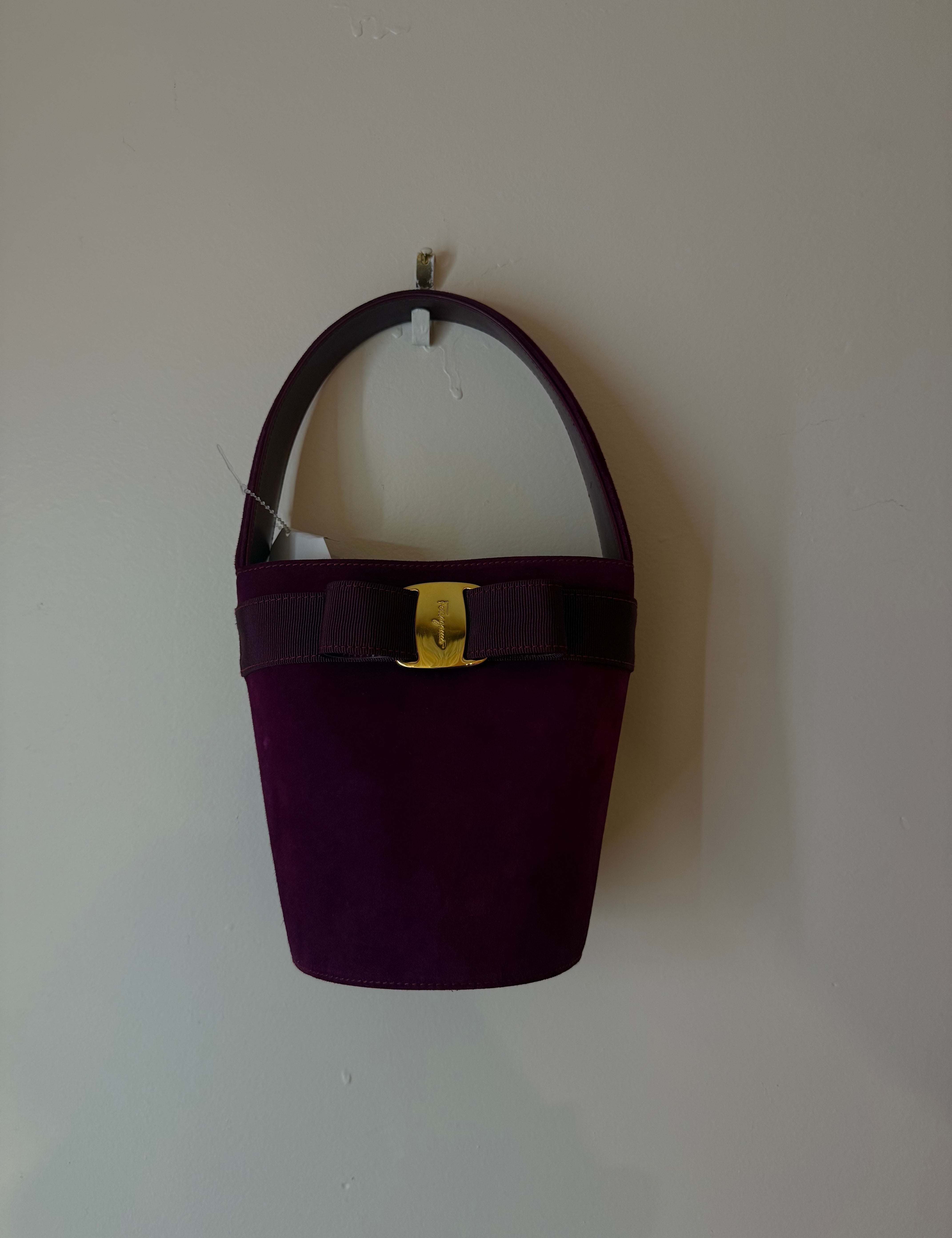 Ferragamo Dark Pink/Mauve Bucket Bag W/ Bow