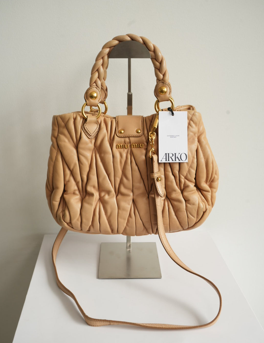 MIU MIU Matelasse 2way Handbag Lamb Beige 194