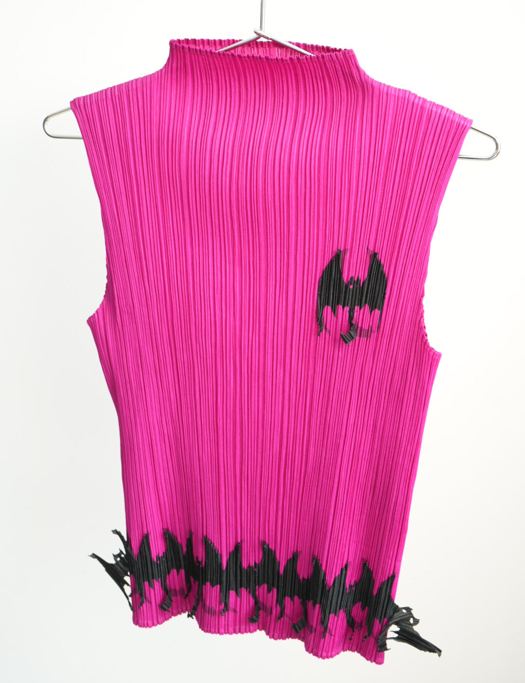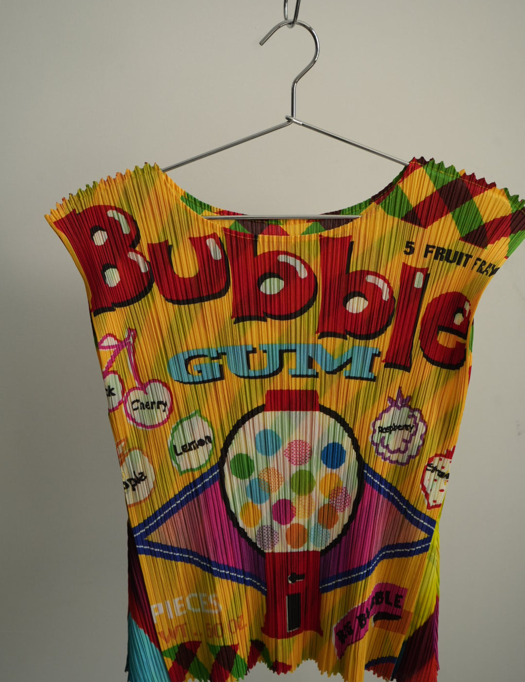 Pleats Please Issey Miyake Sleeveless Pleated Bubble Gum Graphic Top Size 3