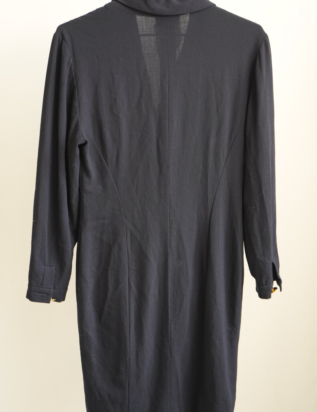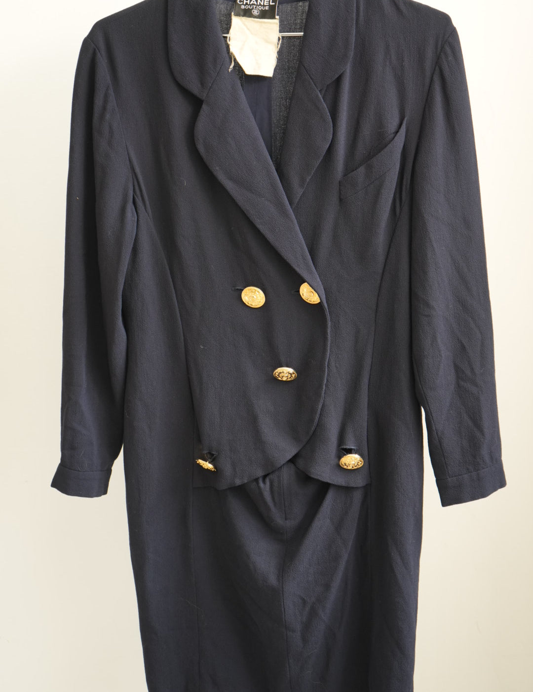 Vintage Chanel Boutique Navy Blue Double Breasted Blazer Dress Gold Buttons