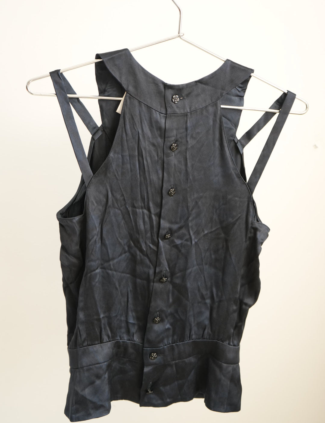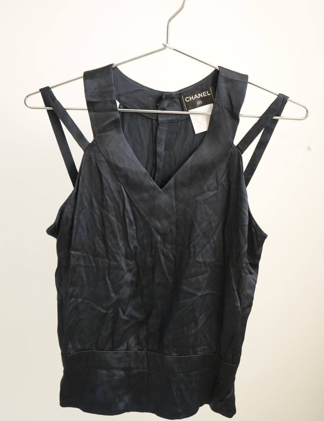 Vintage Chanel Navy Blue Silk Sleeveless Top Blouse Camisole