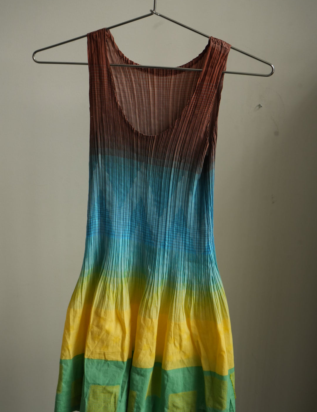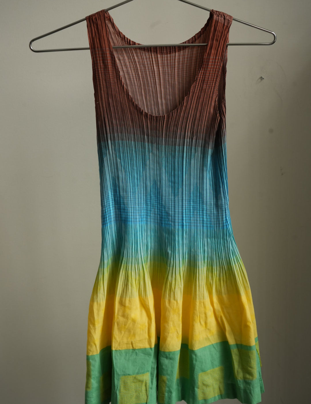 Vintage Issey Miyake Fete A-POC Inside Pleated Ombre Colorblock Mini Dress