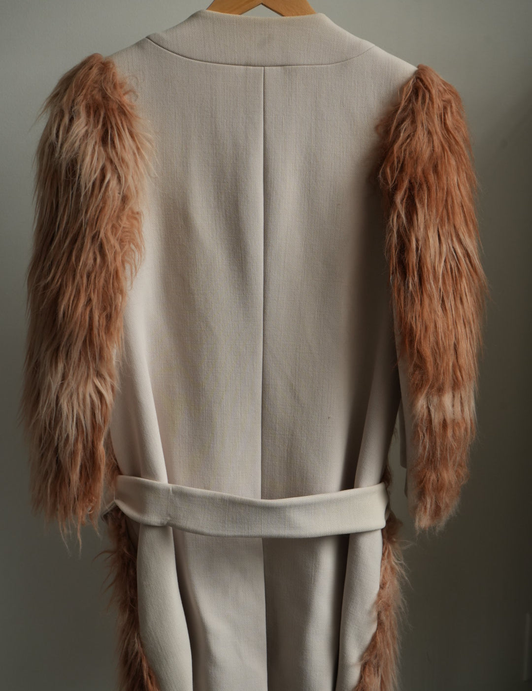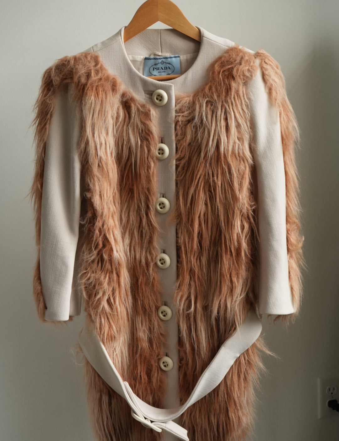Prada Shaggy Wool Faux Fur Button Front Belted Coat Jacket Peach Size 42S