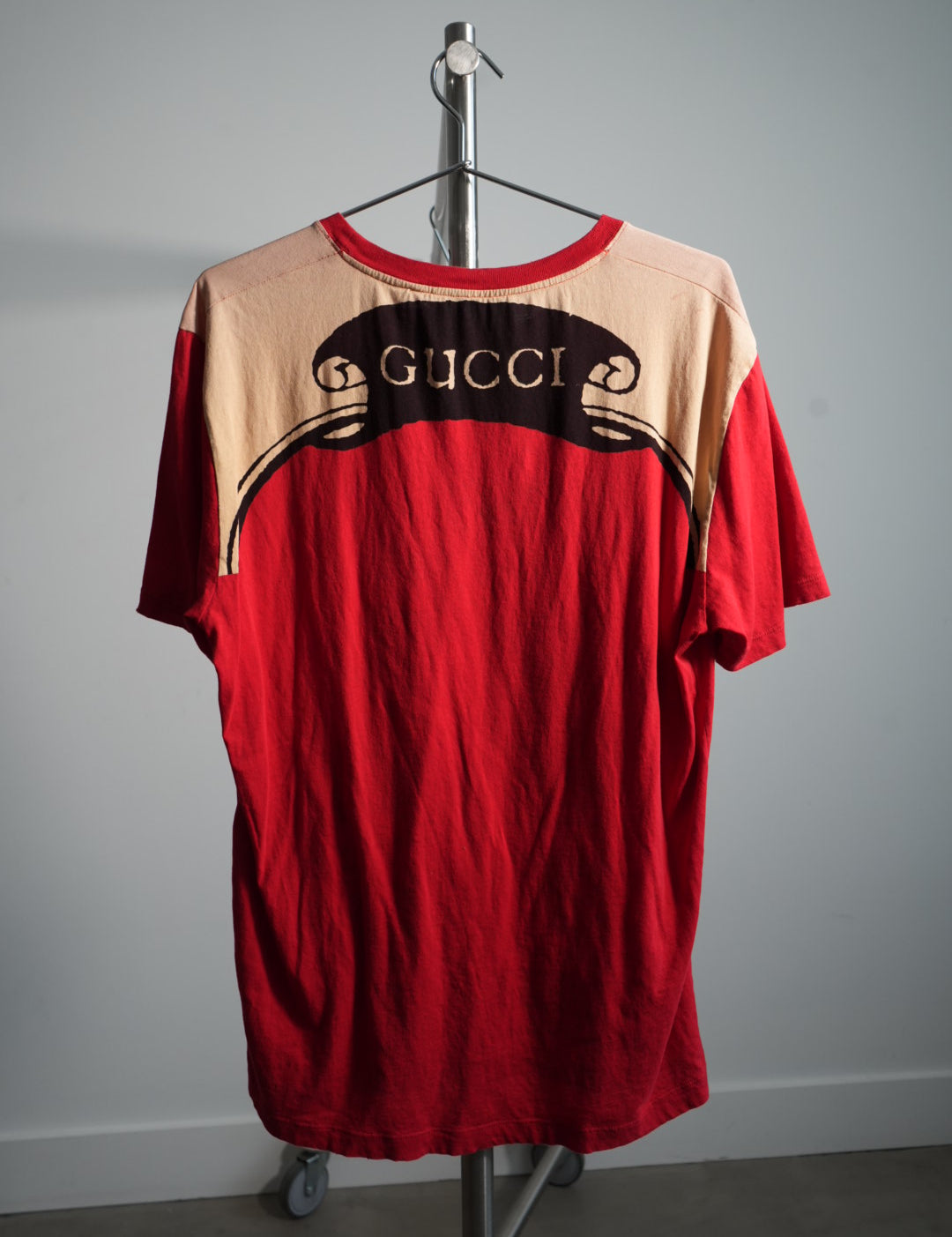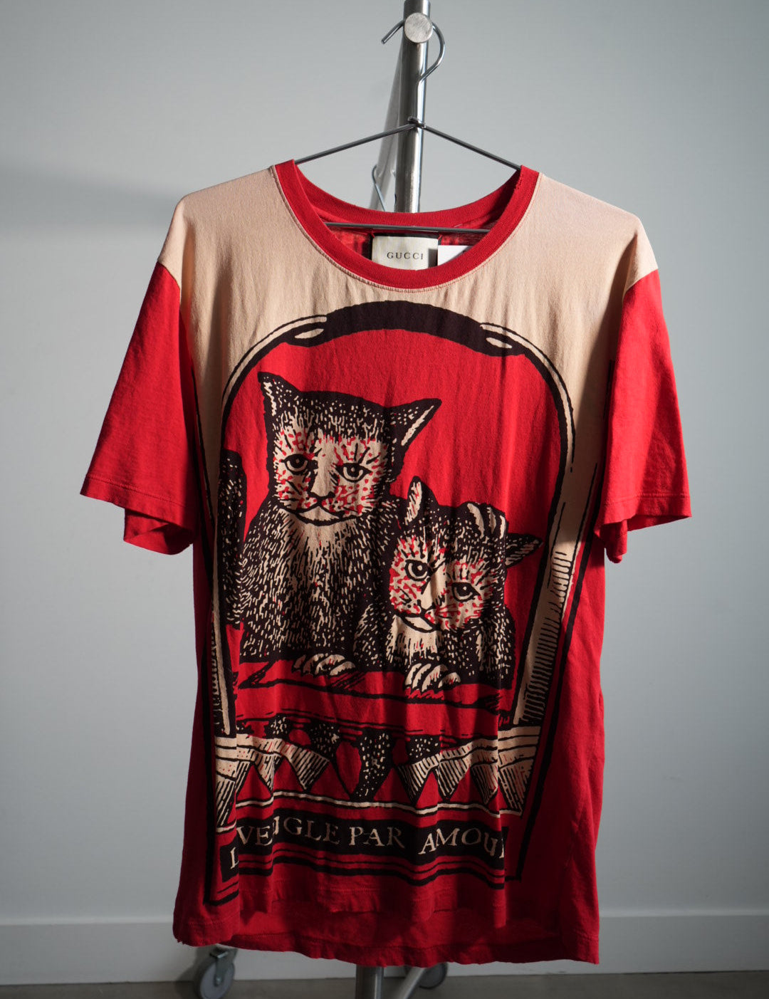 Gucci Cat Print "L'Aveugle Par Amour" Tee Shirt Red & Beige