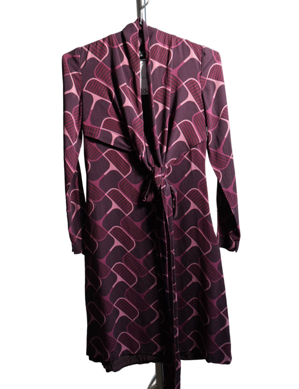Gucci Geometric Print Silk Long Sleeve Wrap Dress Purple Pink