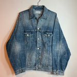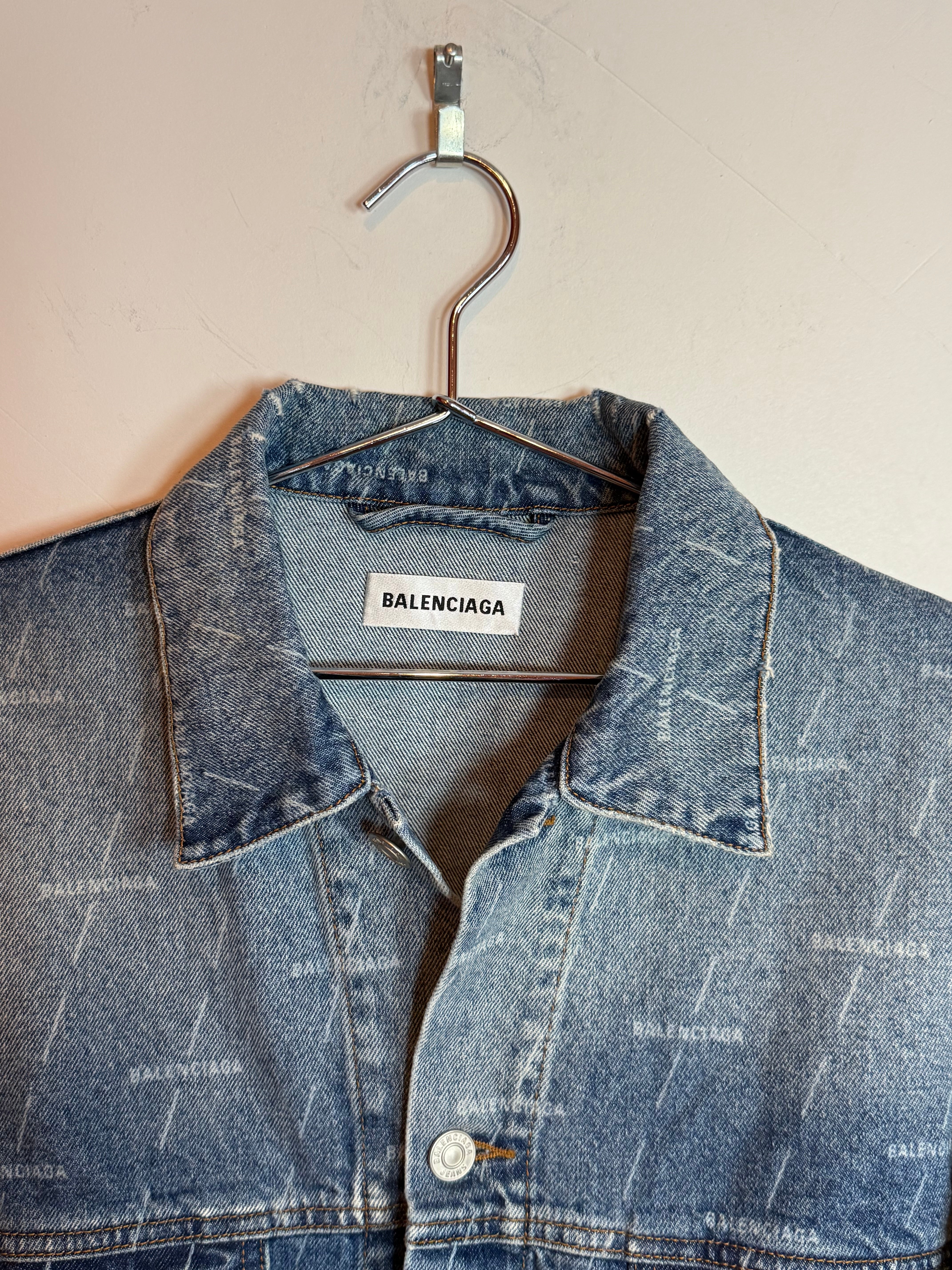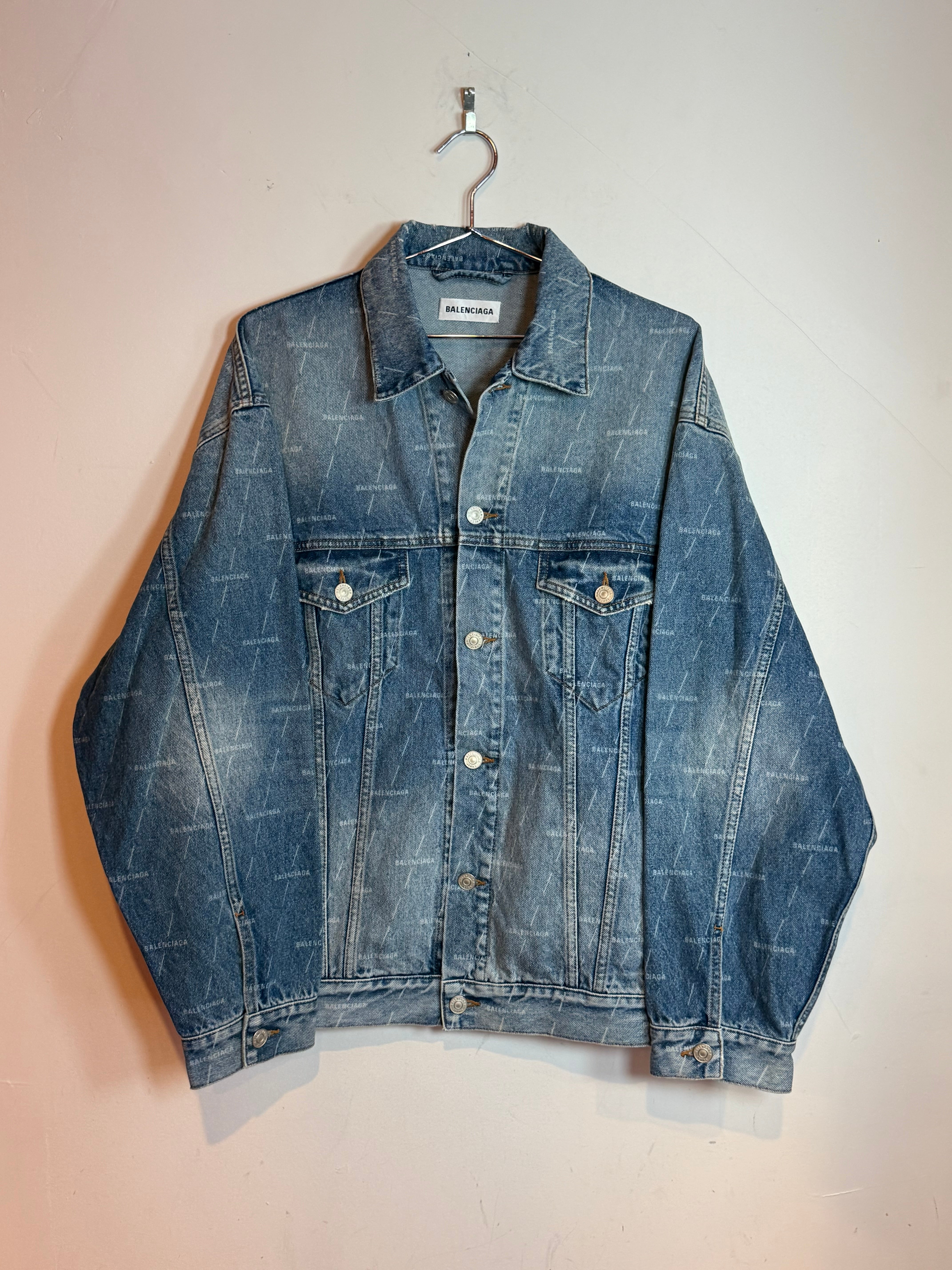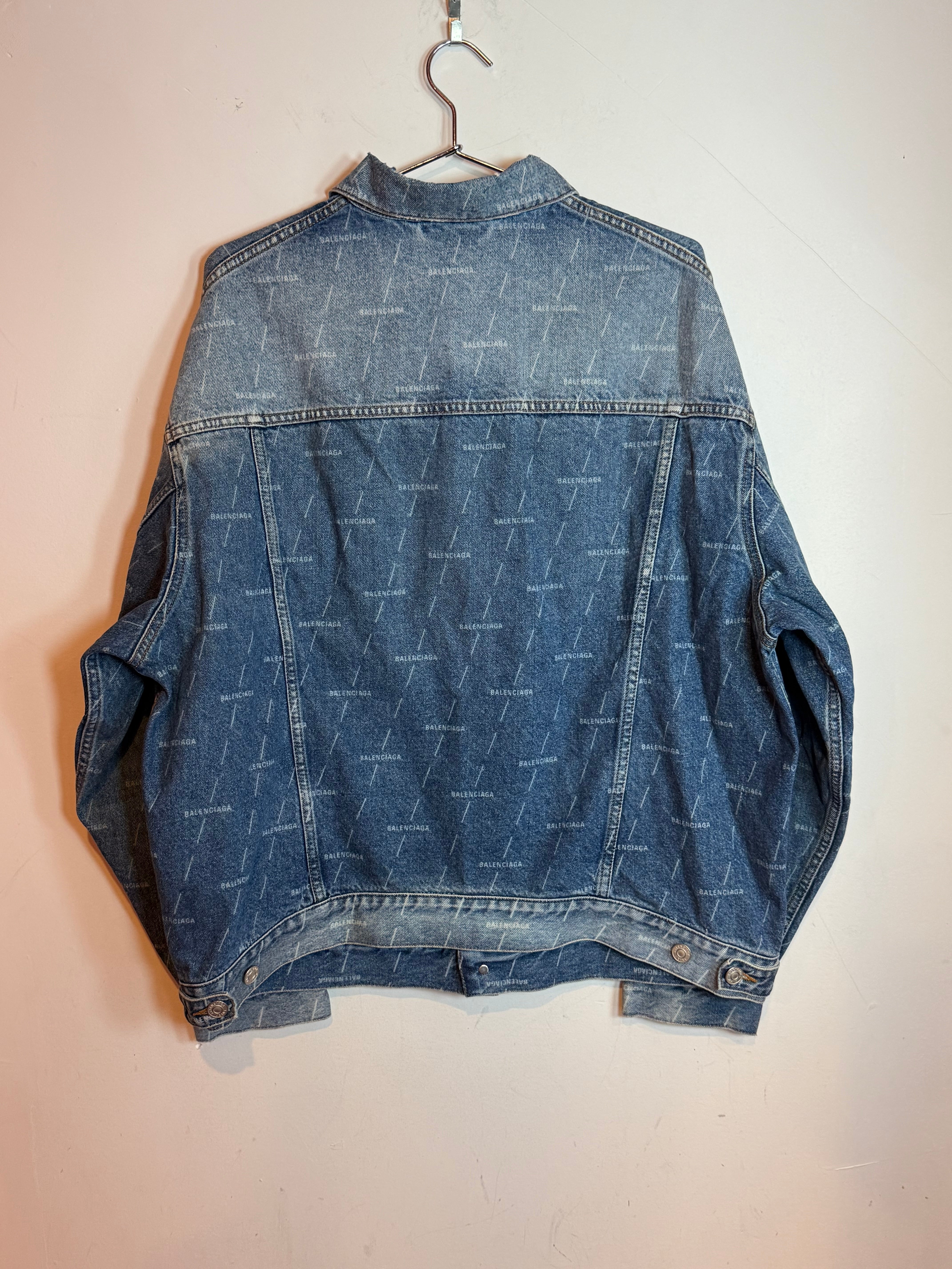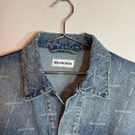 Balenciaga AOP Logo Oversized Denim Jacket Blue