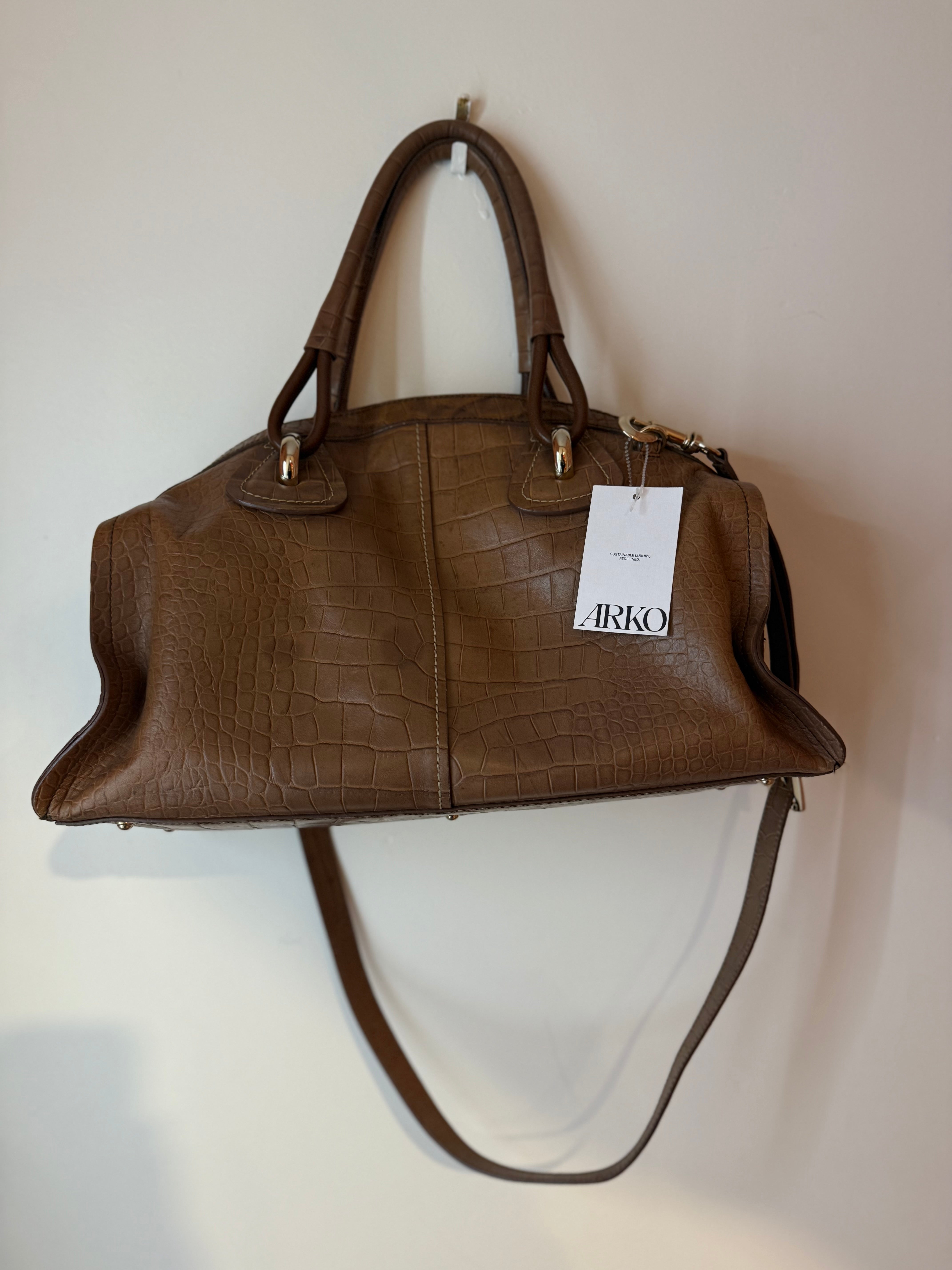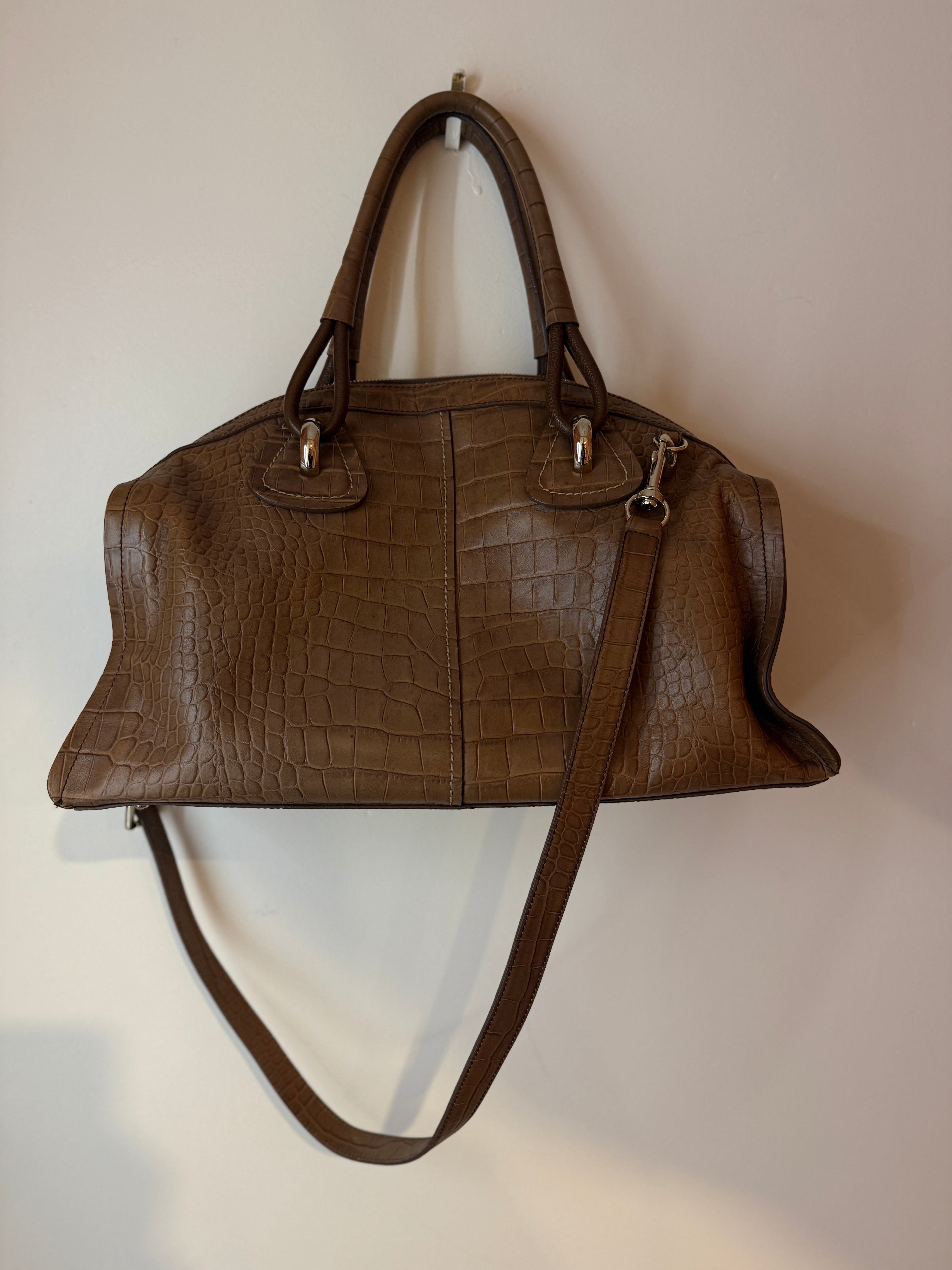 Balenciaga Brown Croc Skin Large Handbag W/ Strap