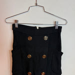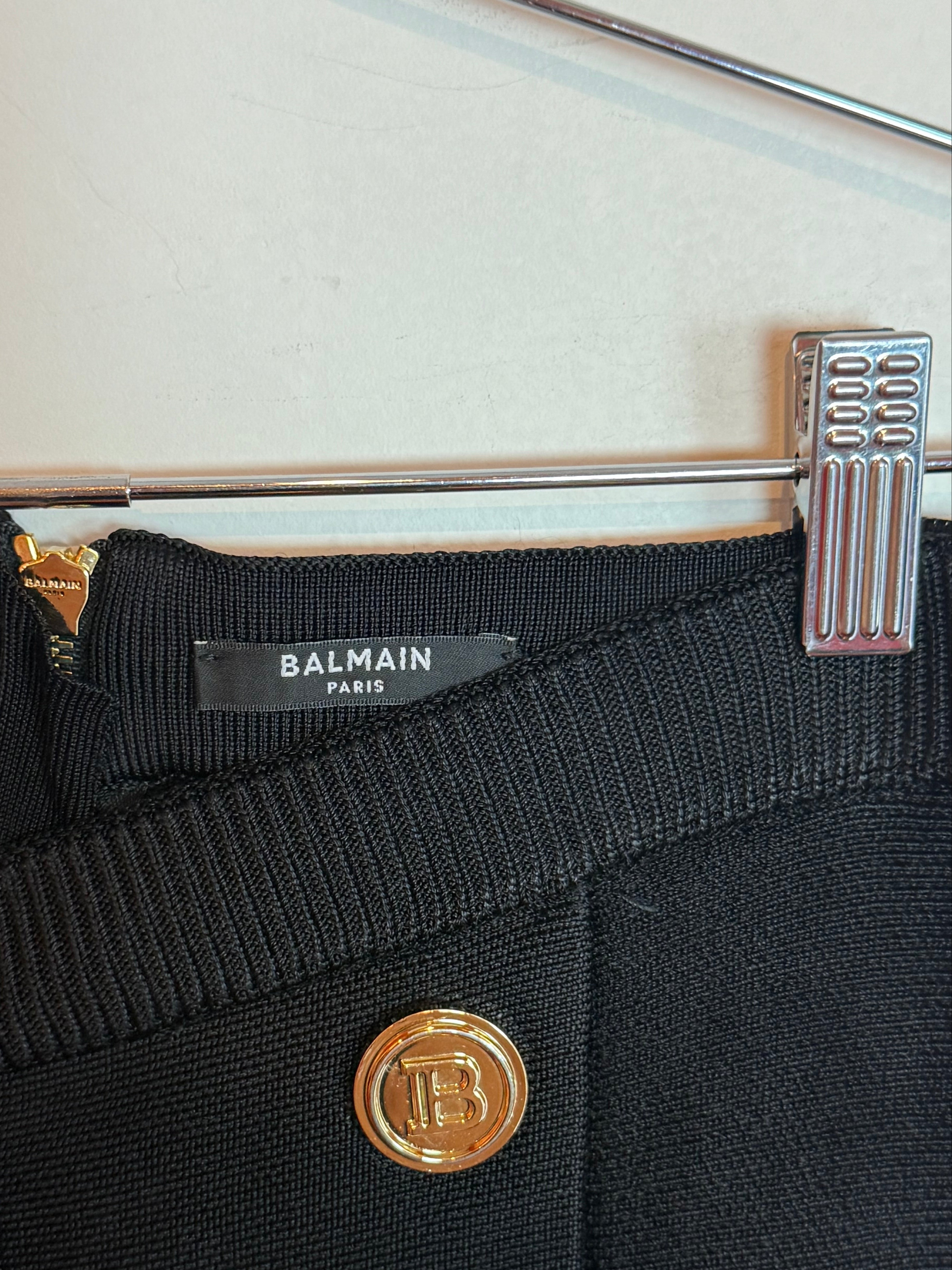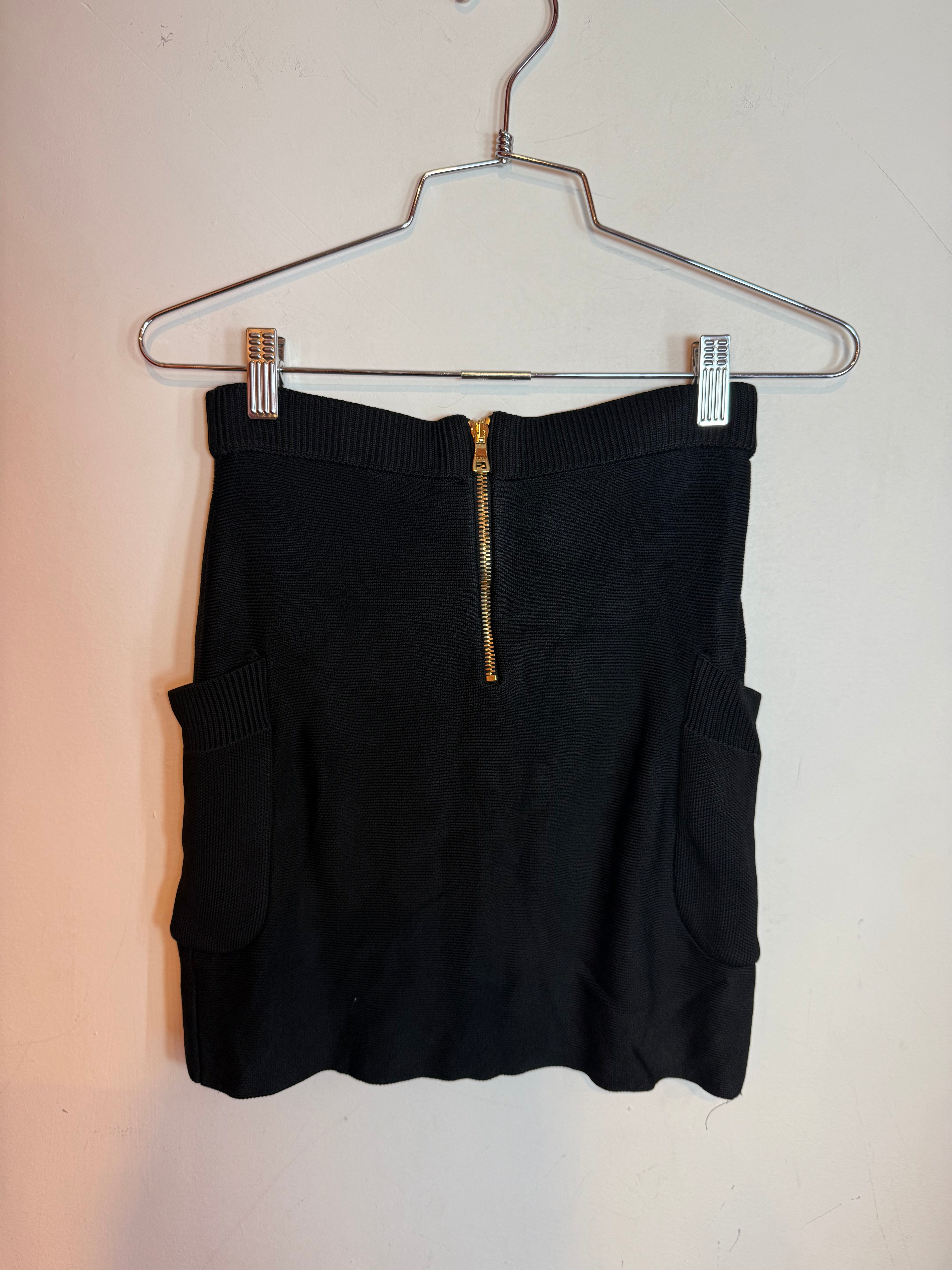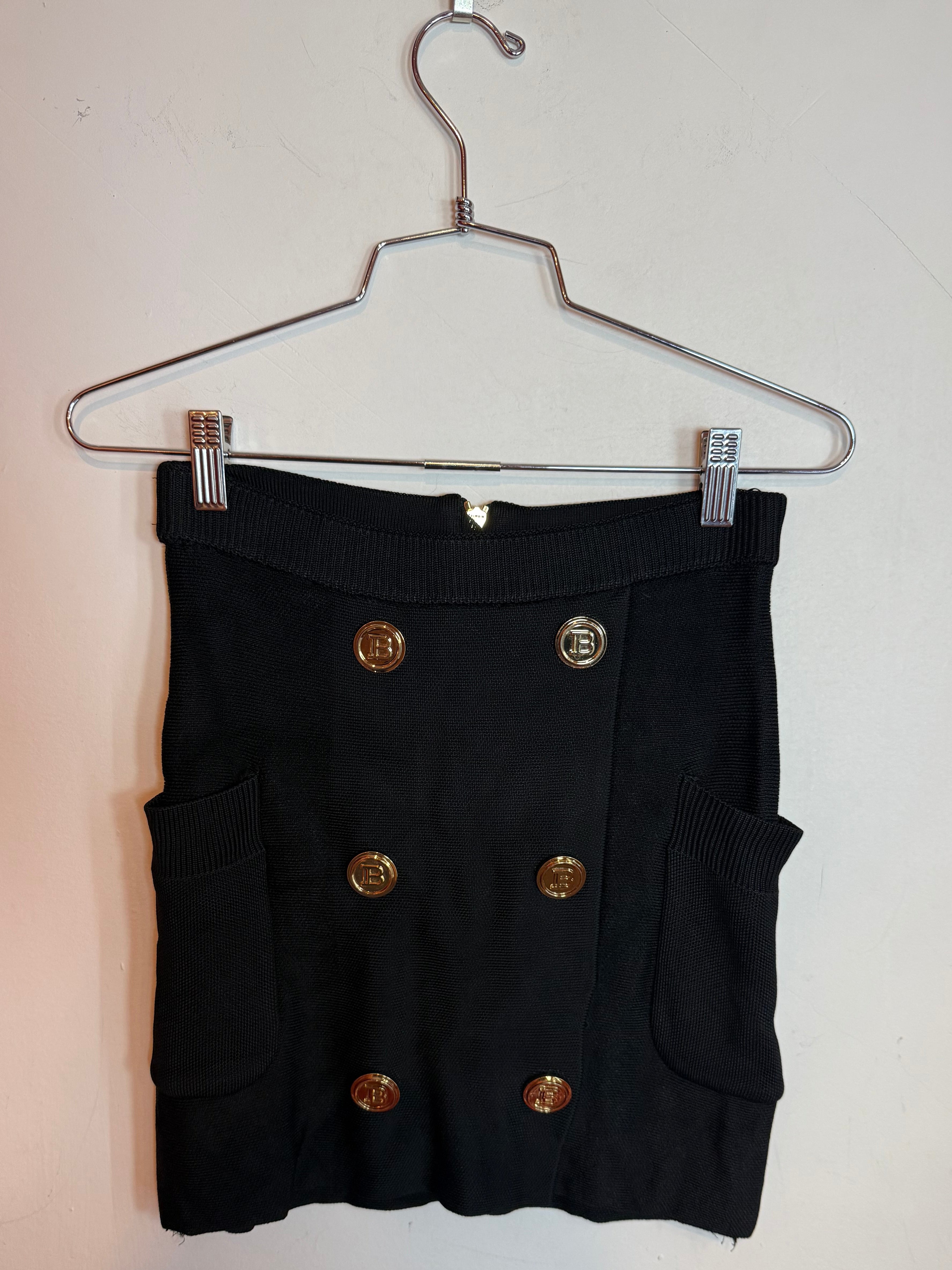 Balmain Black Knit Mini Skirt with Gold Buttons and Pockets