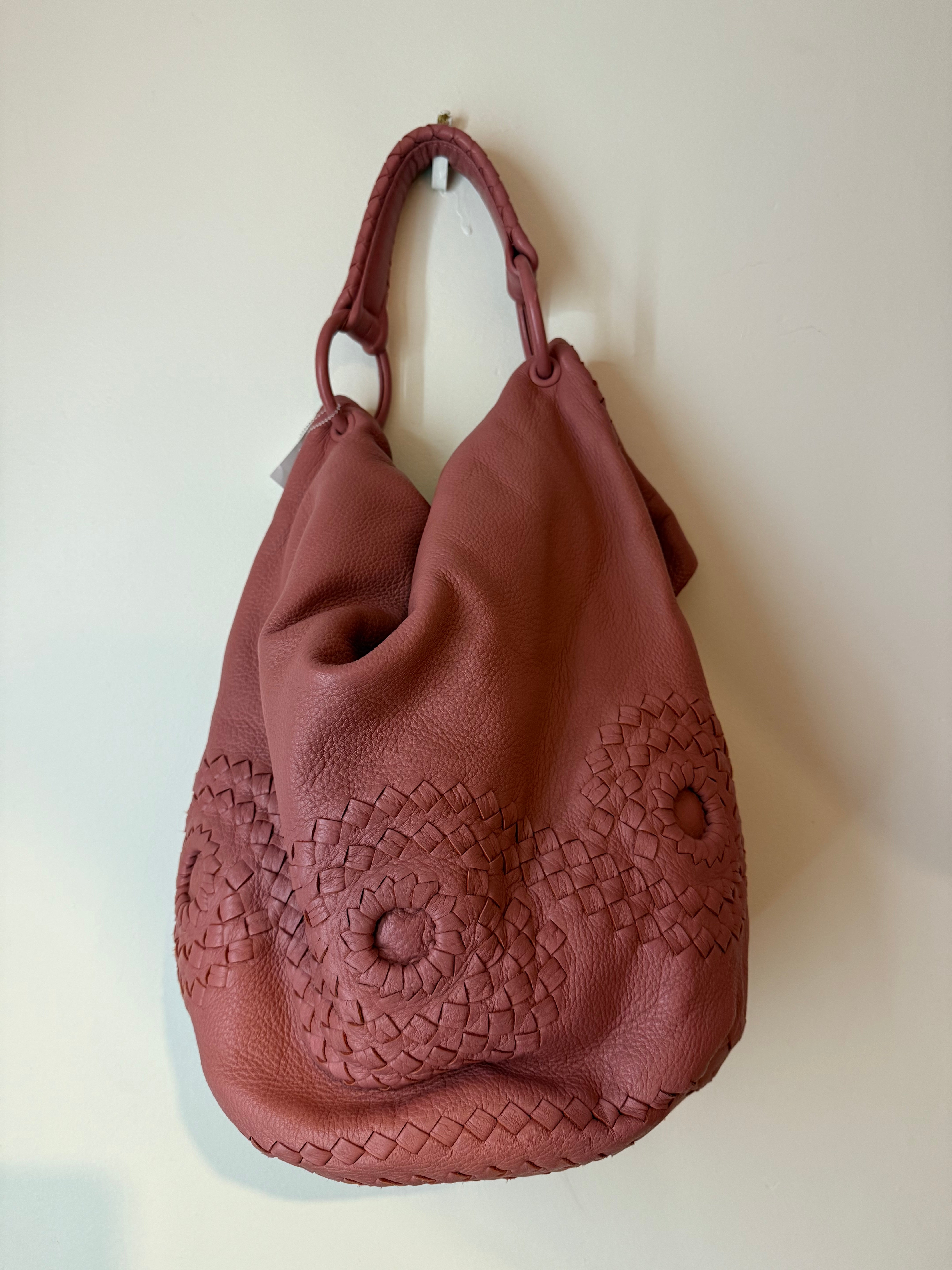 Bottega Pink Large Woven Handbag W/ Multiple Flaps