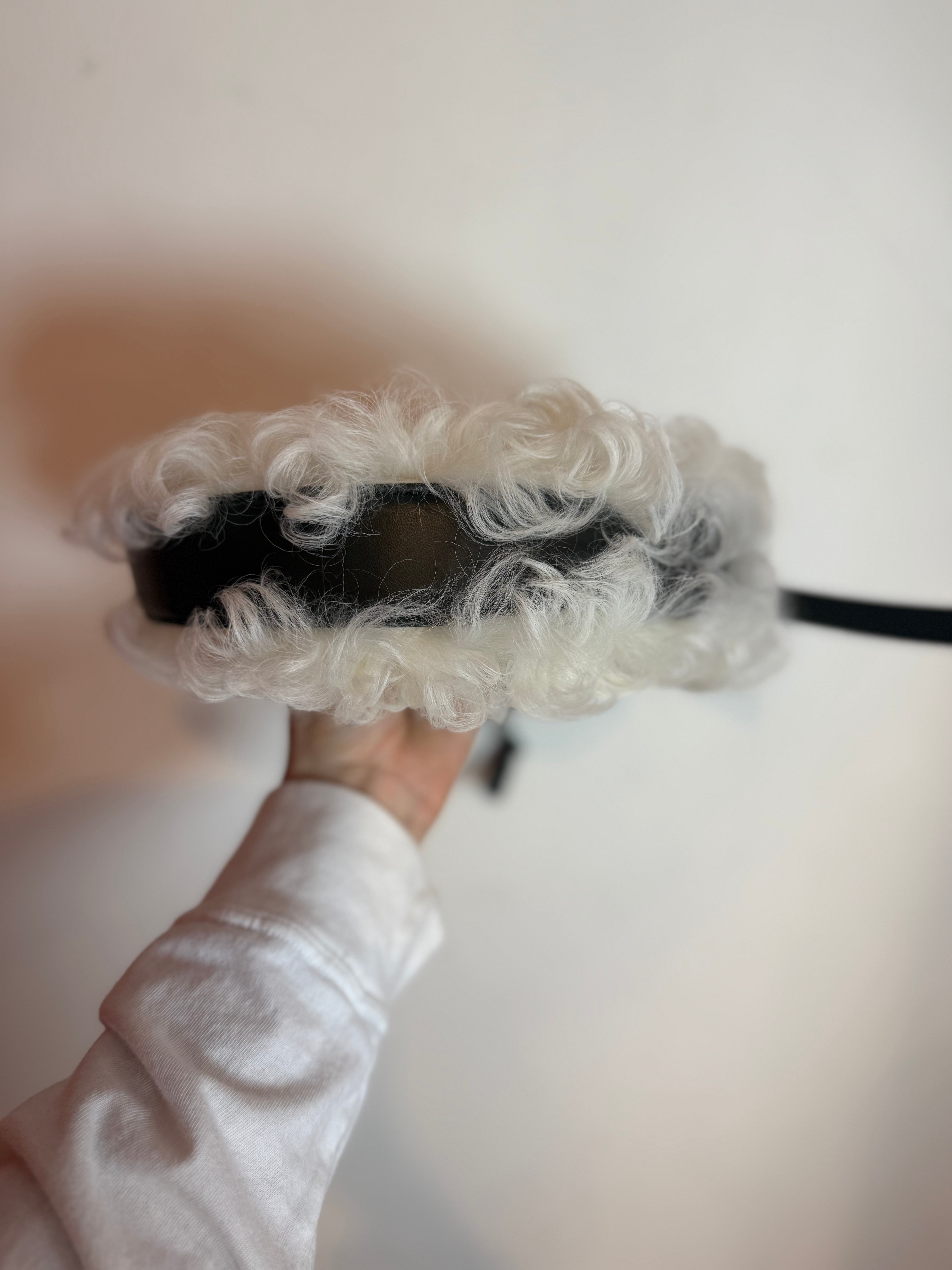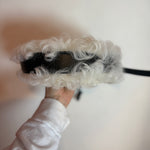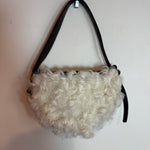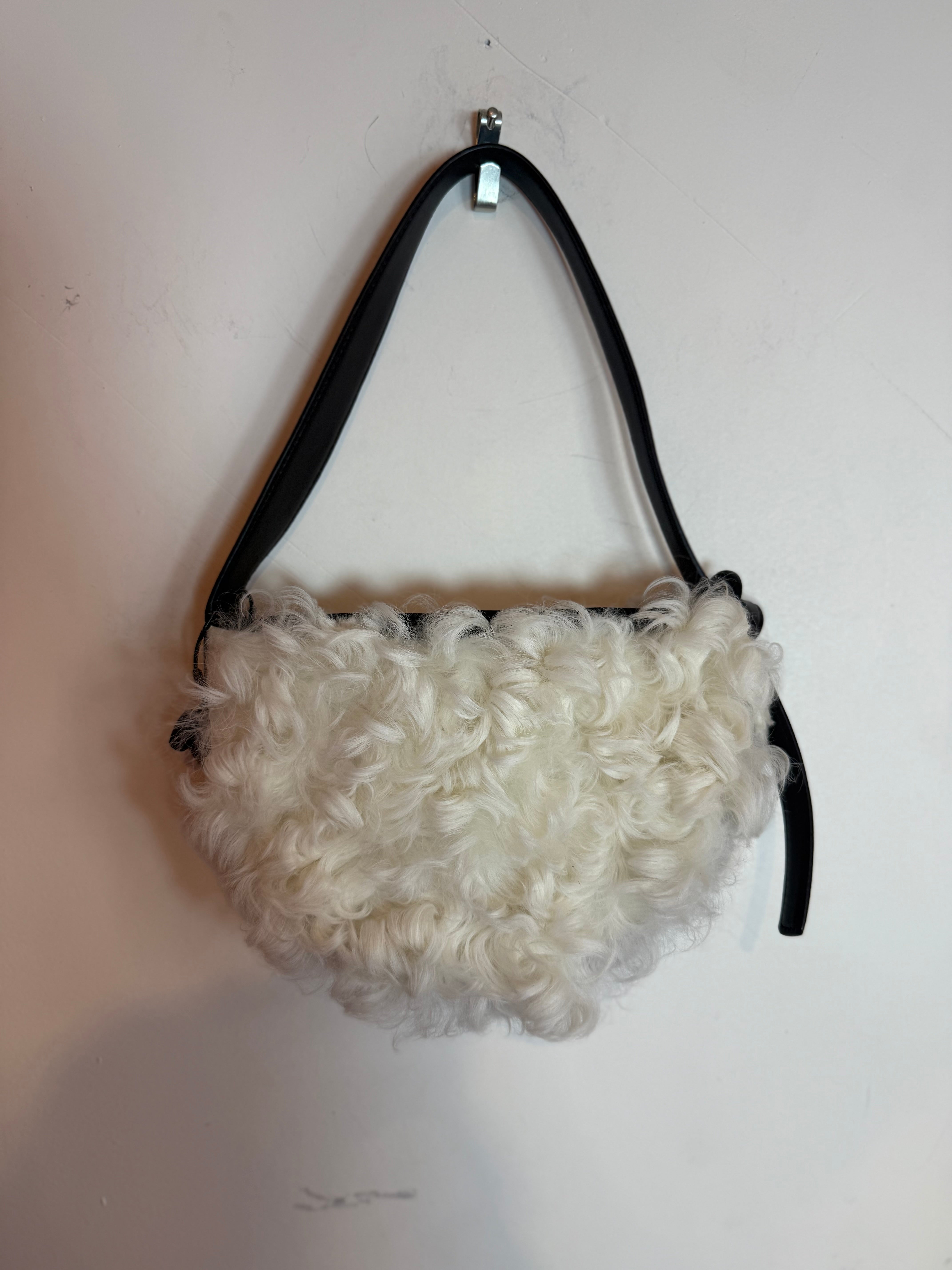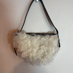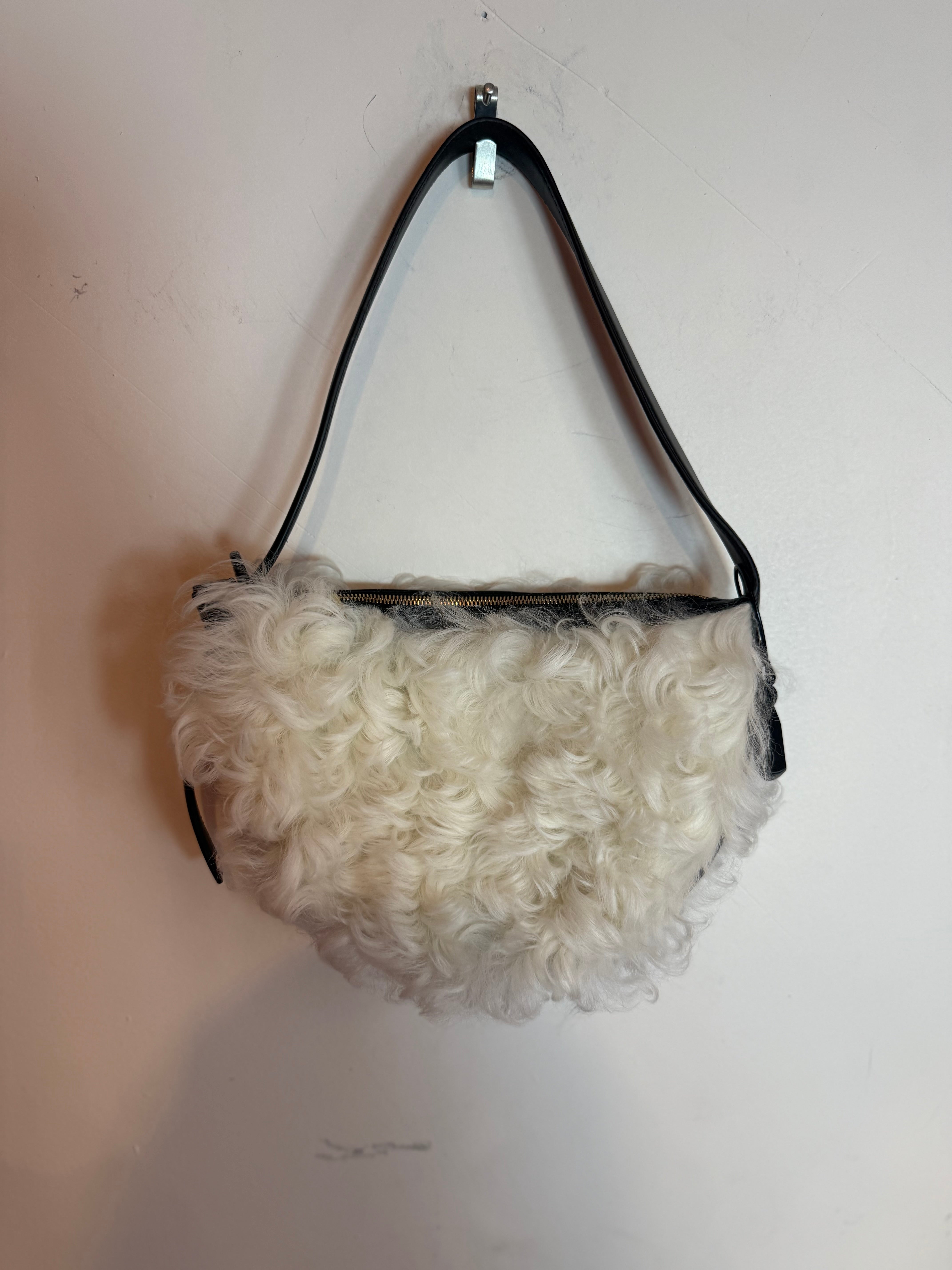 Bottega Veneta Mini Sunrise White Shearling Lambskin Black Leather Shoulder Bag