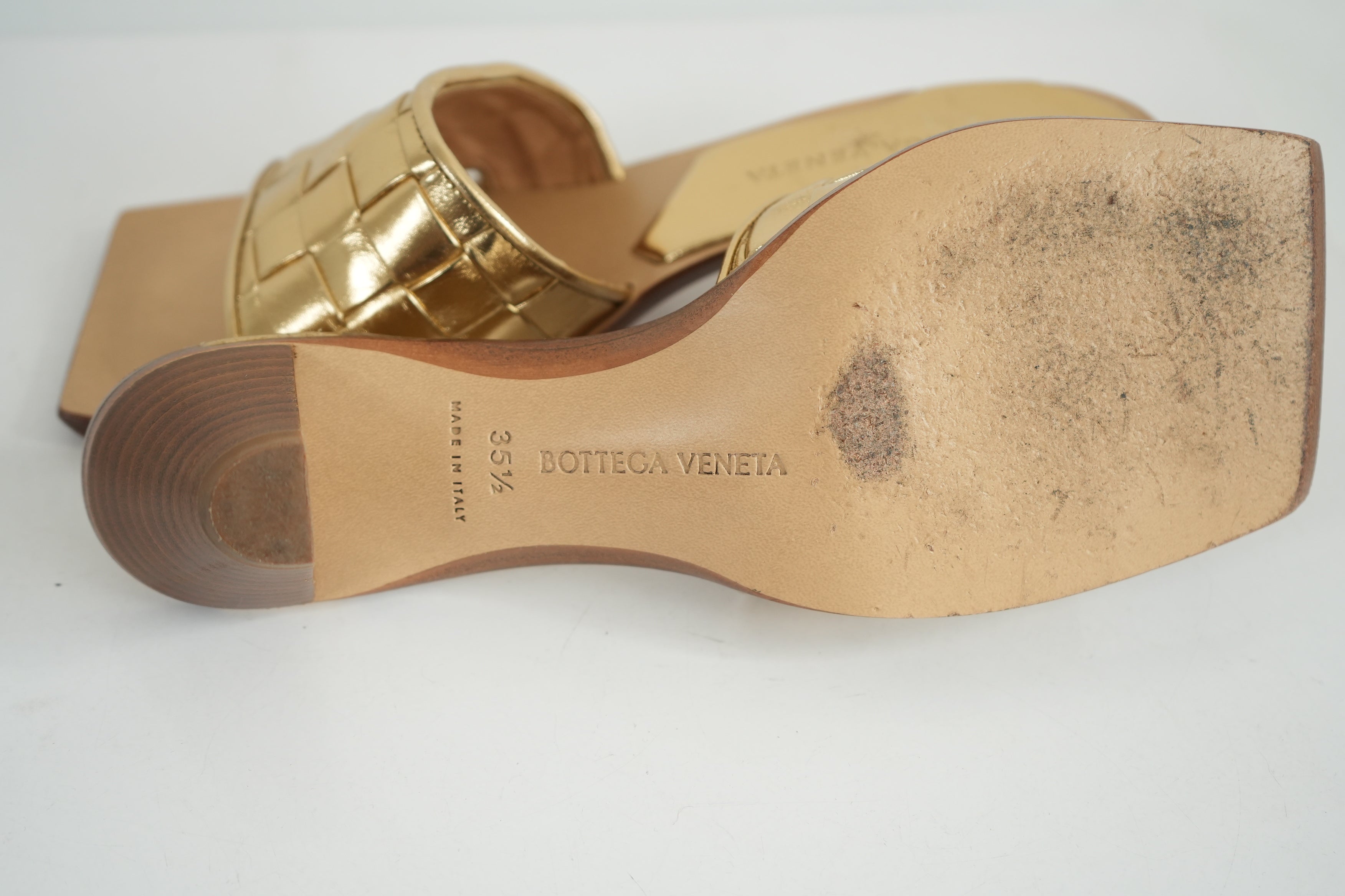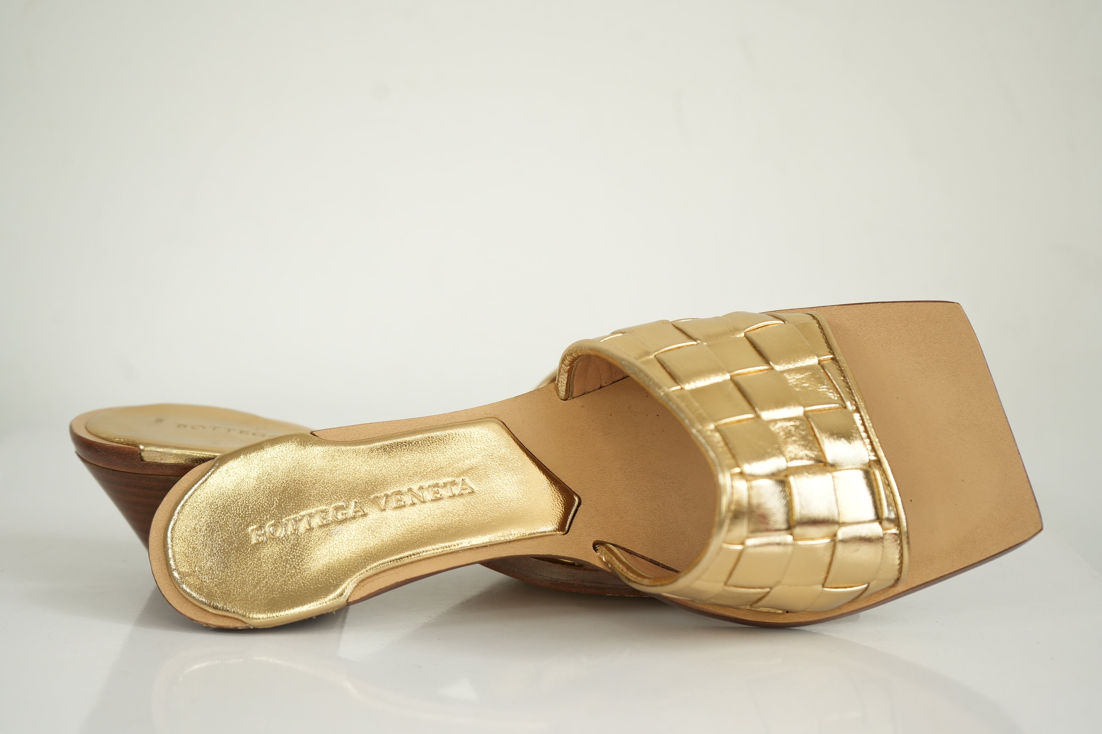 Bottega Veneta Gold Woven Sandals