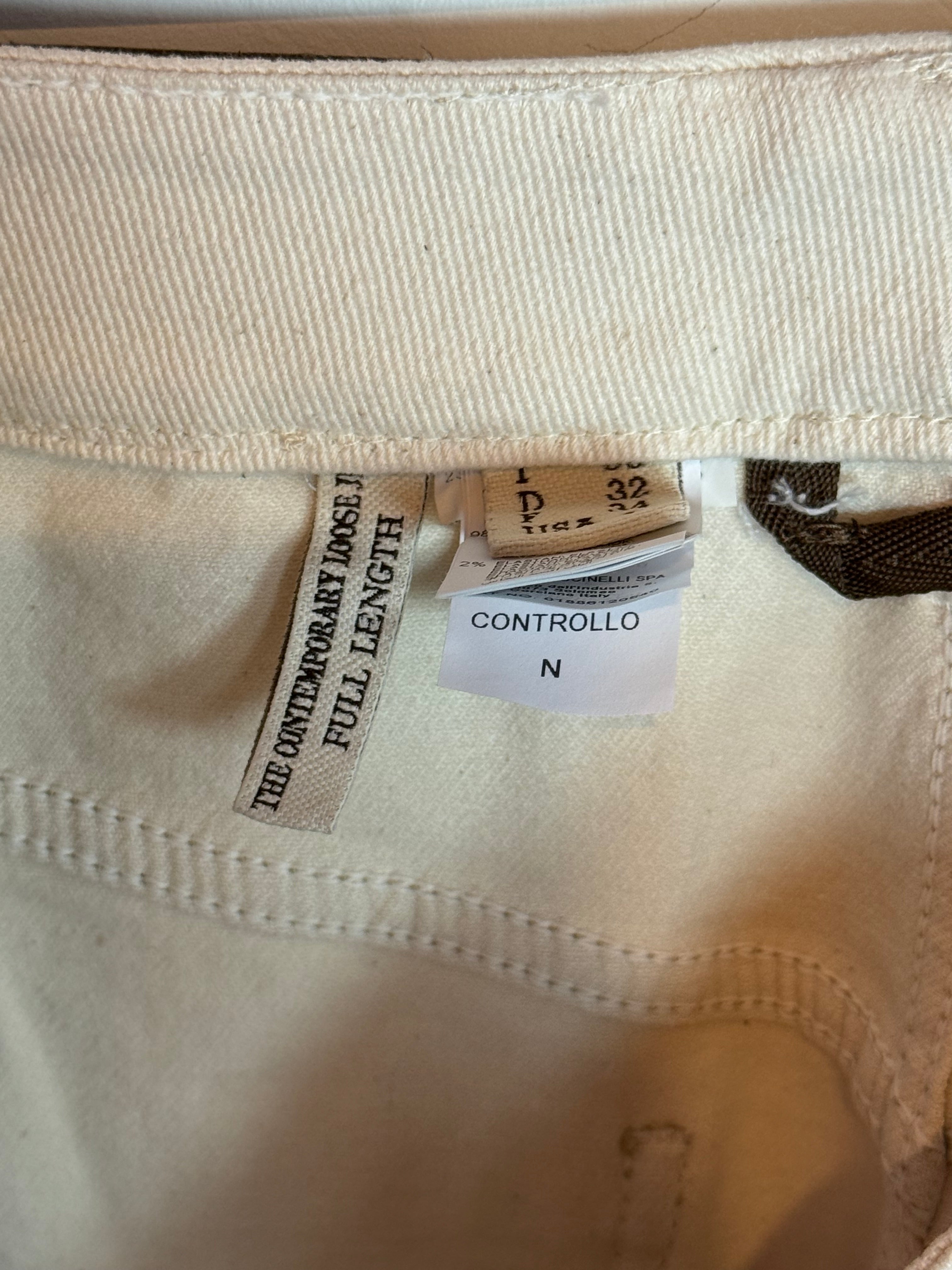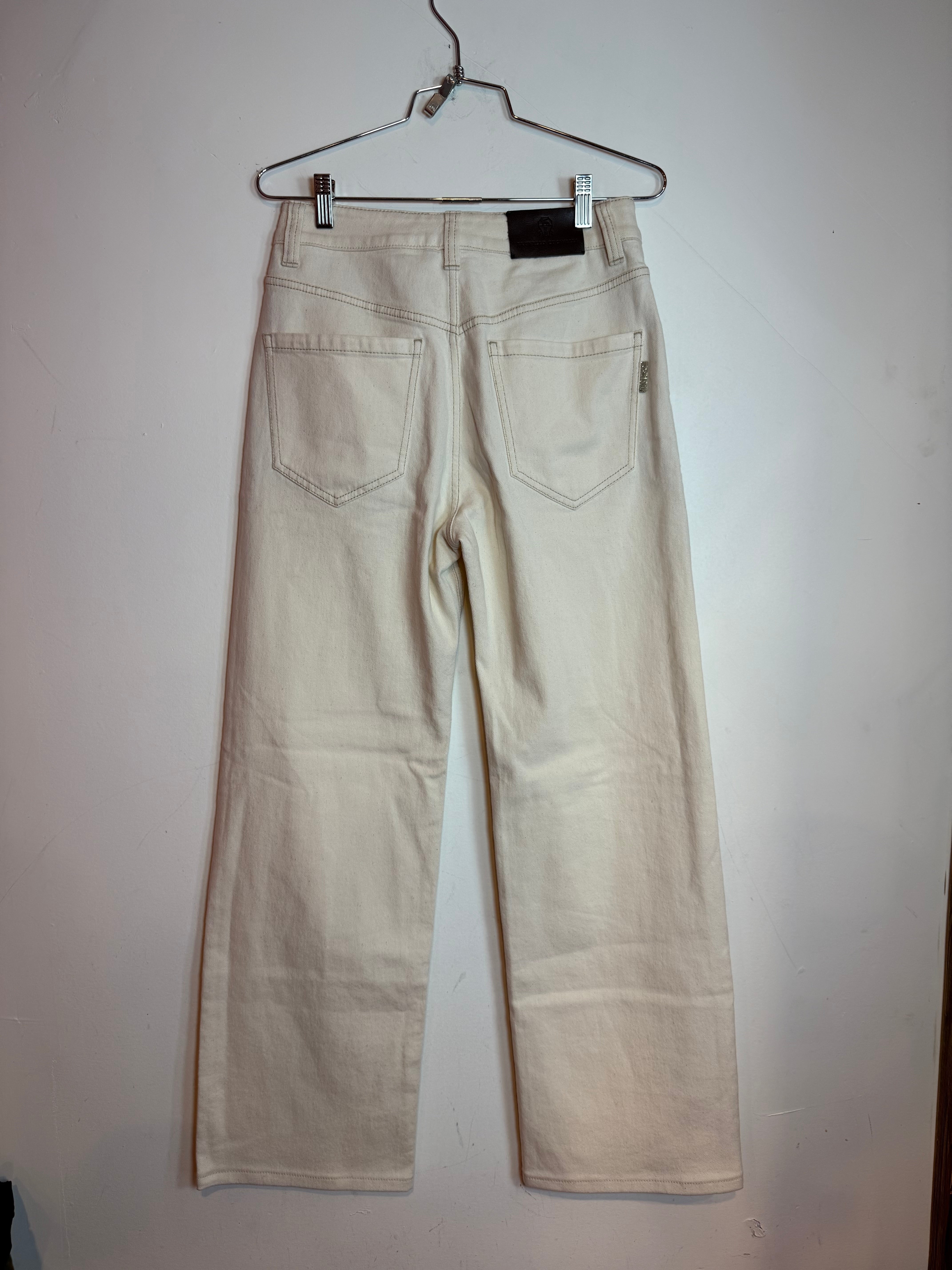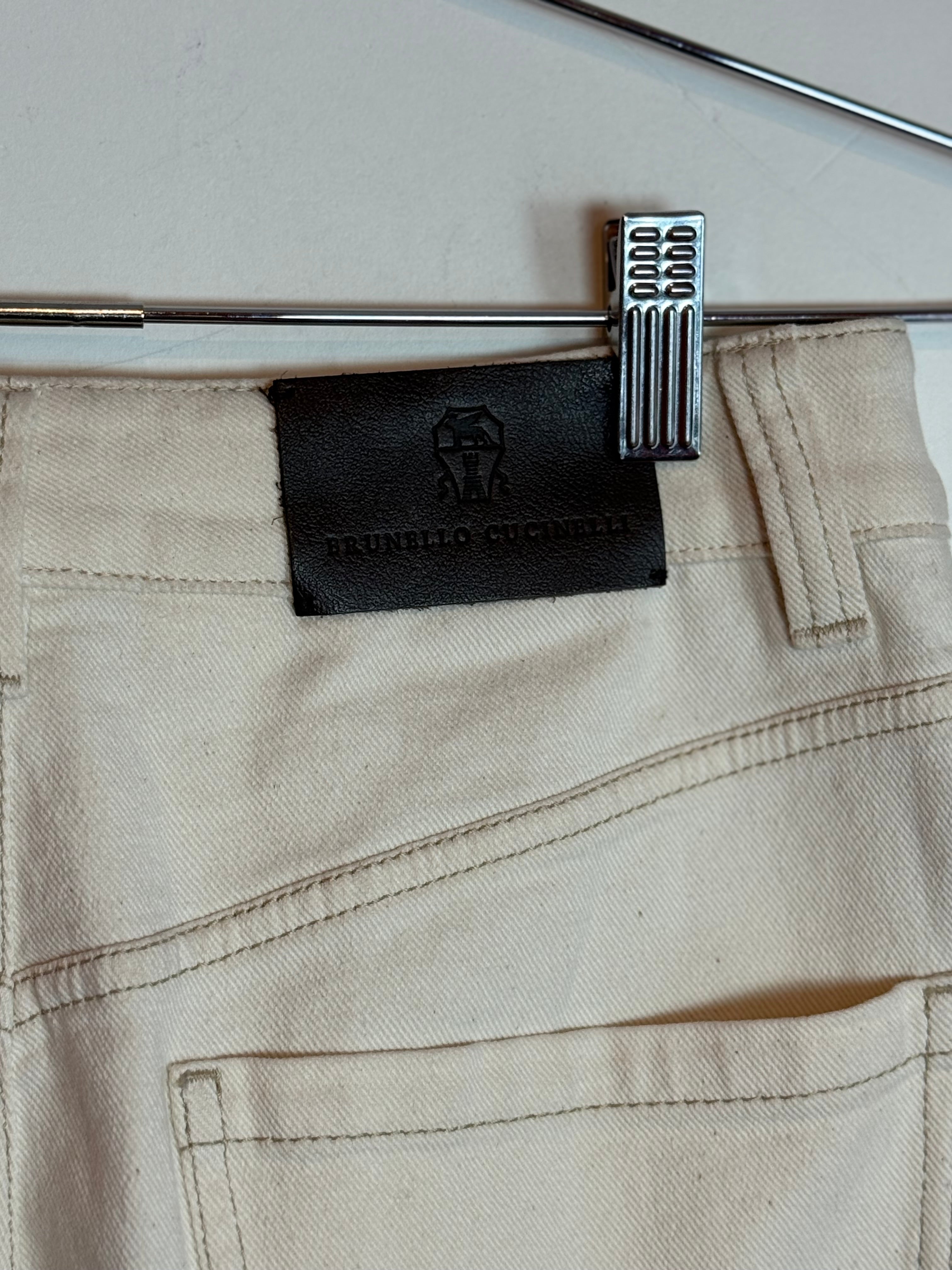 Brunello Cucinelli High Rise Wide Leg Denim Pants Cream Size 2