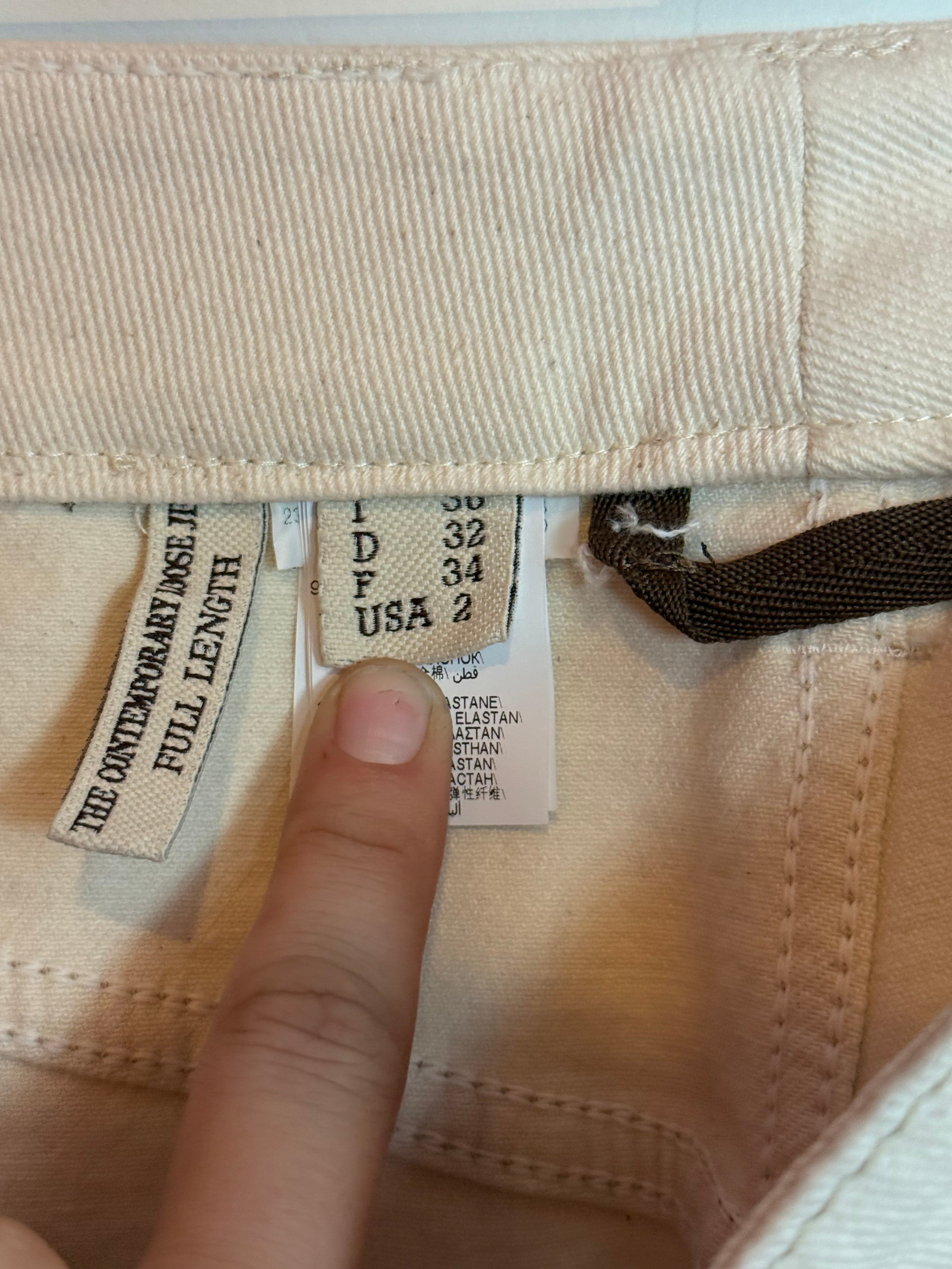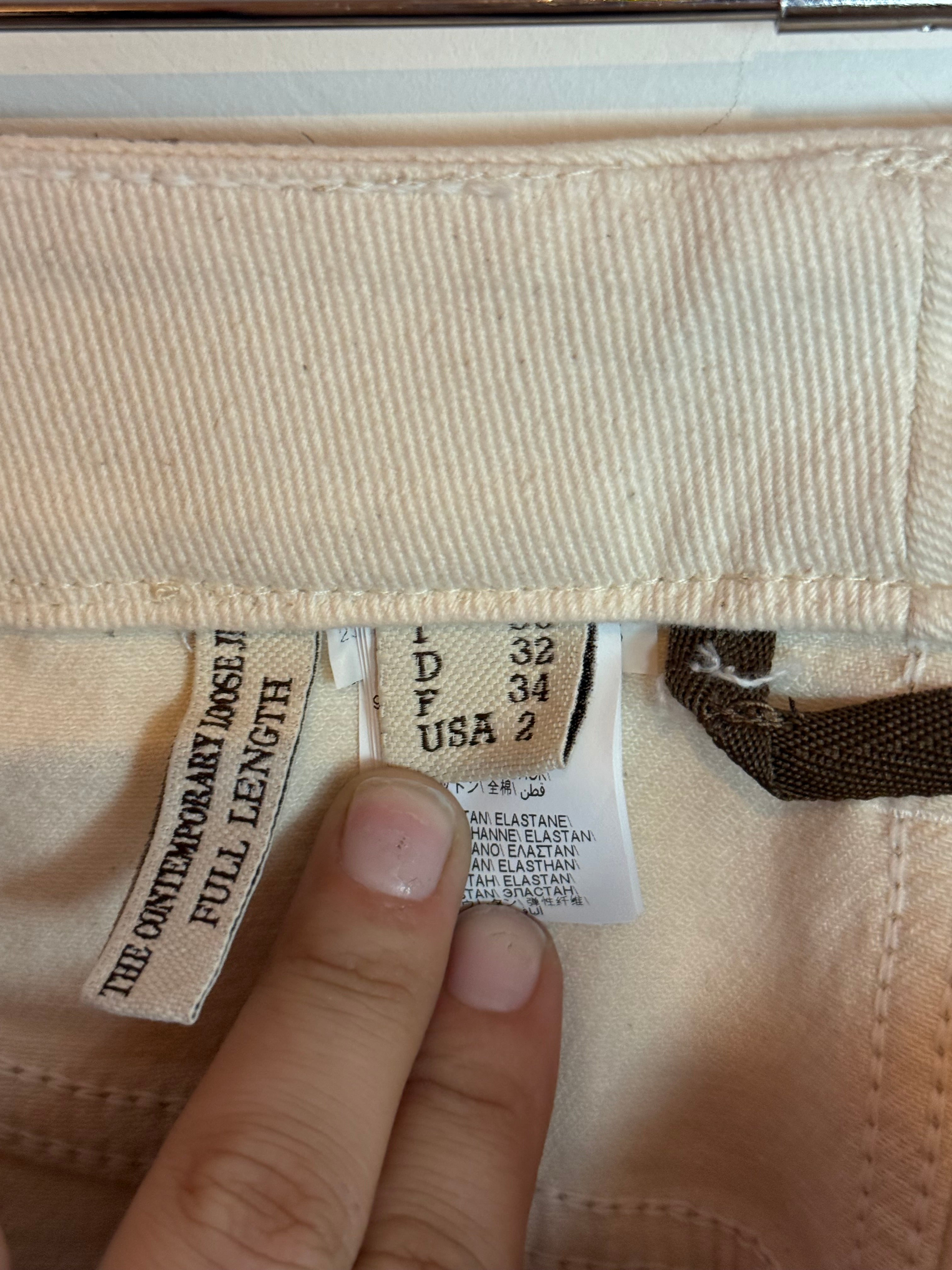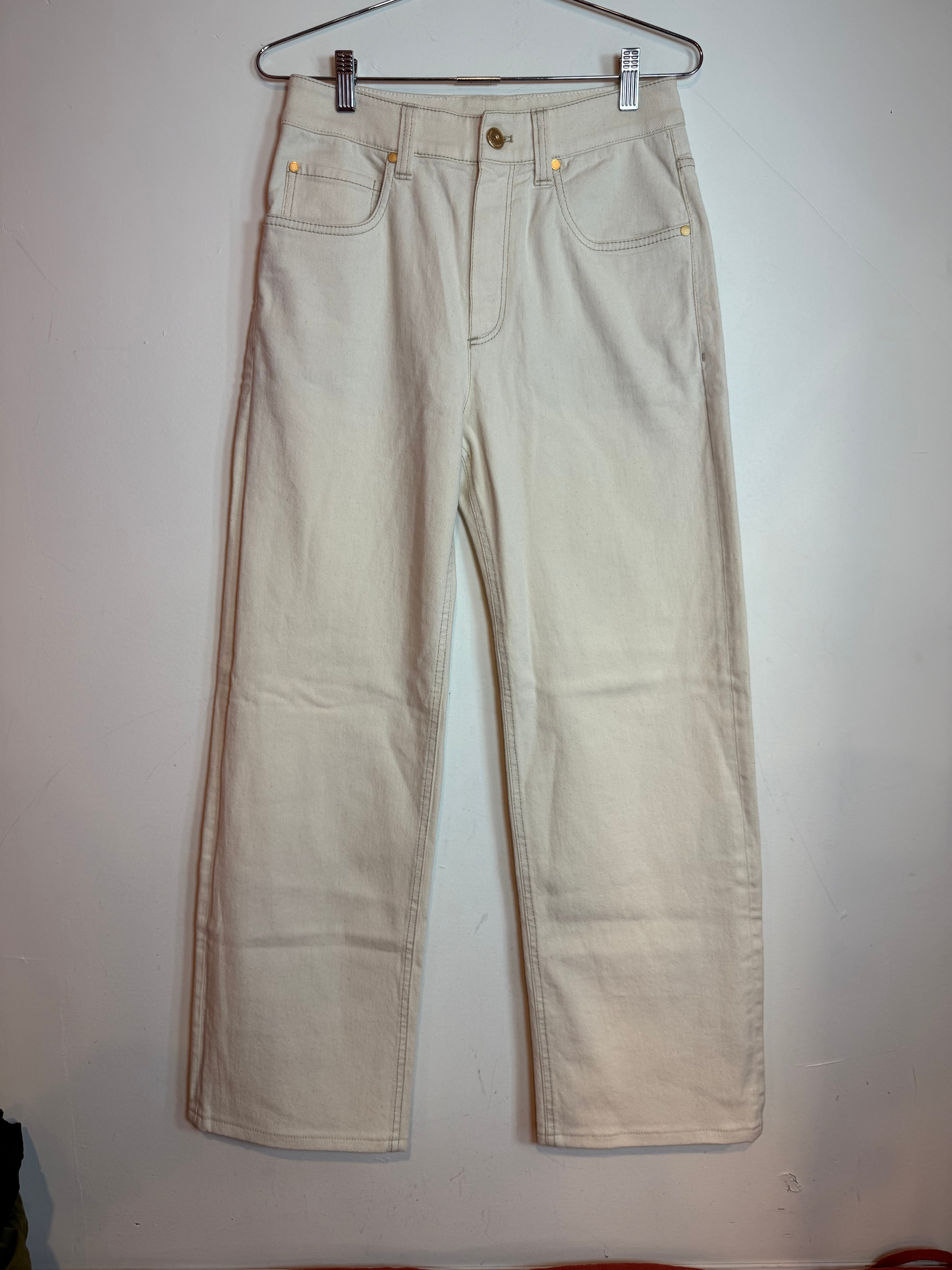 Brunello Cucinelli High Rise Wide Leg Denim Pants Cream Size 2