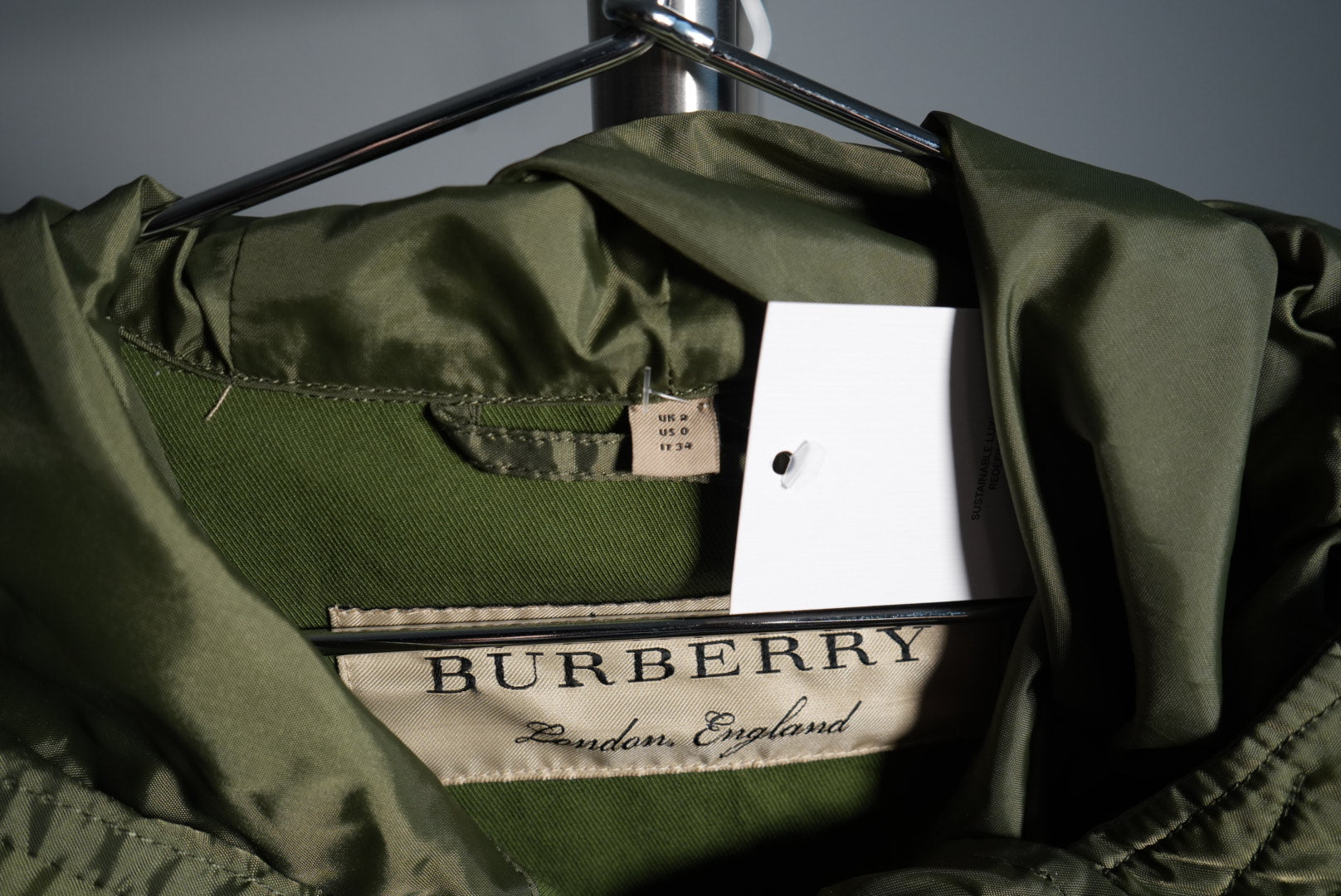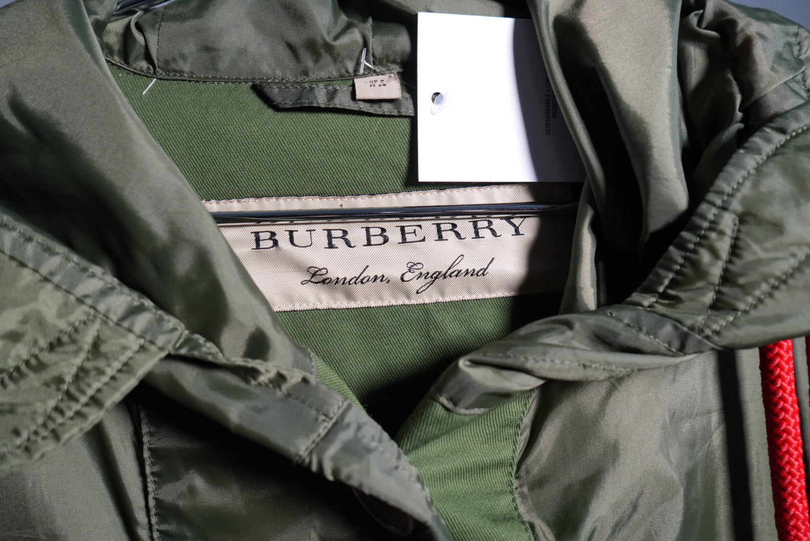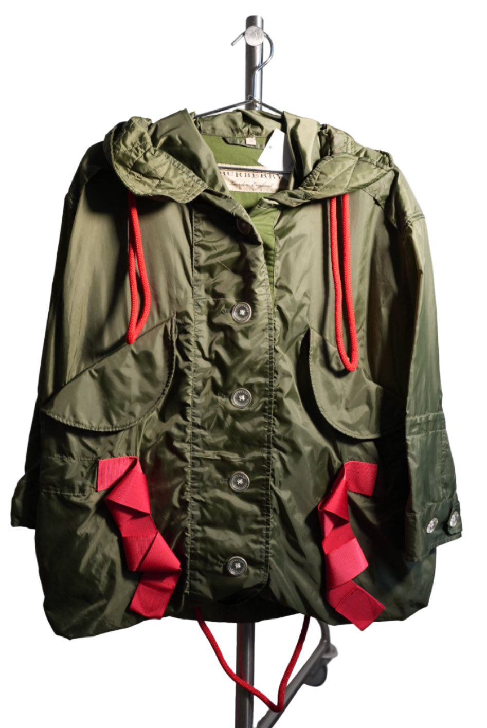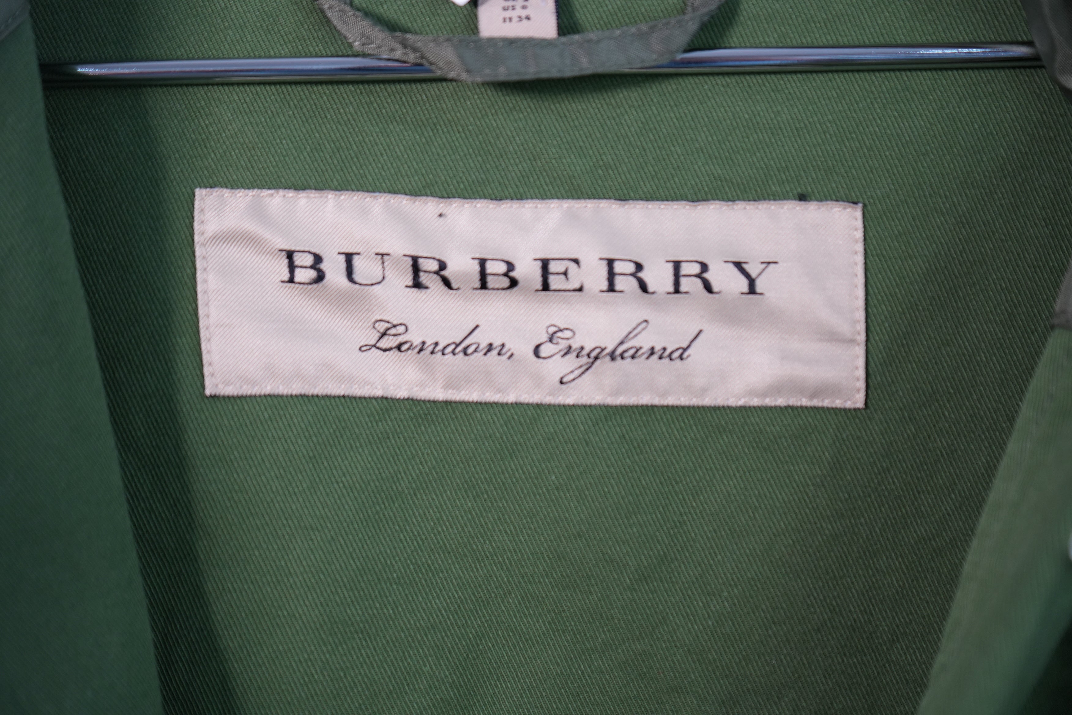 Burberry Nylon Hooded Mod Coat Parka Jacket Olive Green Size 0