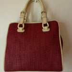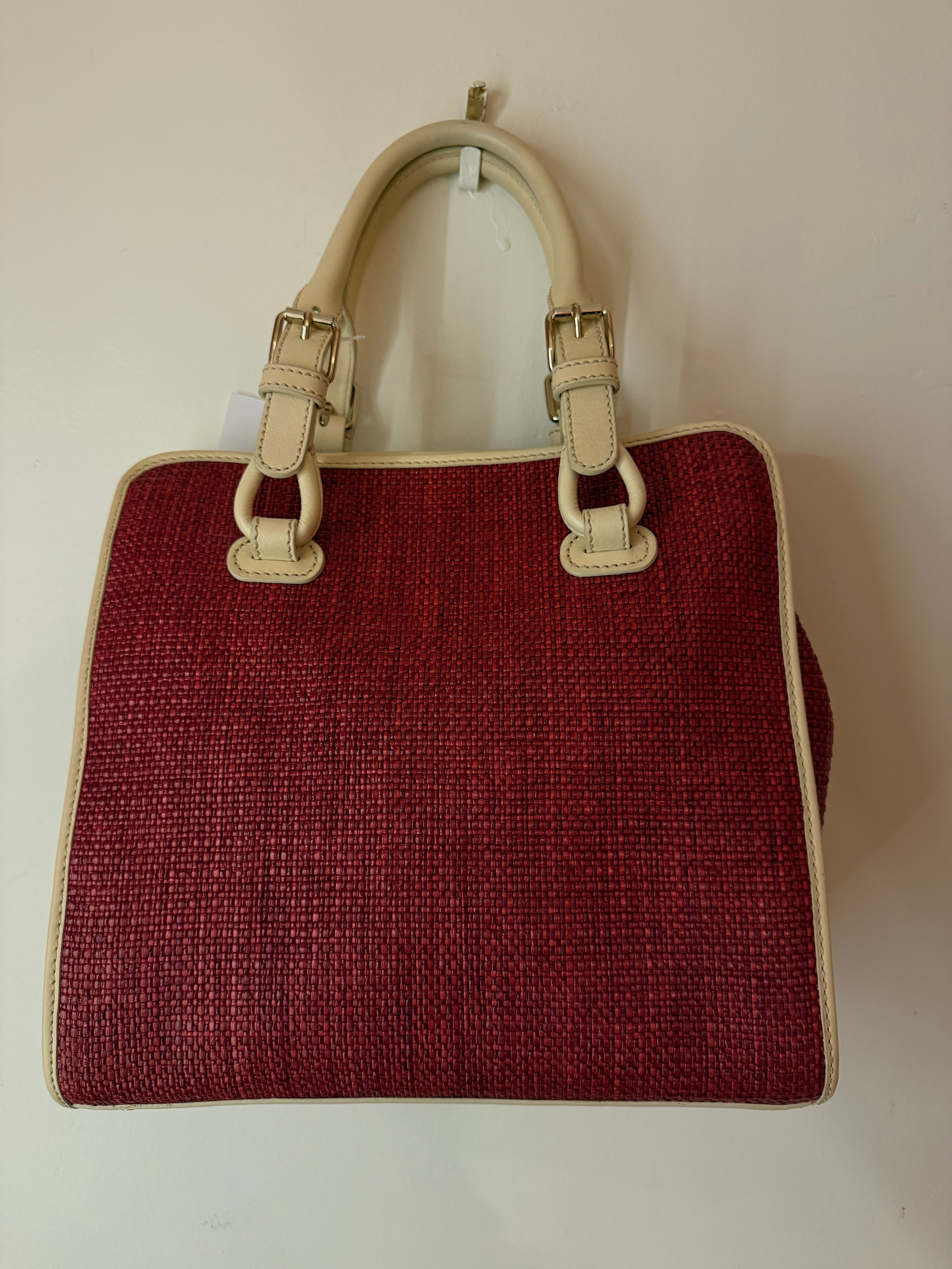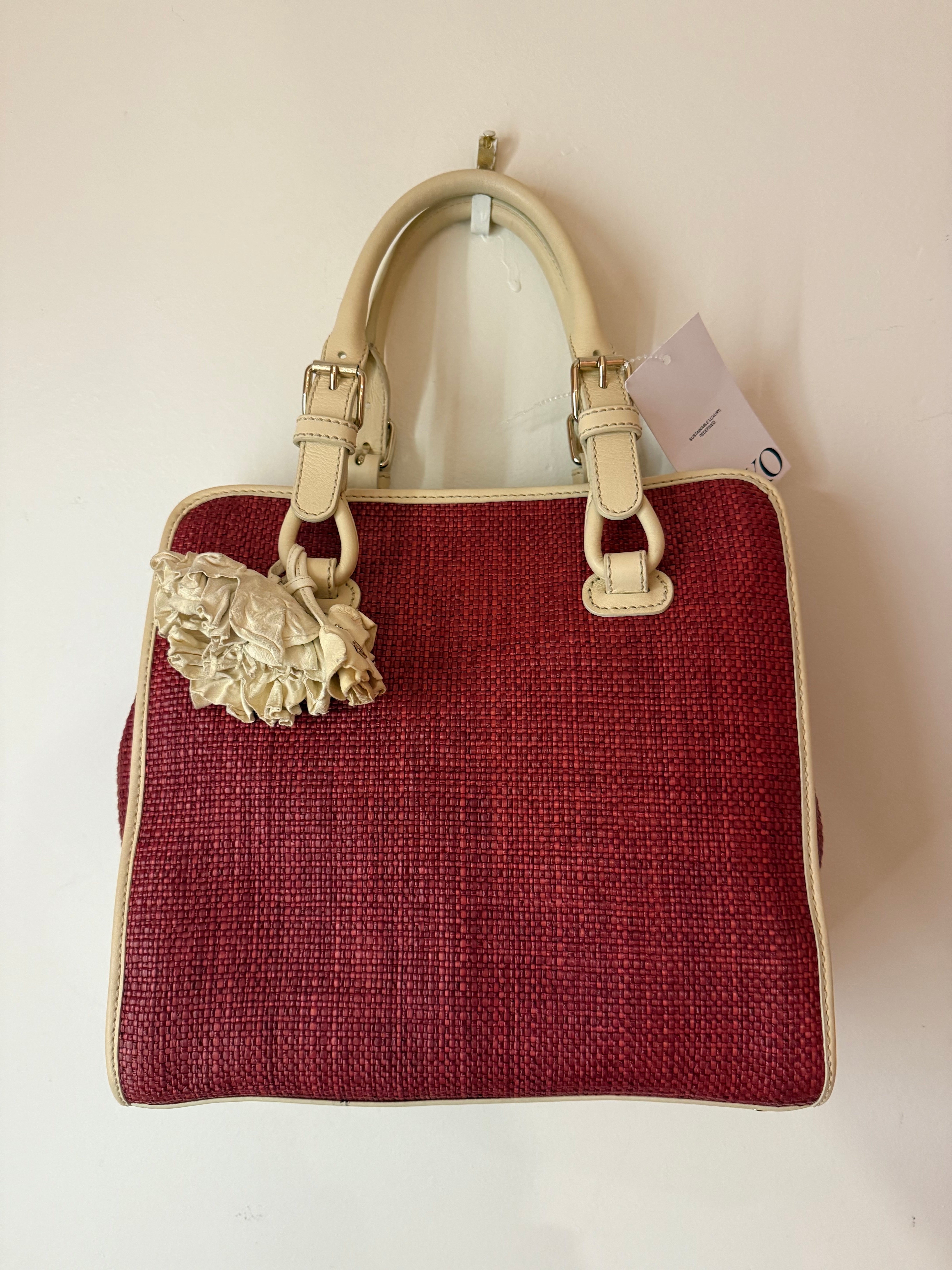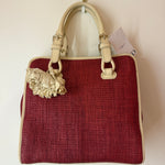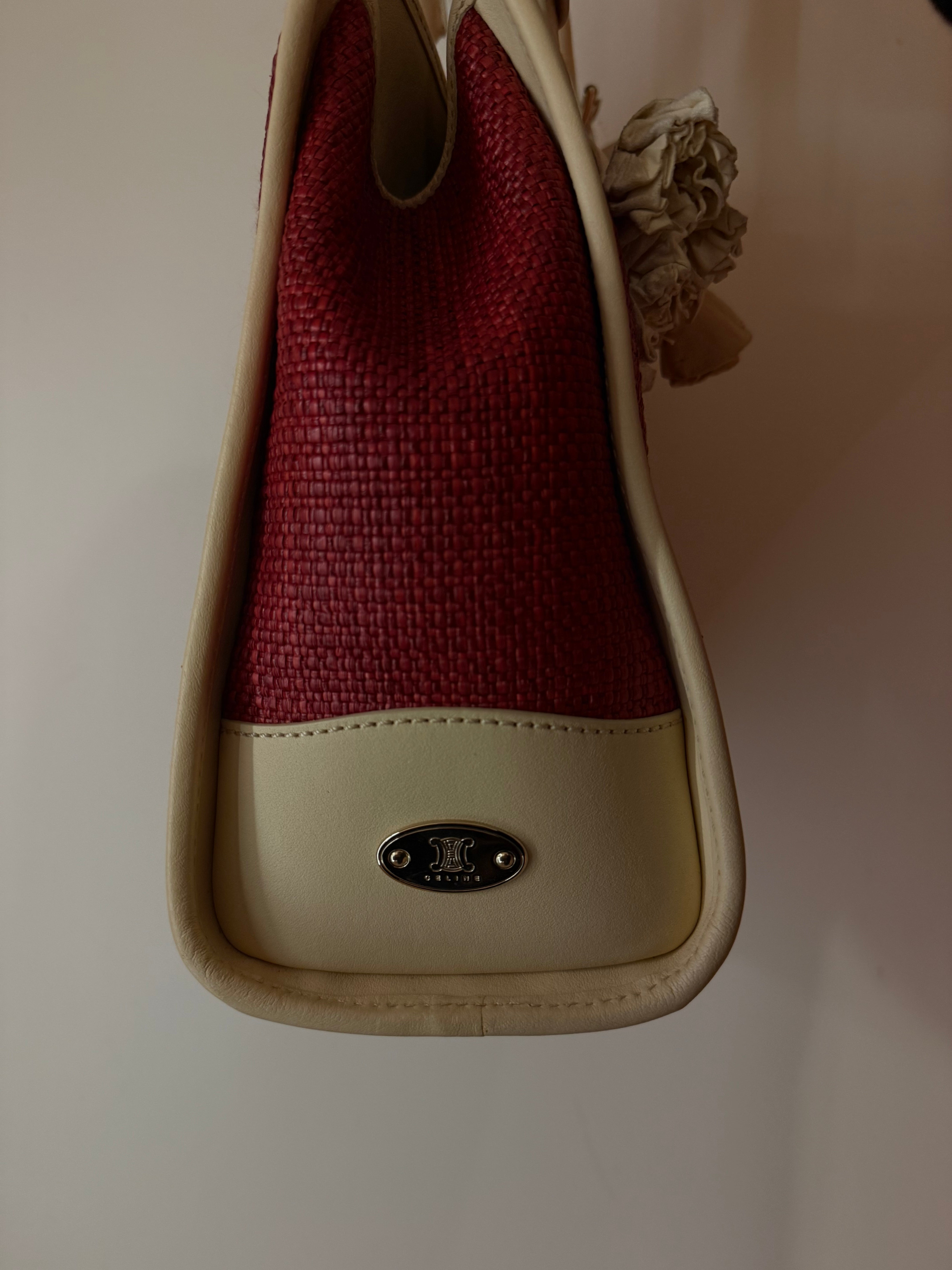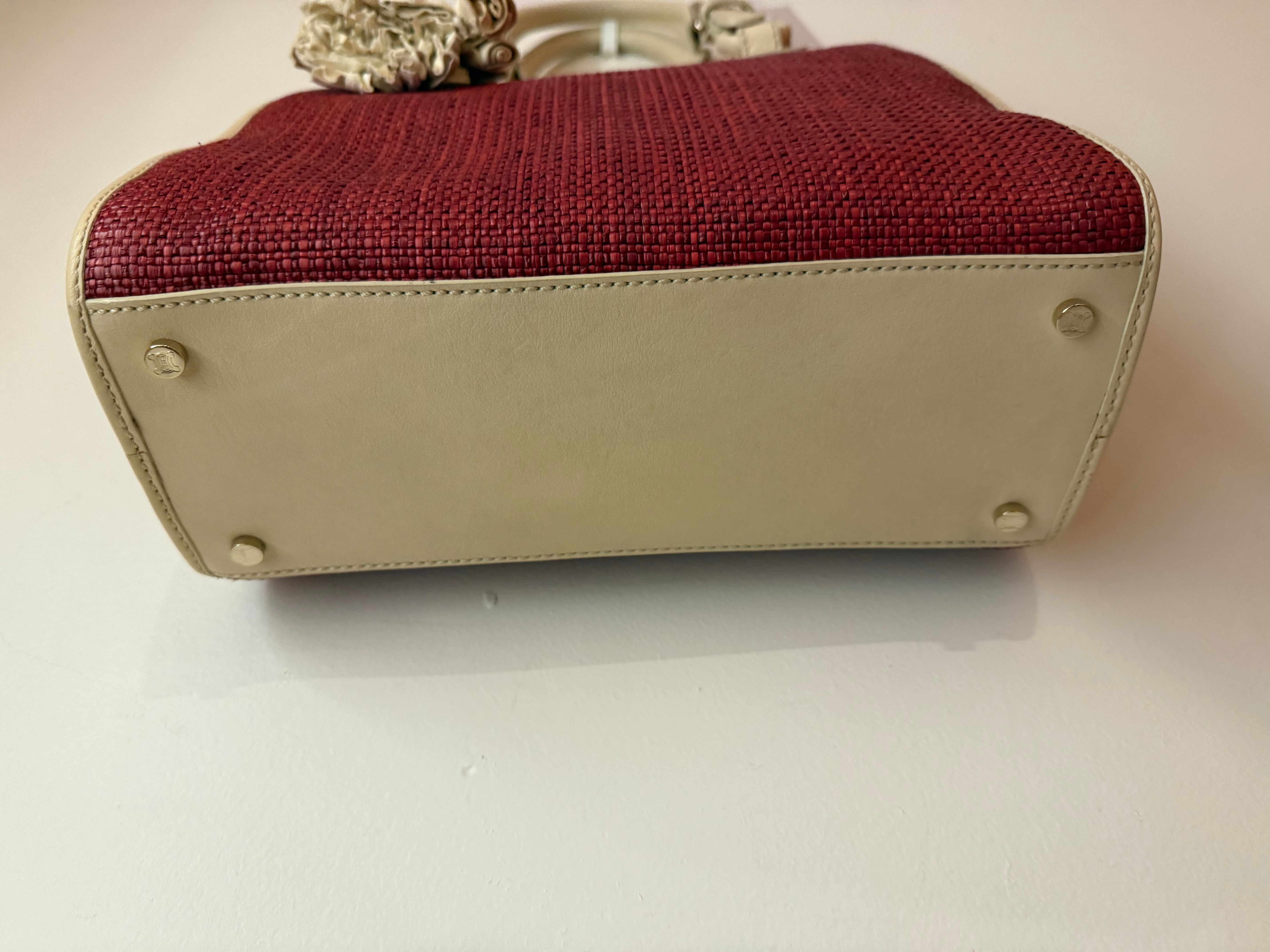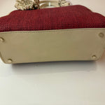 Celine Red/Cream Square Wicker Handbag W/ Rose Keychain