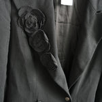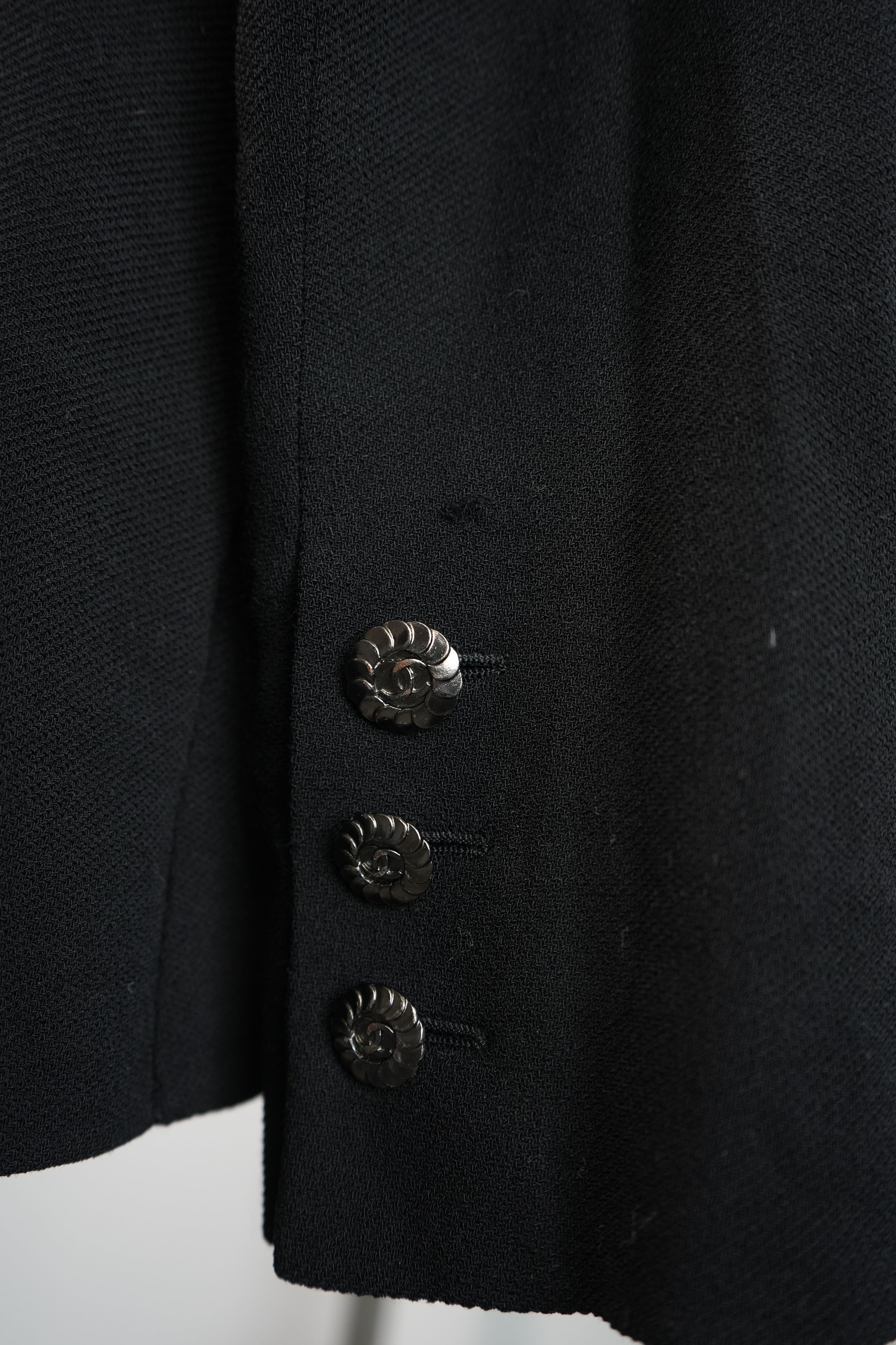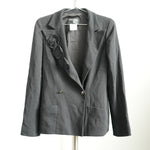 Vintage Chanel Black Wool Blend Camellia Flower Pin Blazer Jacket Size 36