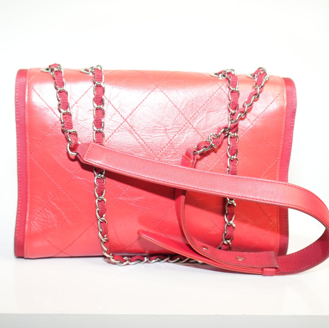 Chanel CC Quilted Leather Flap Bag with Grosgrain Trim Red
