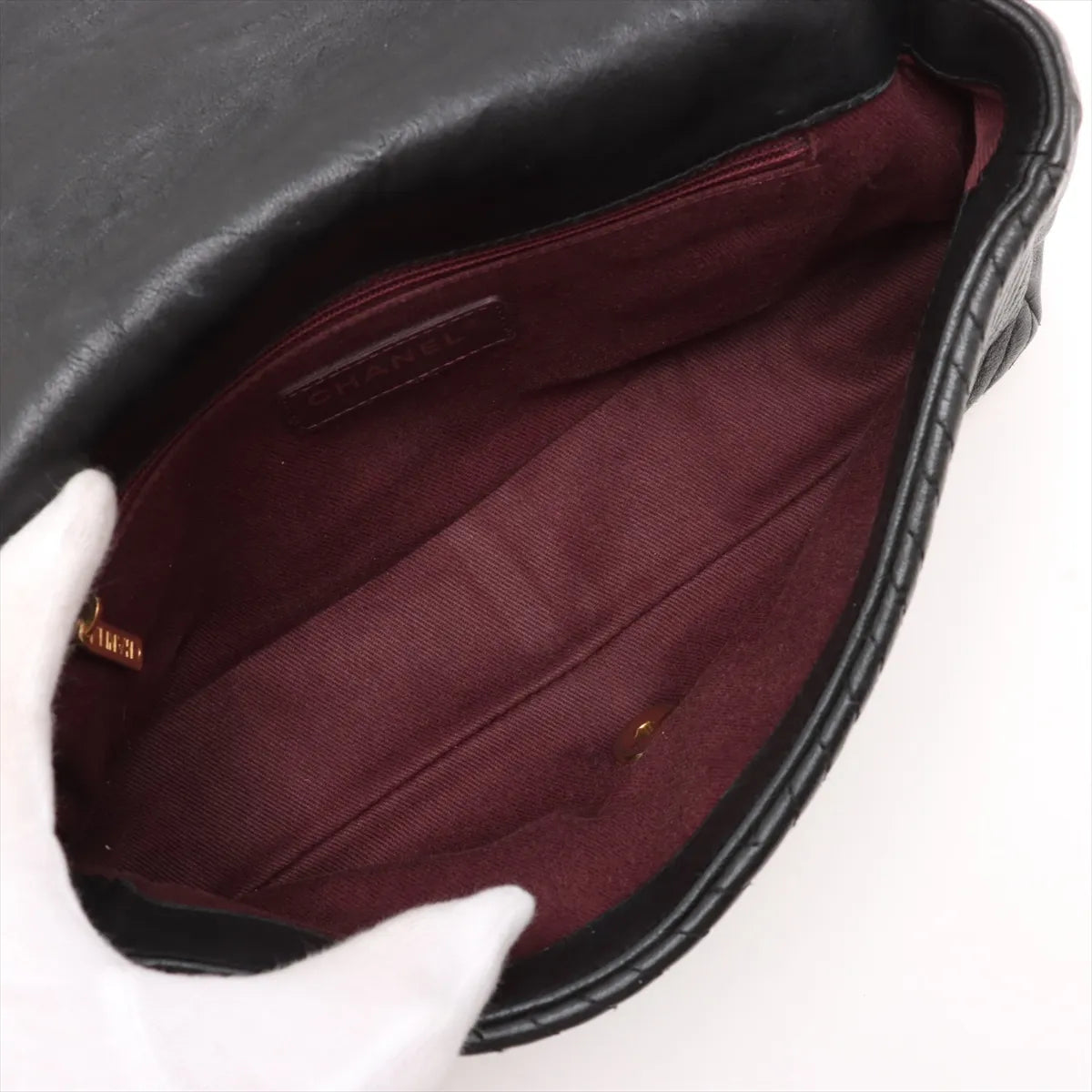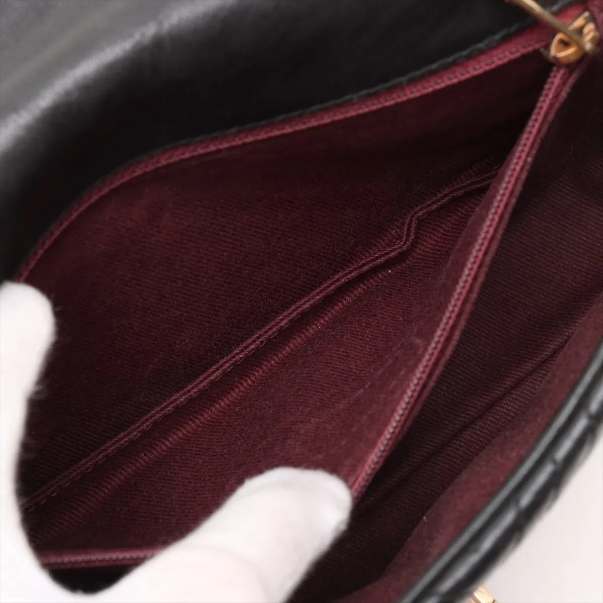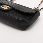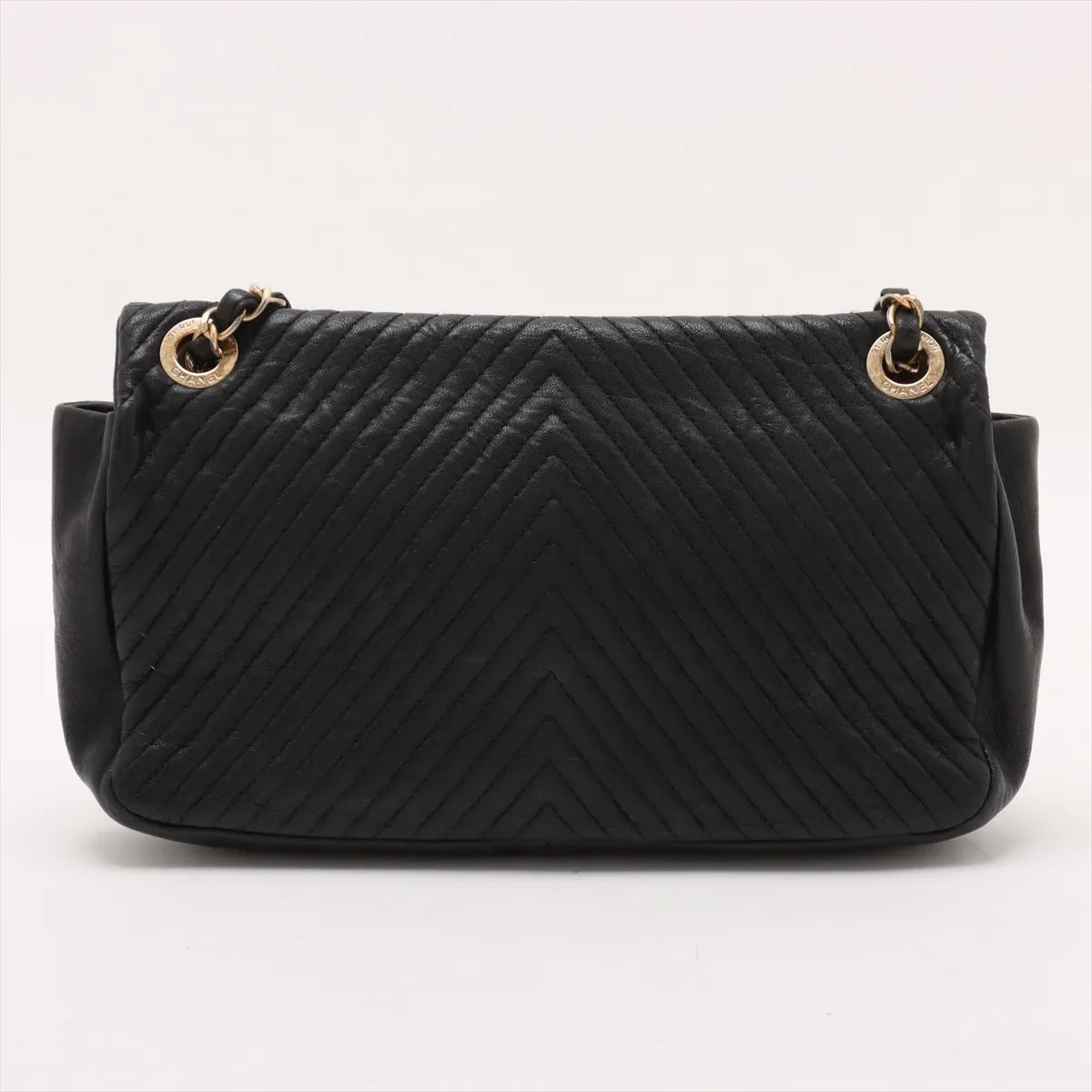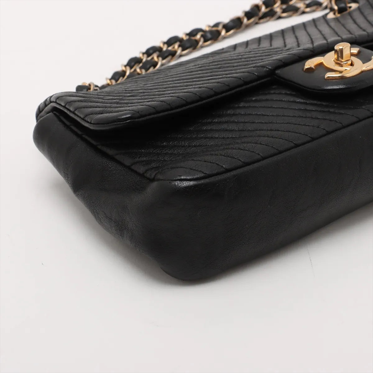 Chanel Chevron Lambskin Single Flap Double Chain Bag V Stitch Black Gold Metal Fittings
