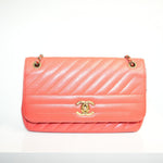 Chanel Chevron Quilted Leather Flap Shoulder Bag Salmon Pink