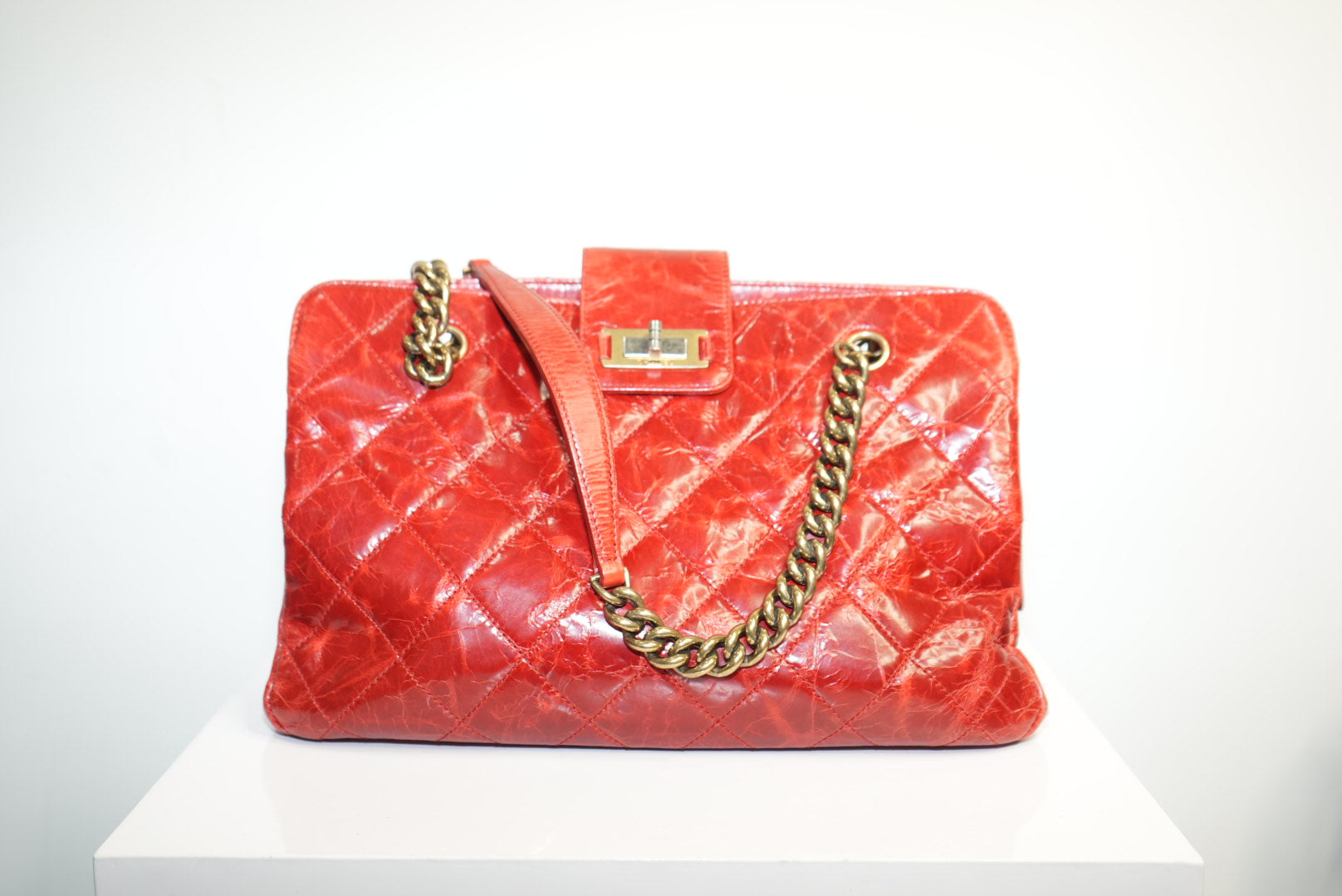 Chanel Crackled Calfskin Reissue Tote Bag Red Gold Hardware