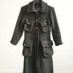 Chanel Long Tweed Button Front Coat Gray Size 34 Women's