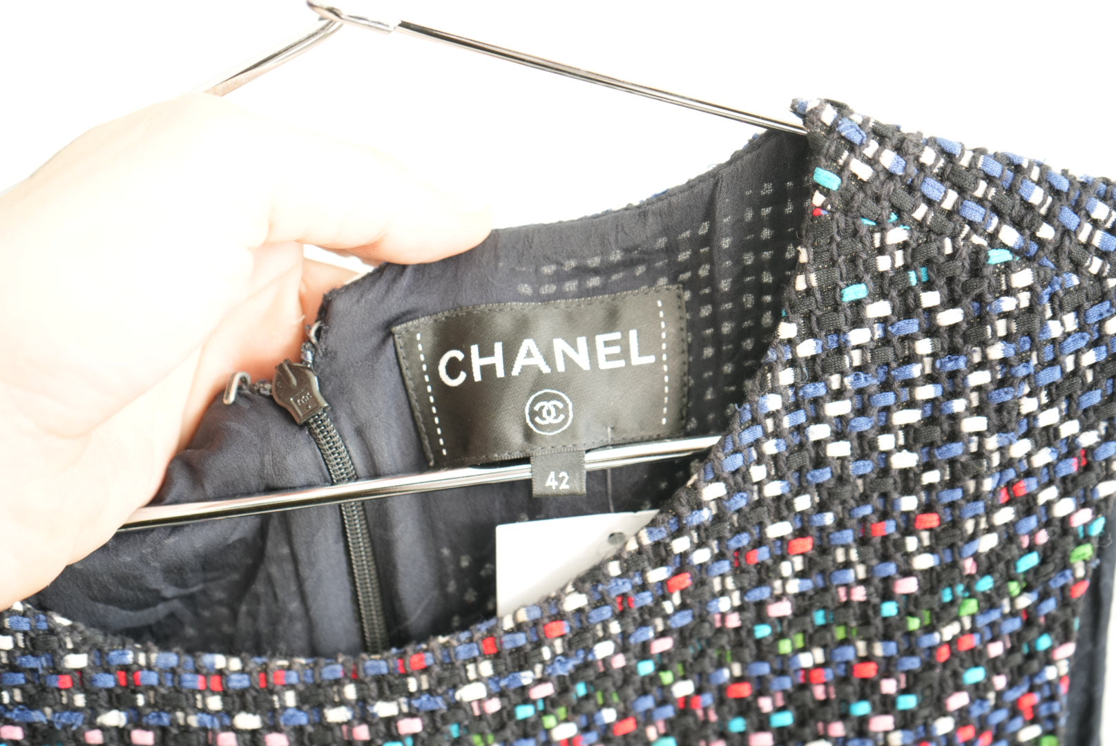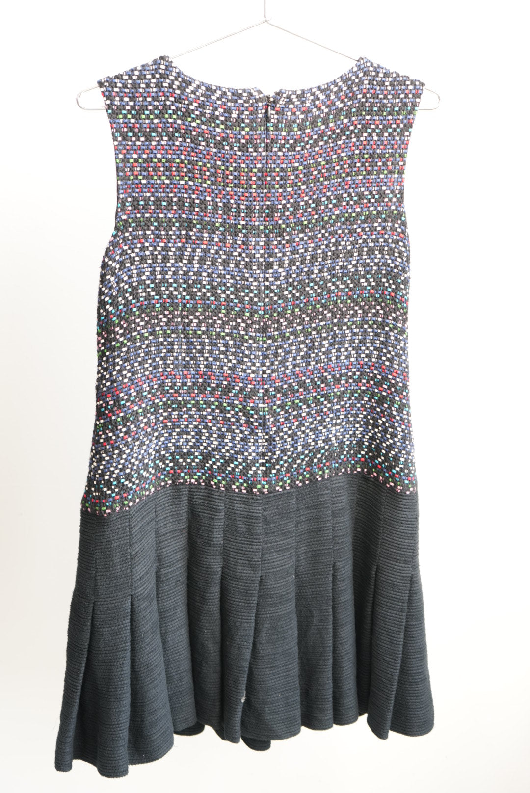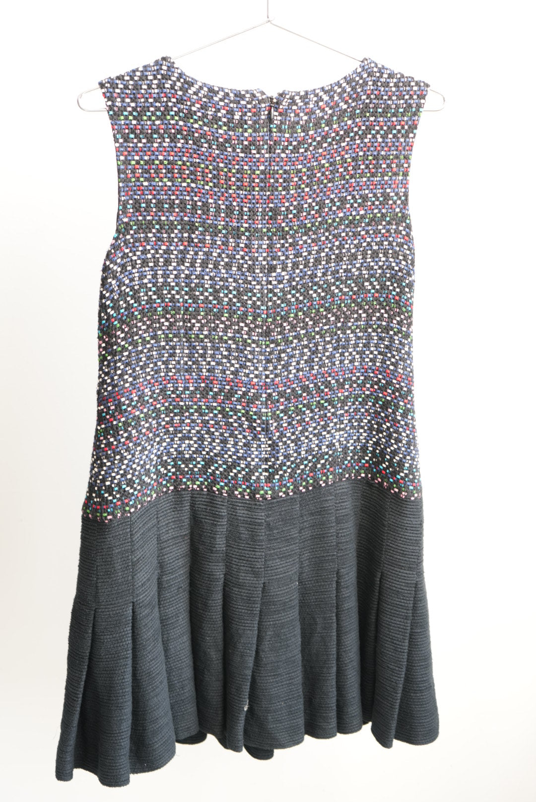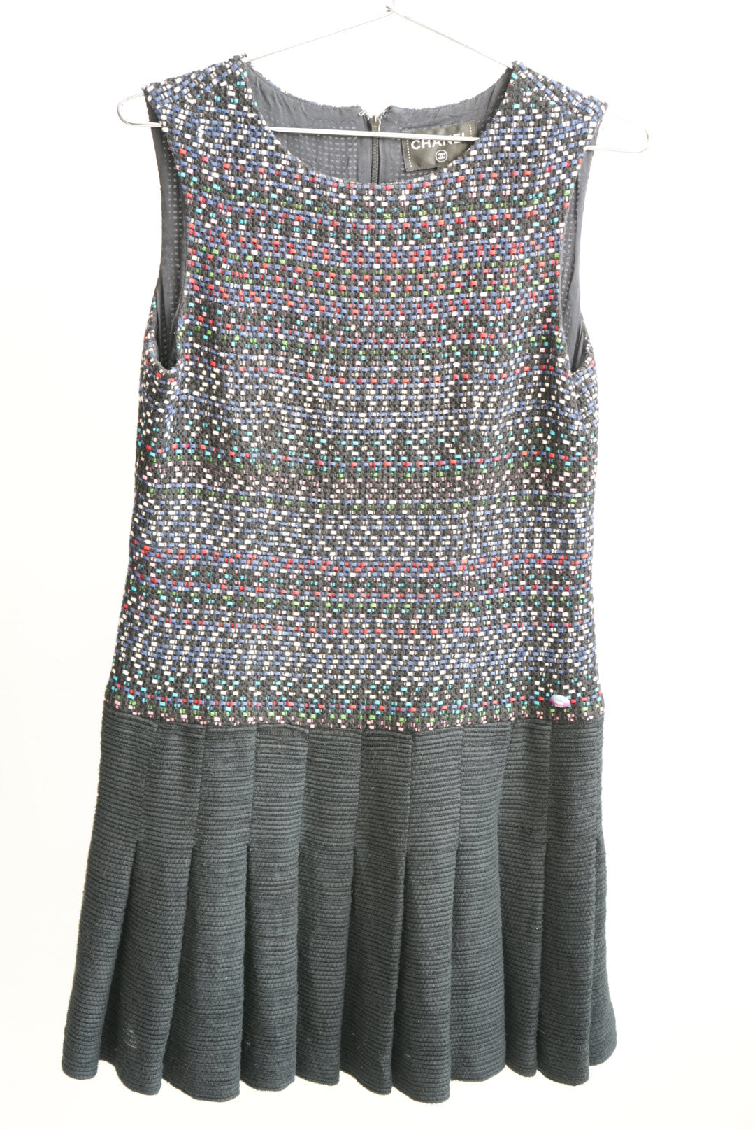 Chanel Multicolor Sleeveless Tweed Dress with Pleated Skirt Black Size 42