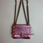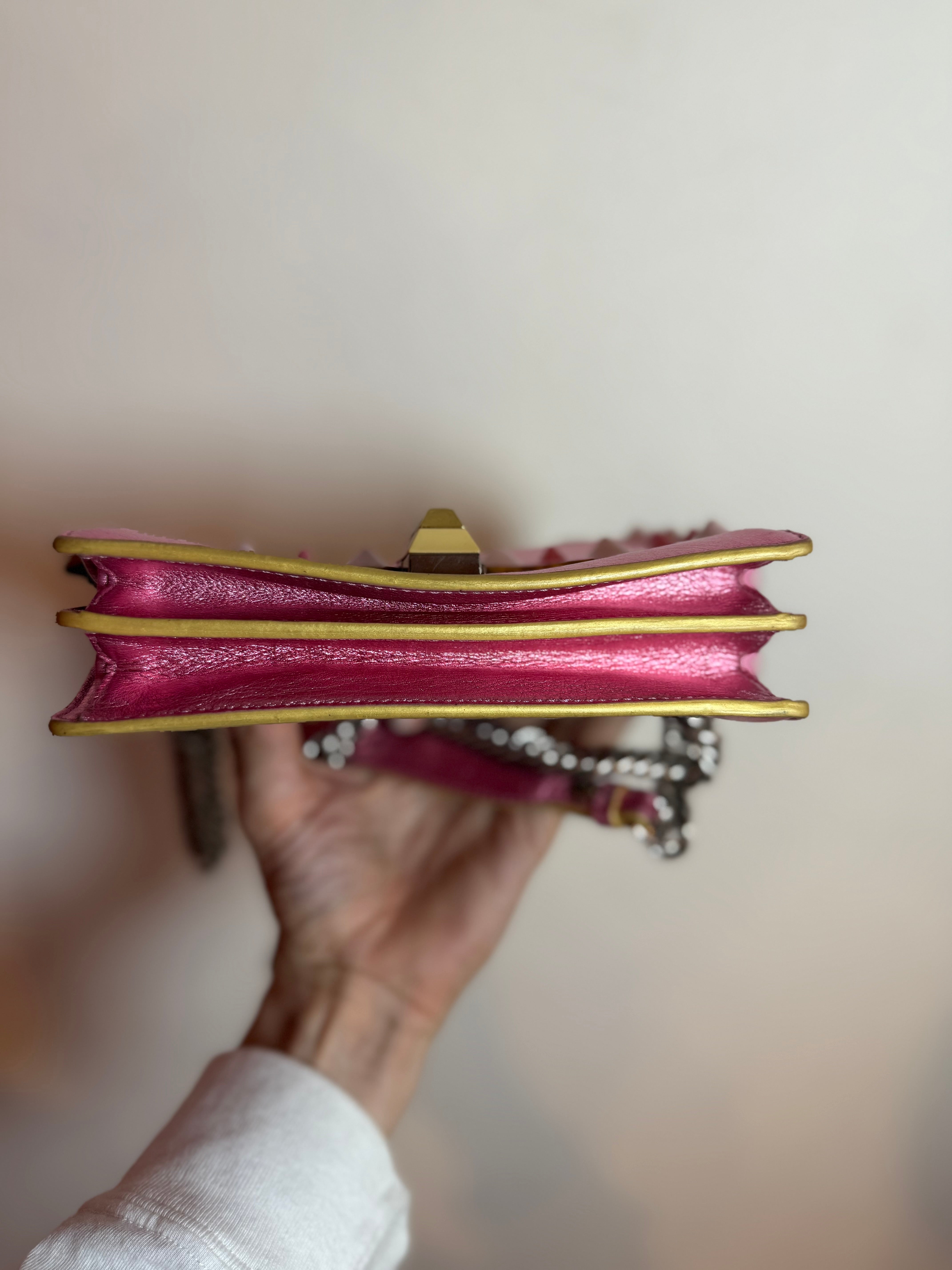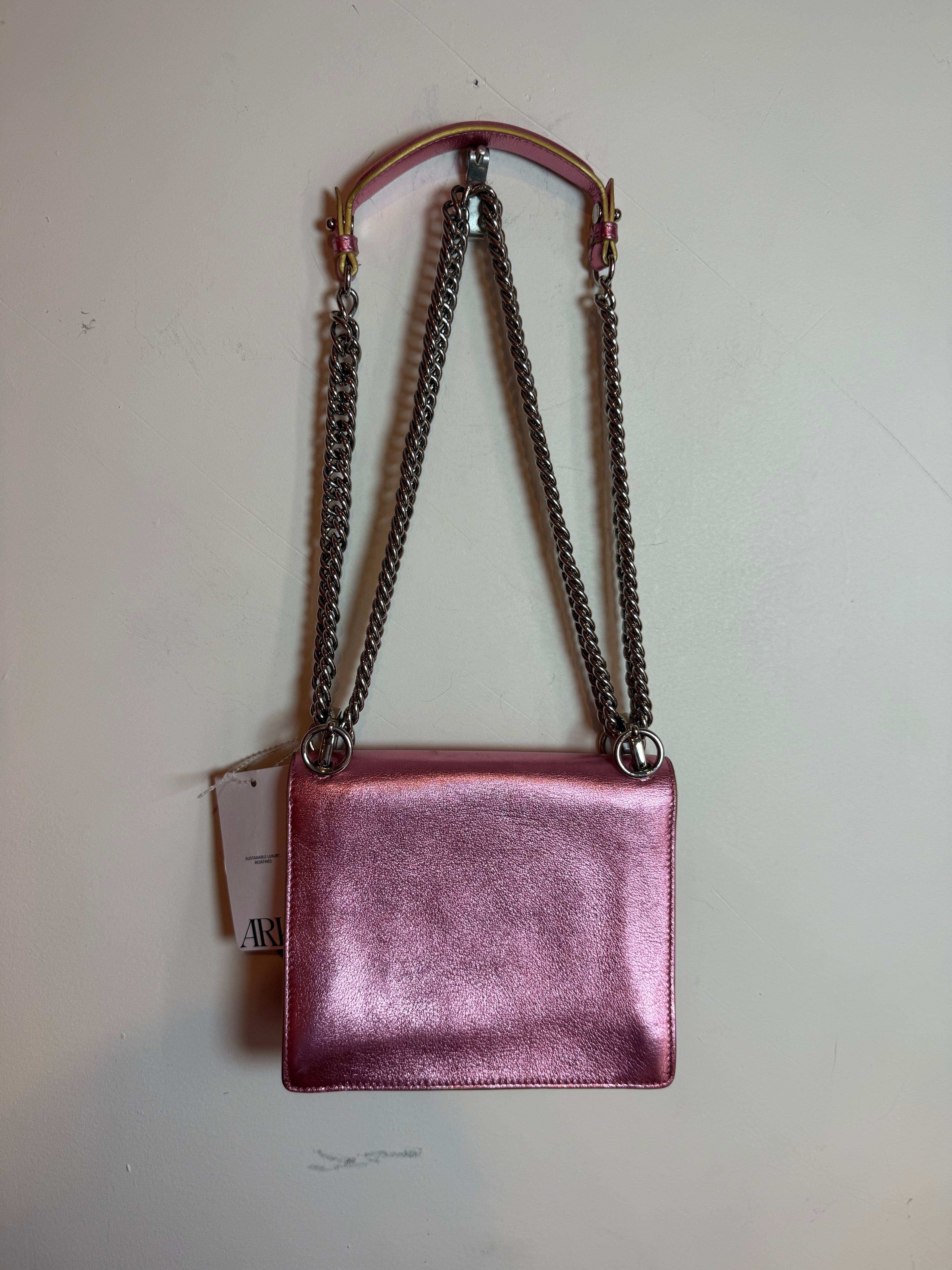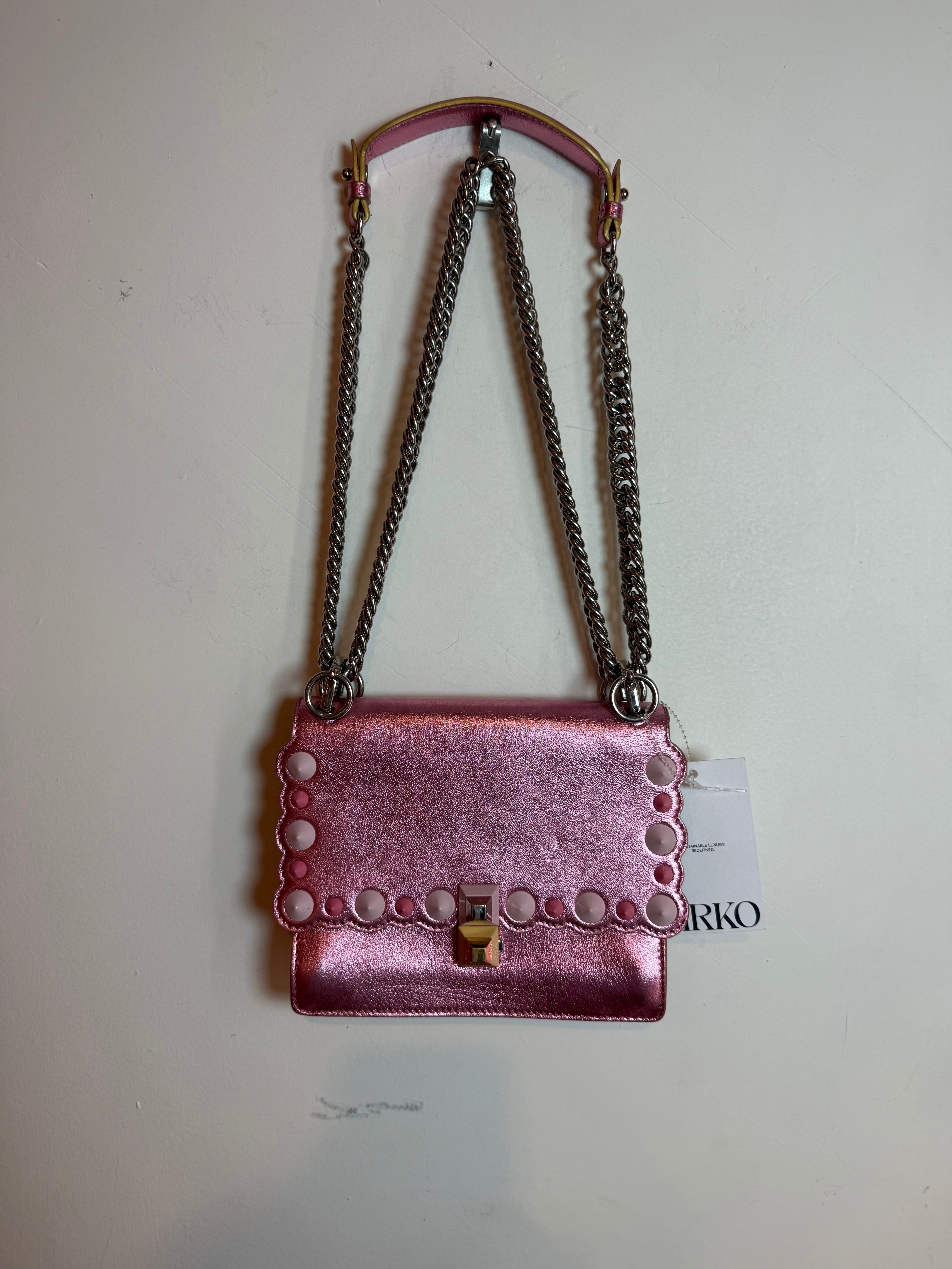 Fendi Kan I Scalloped Metallic Pink Leather Pearl Stud Shoulder Bag
