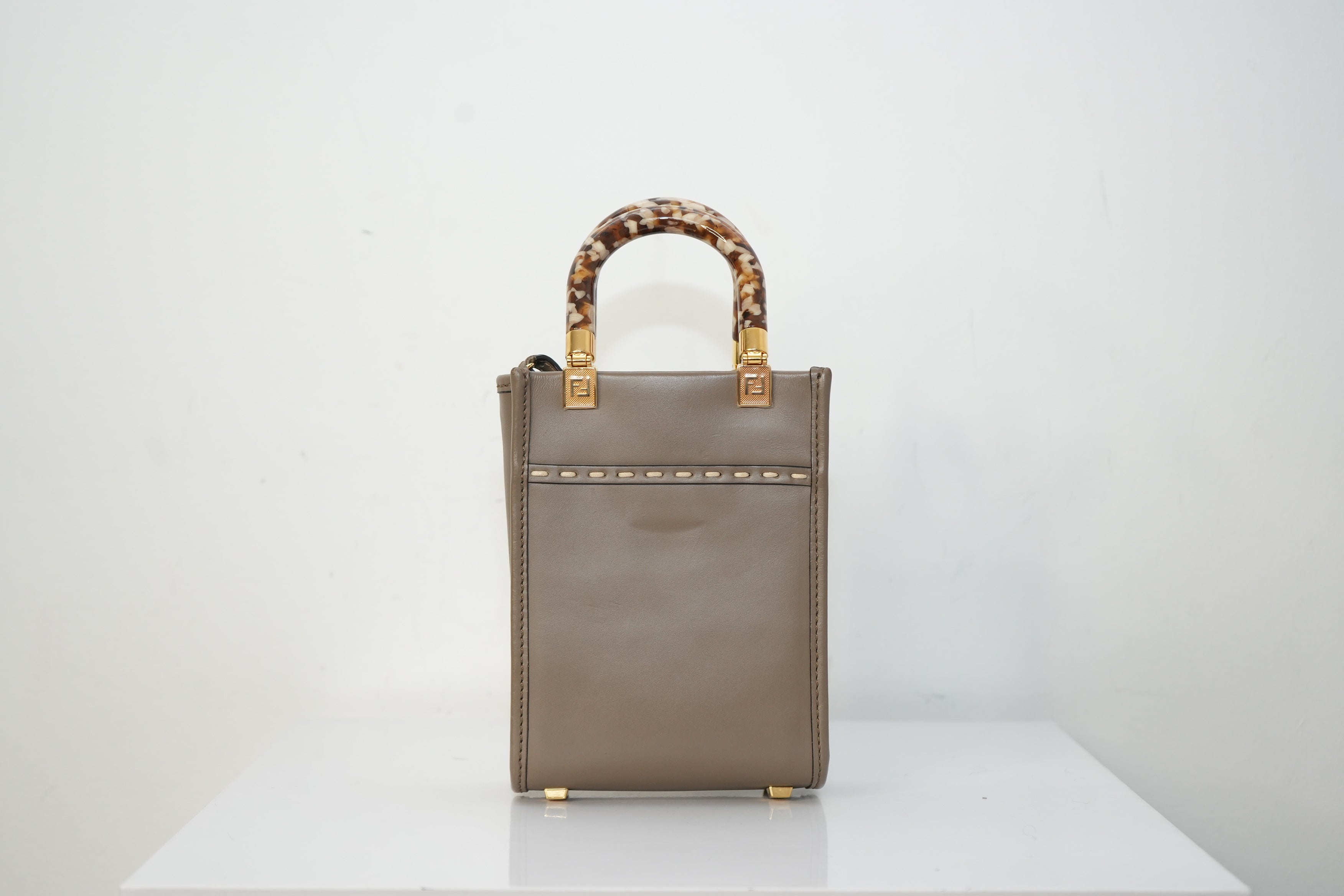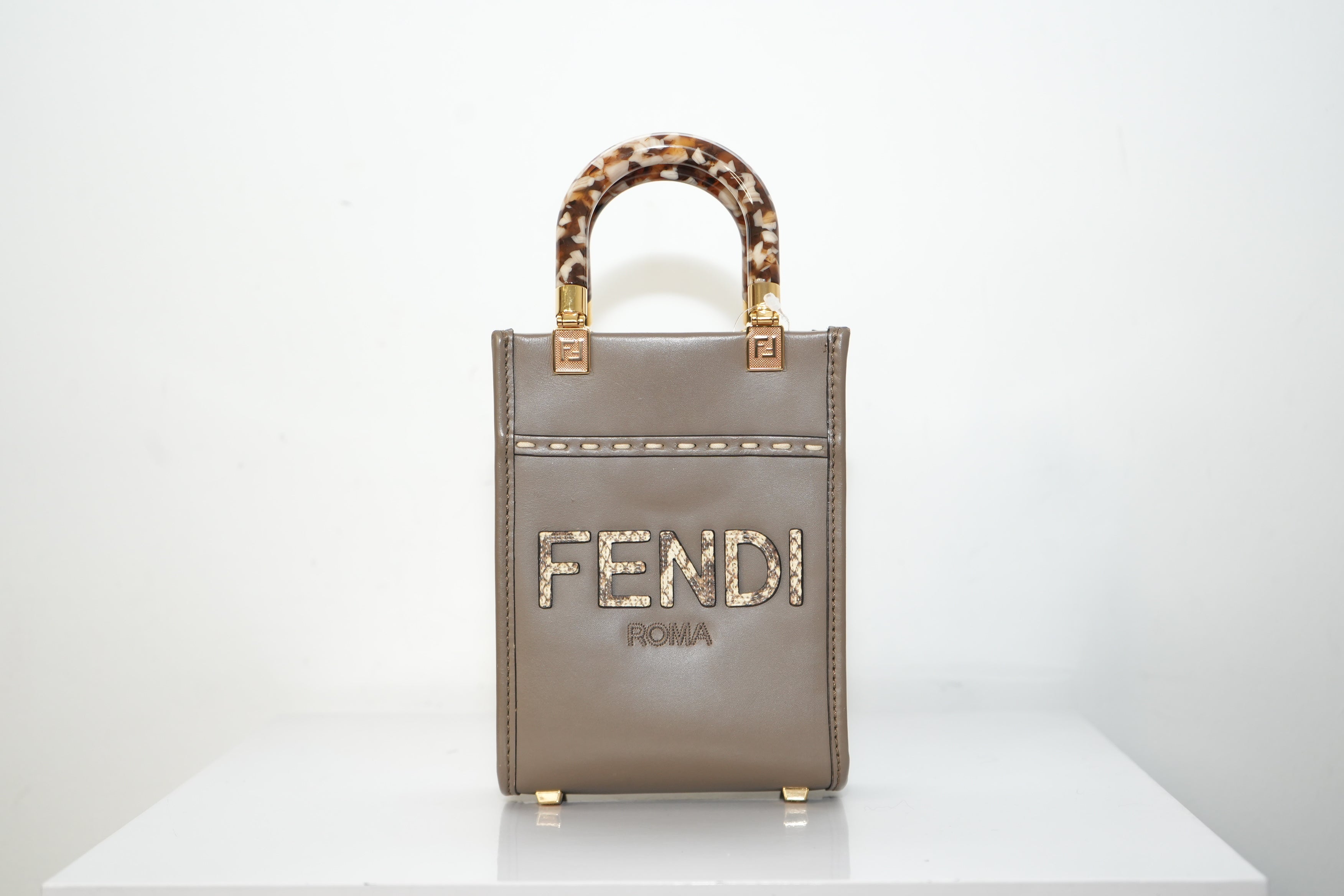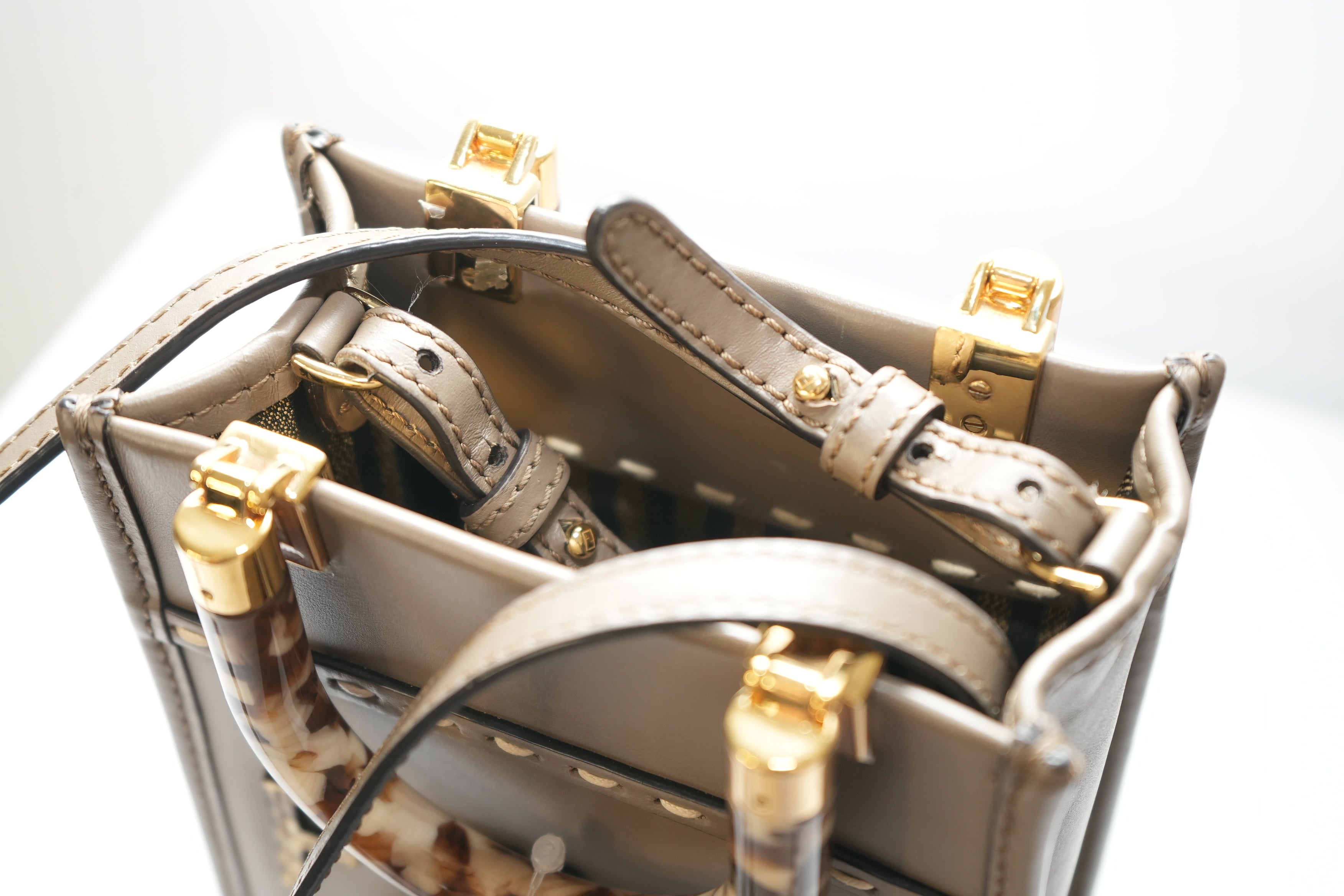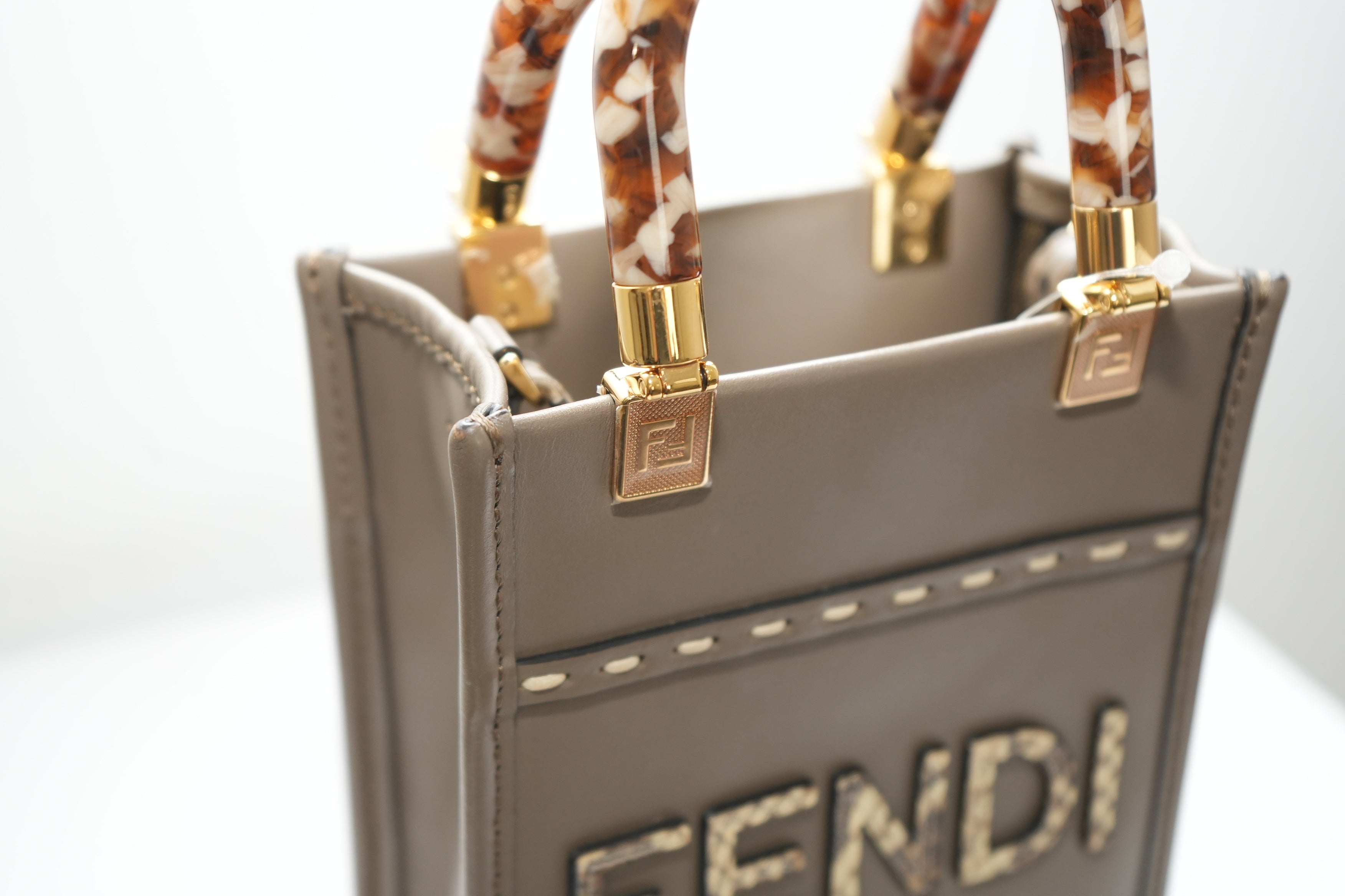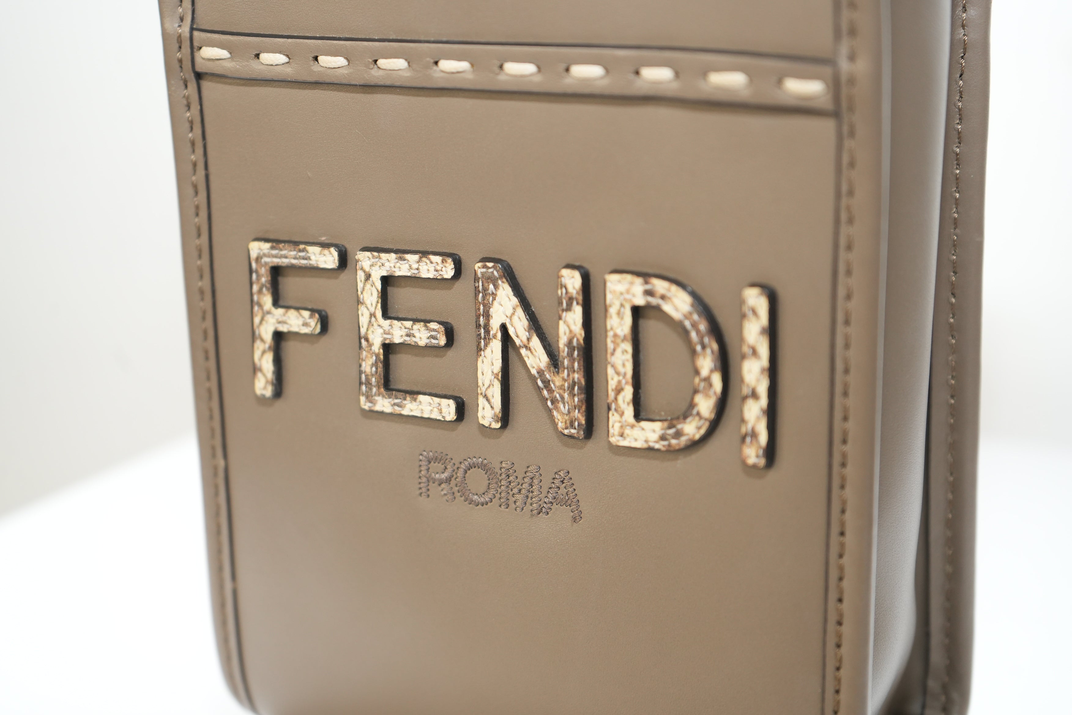 Fendi Sunshine Shopper small Leather 2 Way Handbag Brown 8BS051